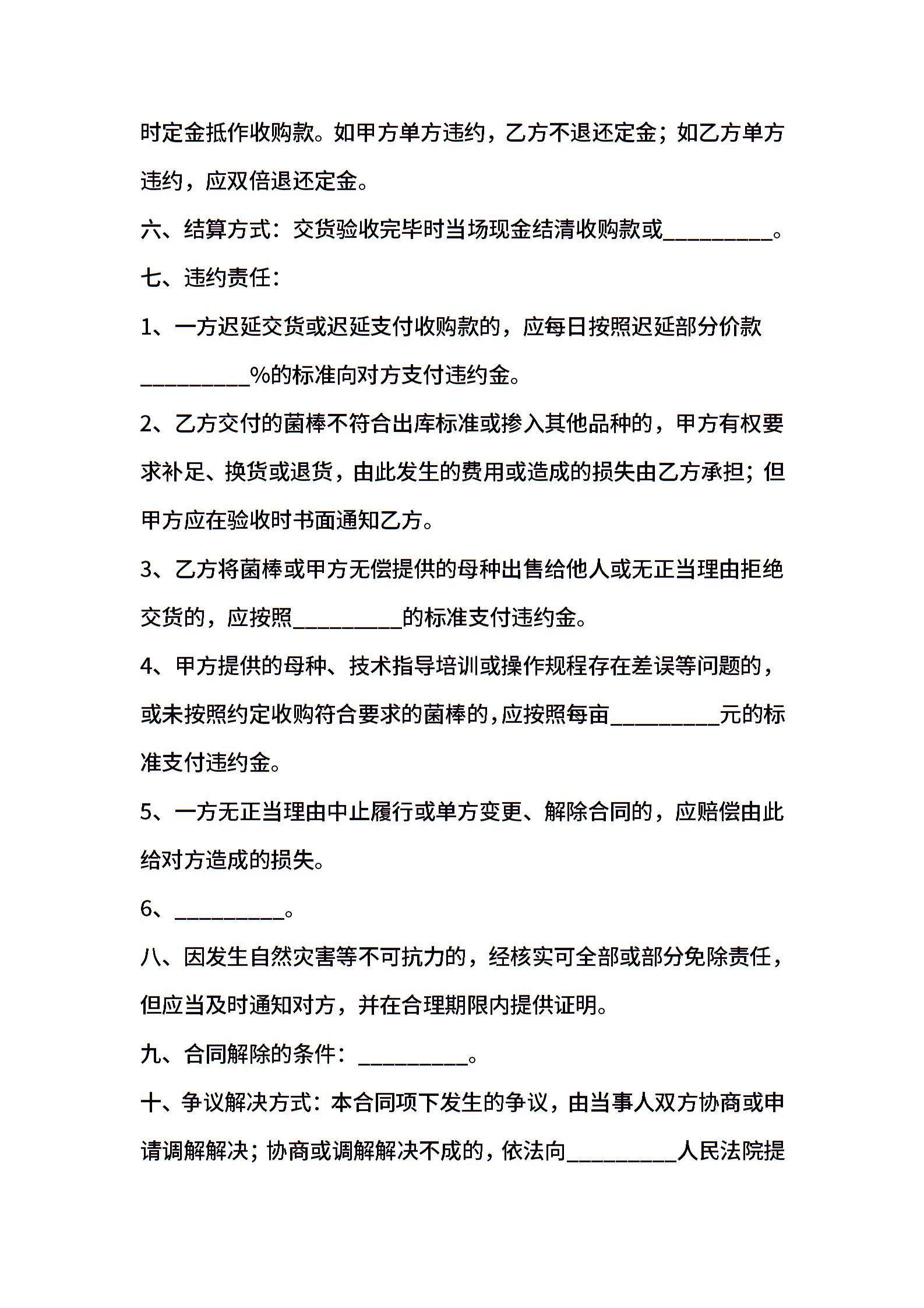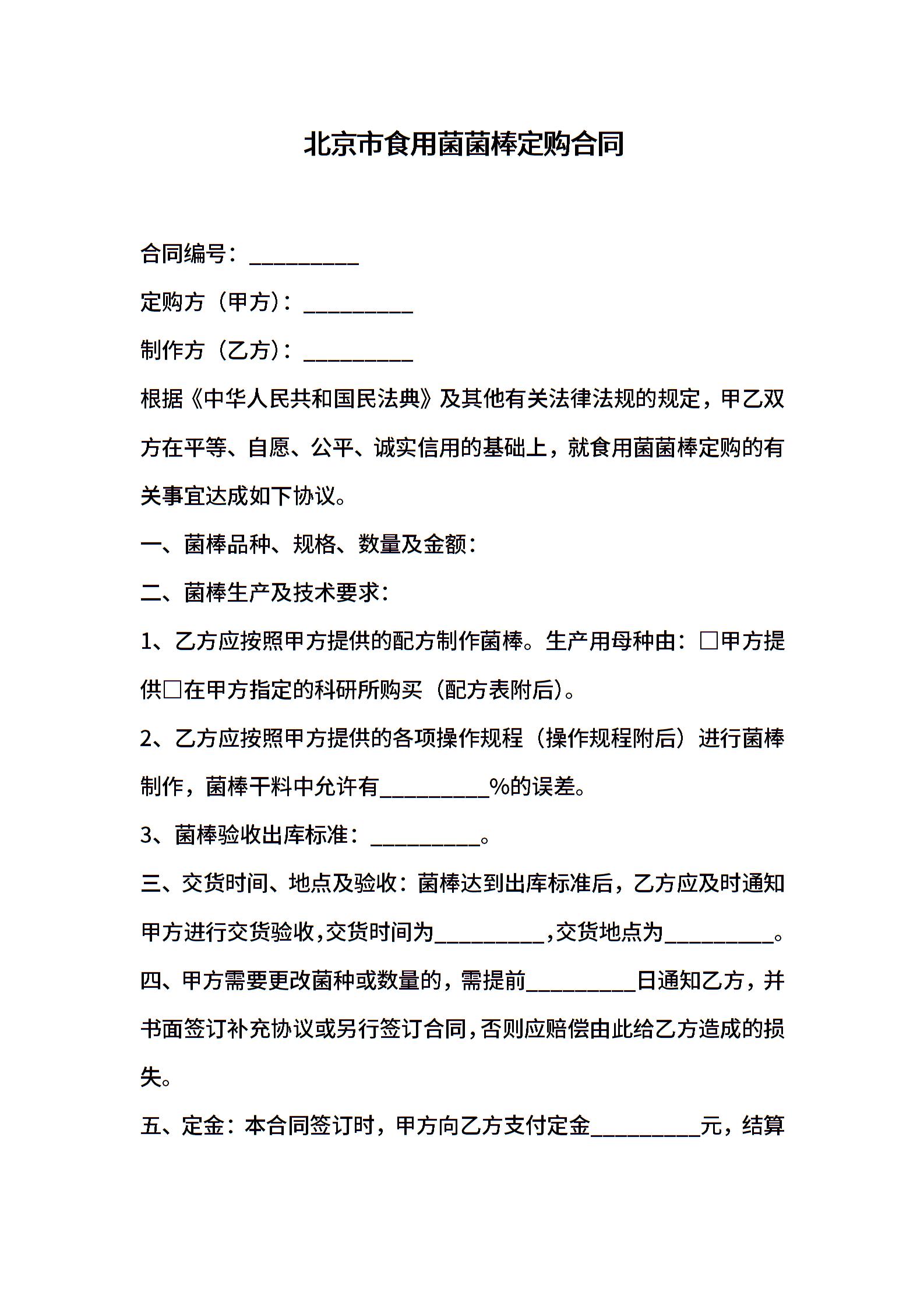 北京市食用菌菌棒定购合同