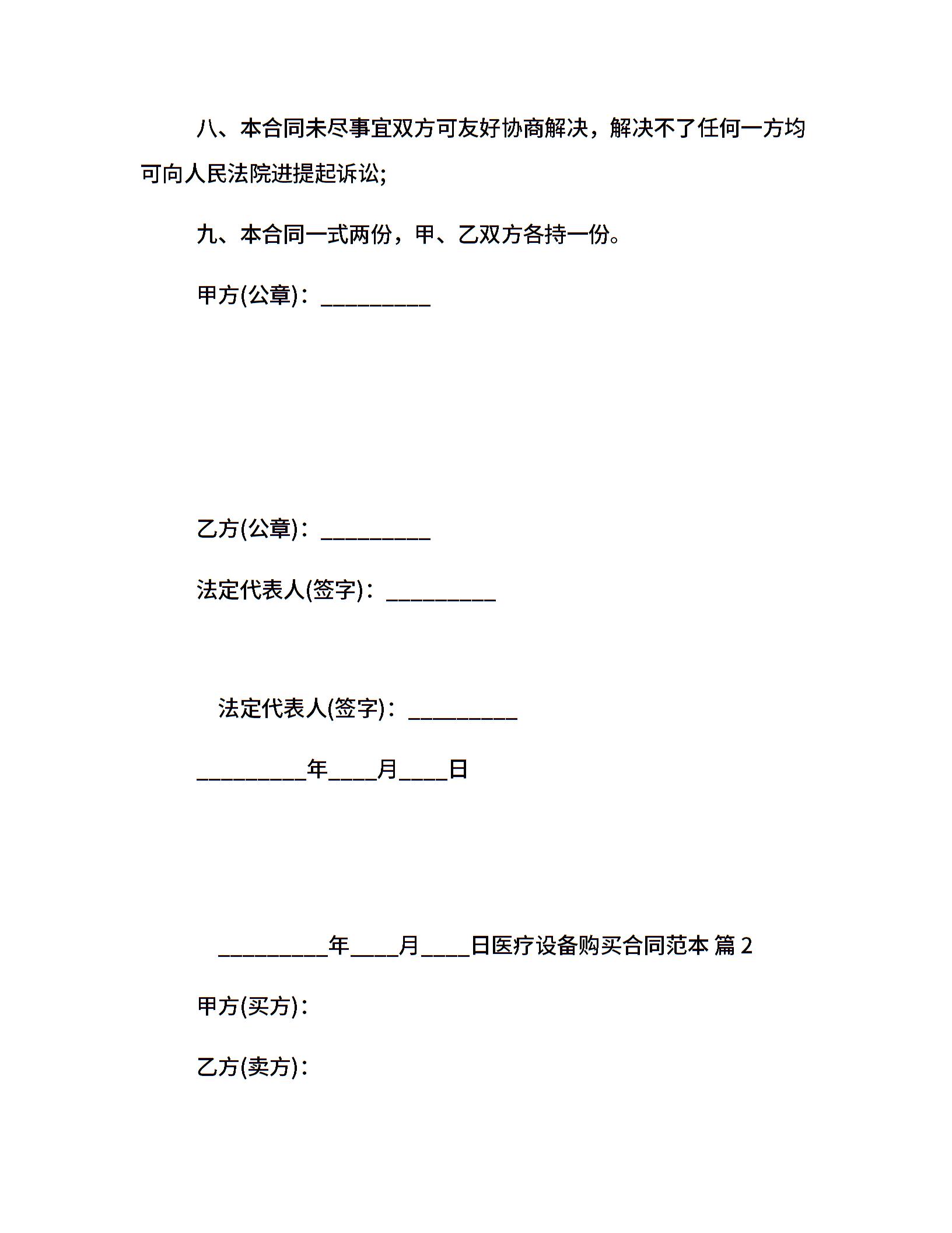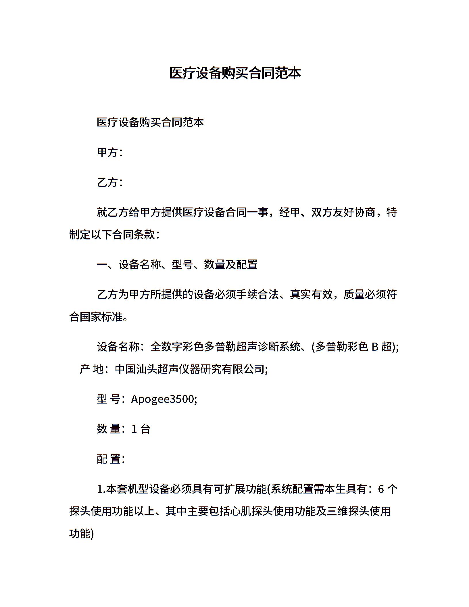 医疗设备购买合同范本