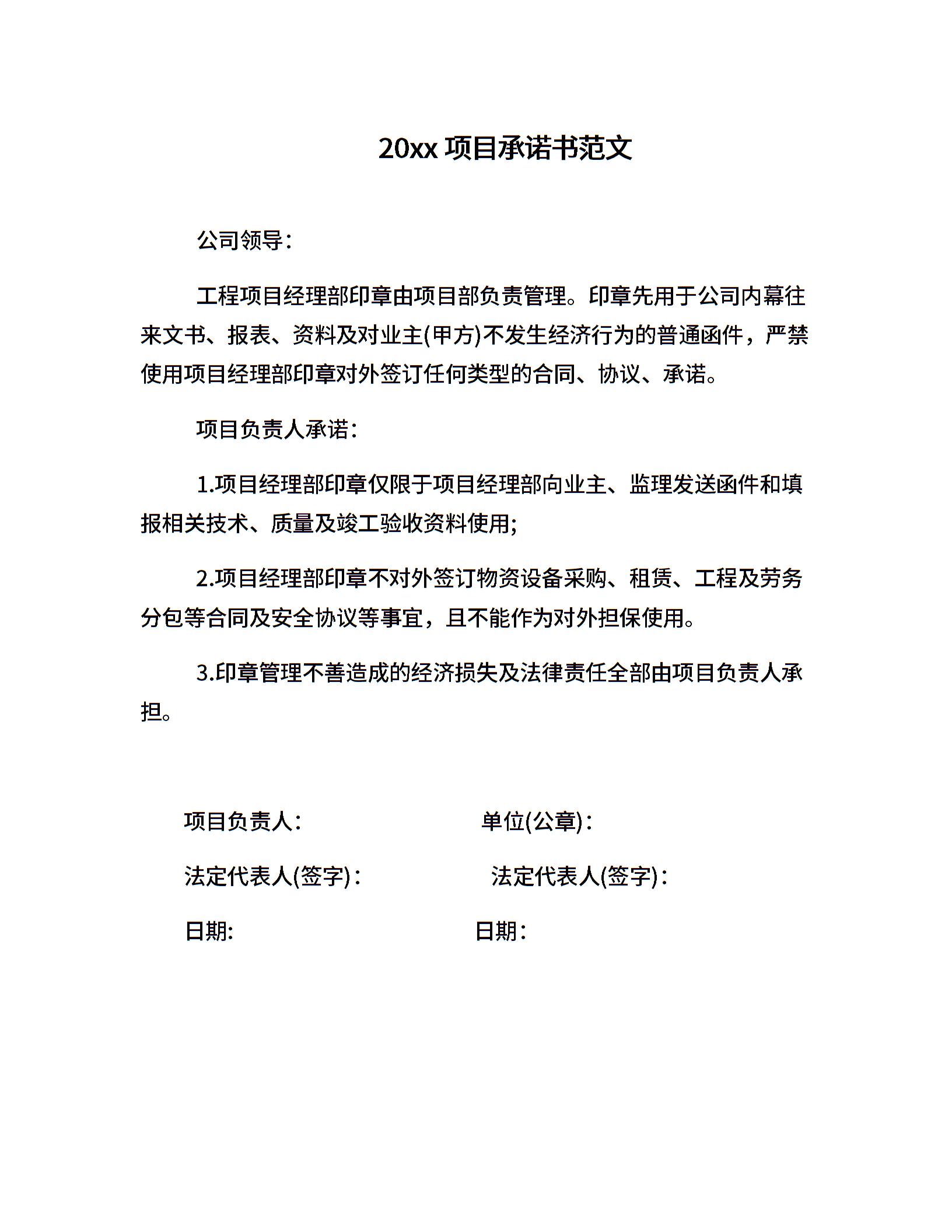 20xx项目承诺书范文