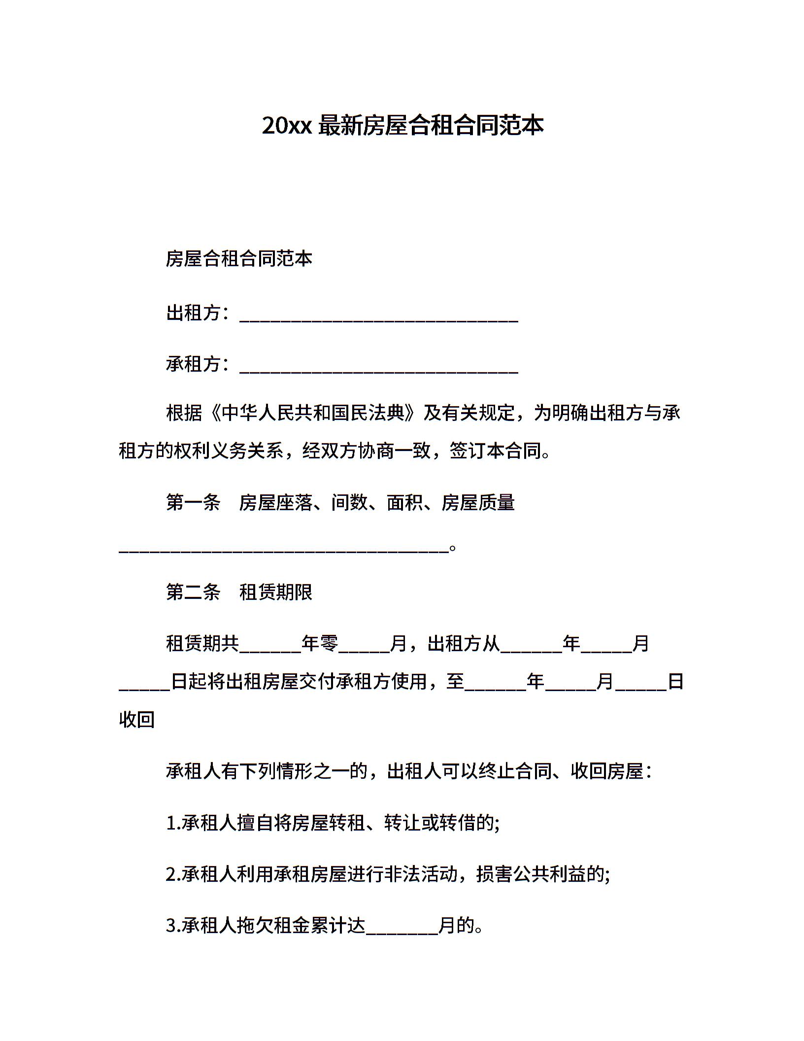 20xx最新房屋合租合同范本