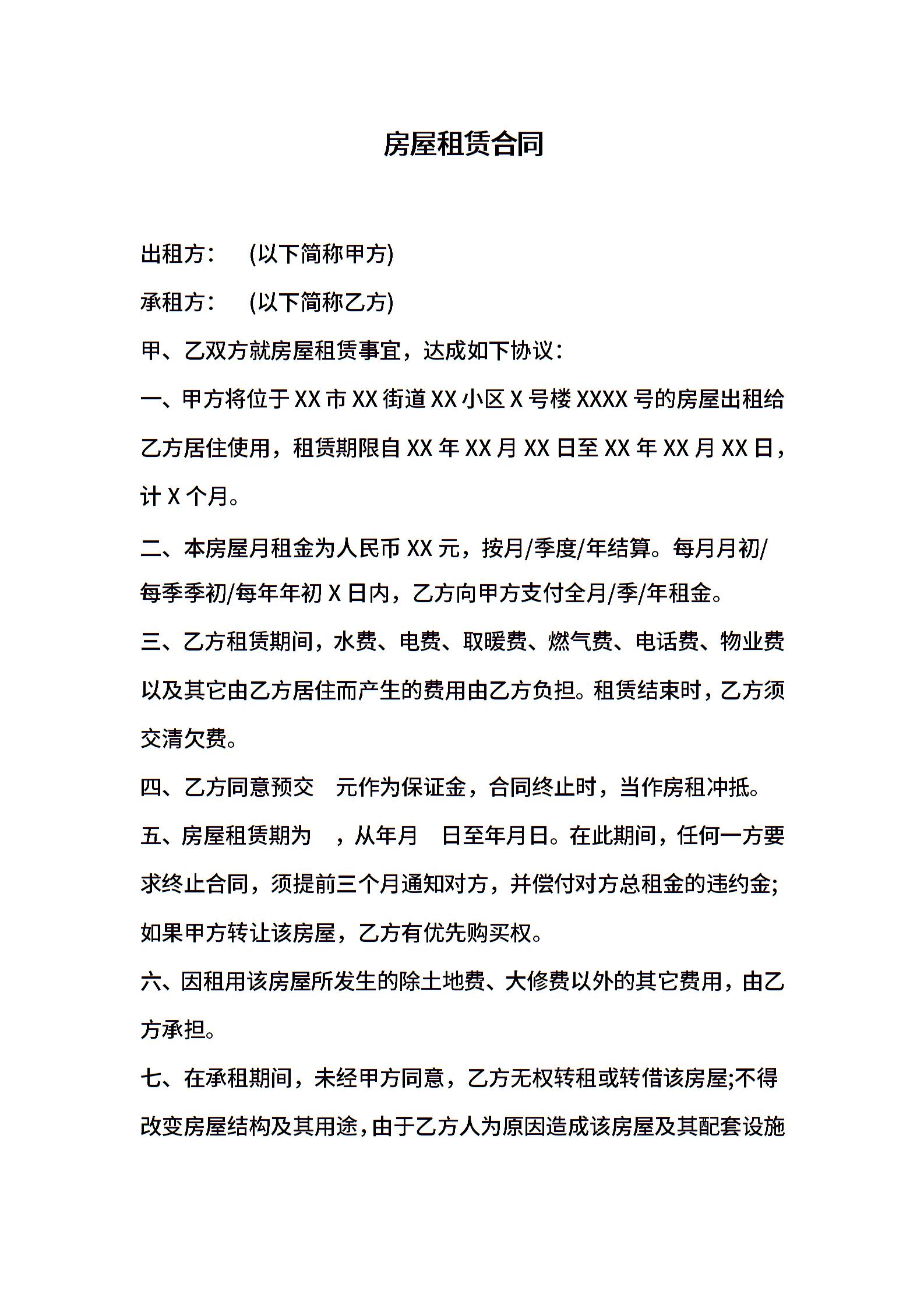 当前位置:量子办公 > 合同模板 > 房屋租赁 >