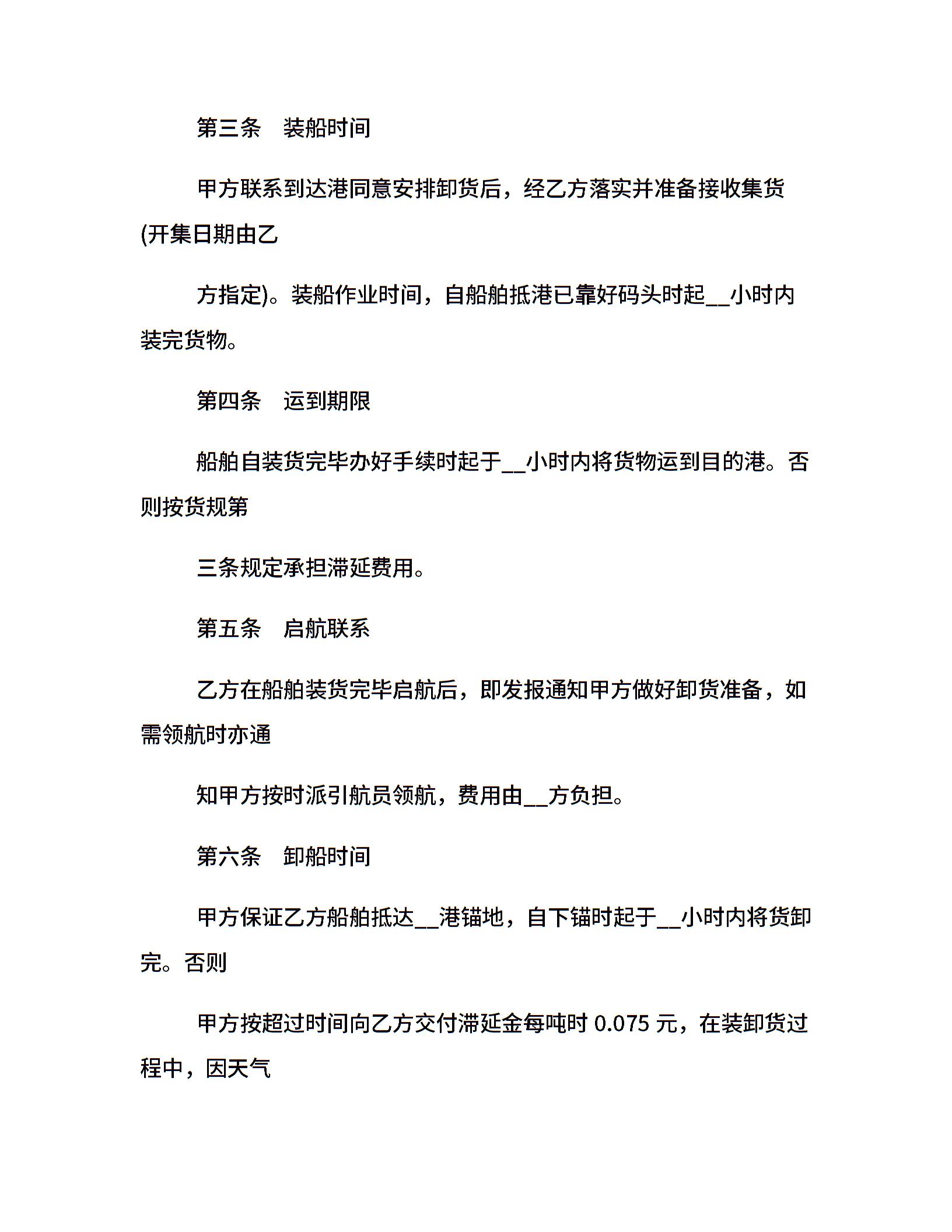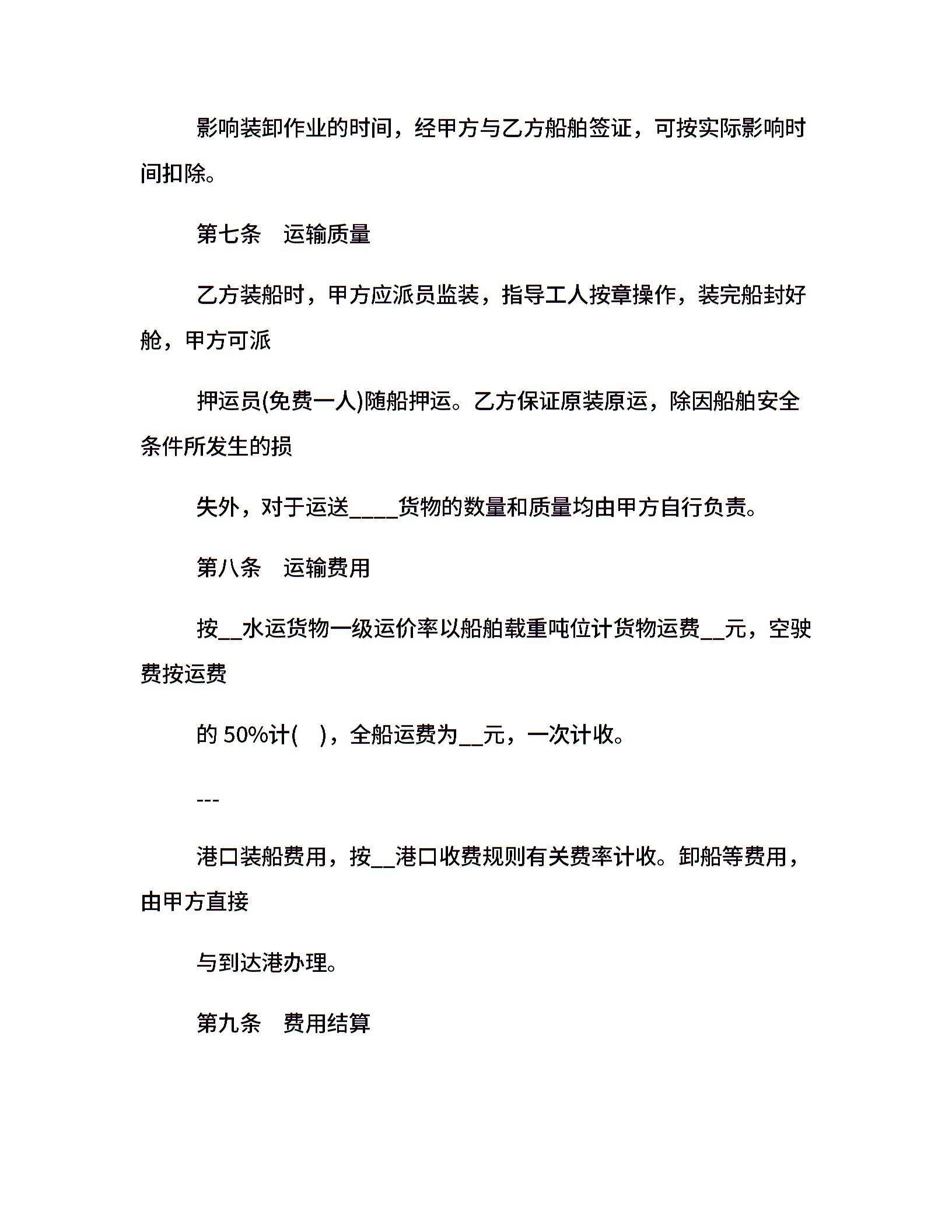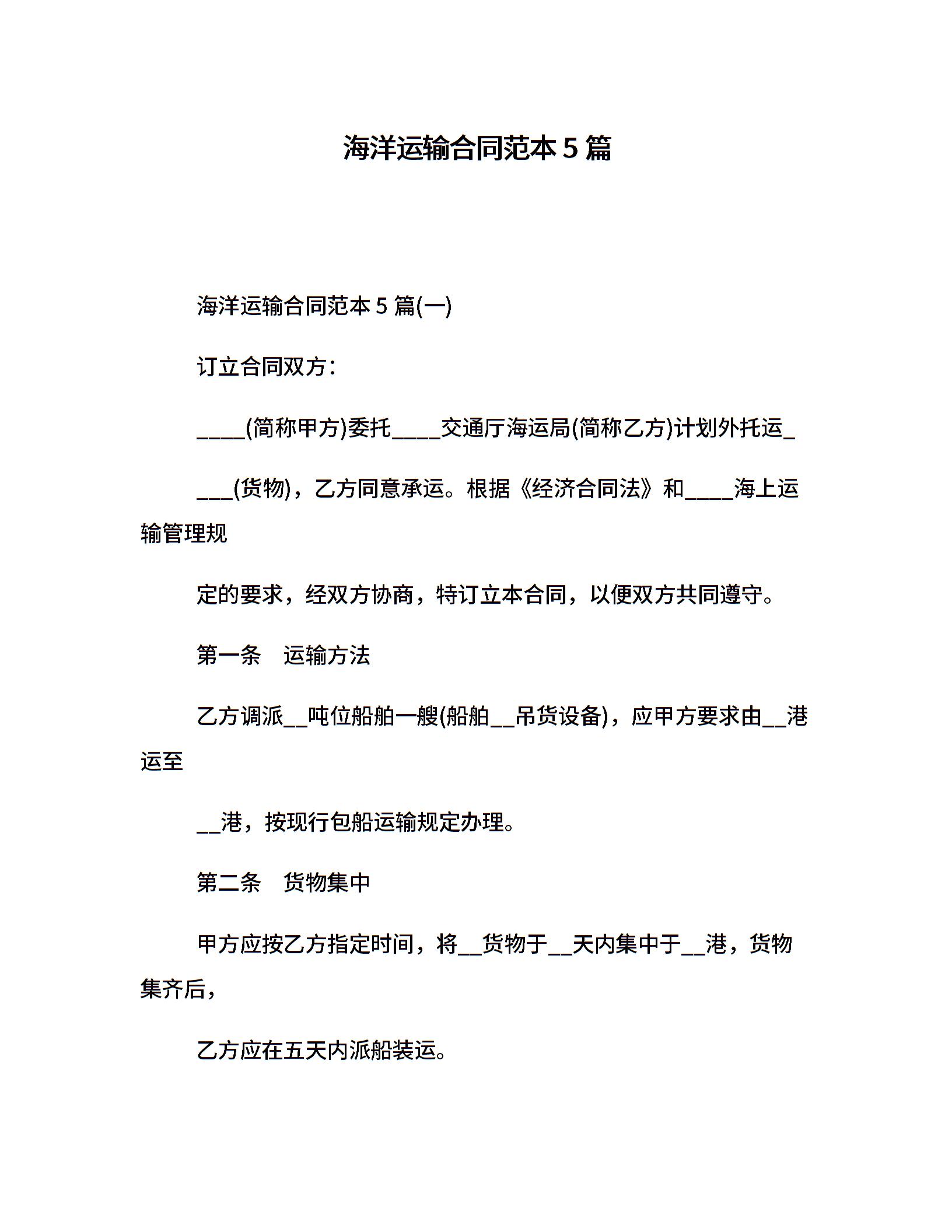 海洋运输合同范本5篇