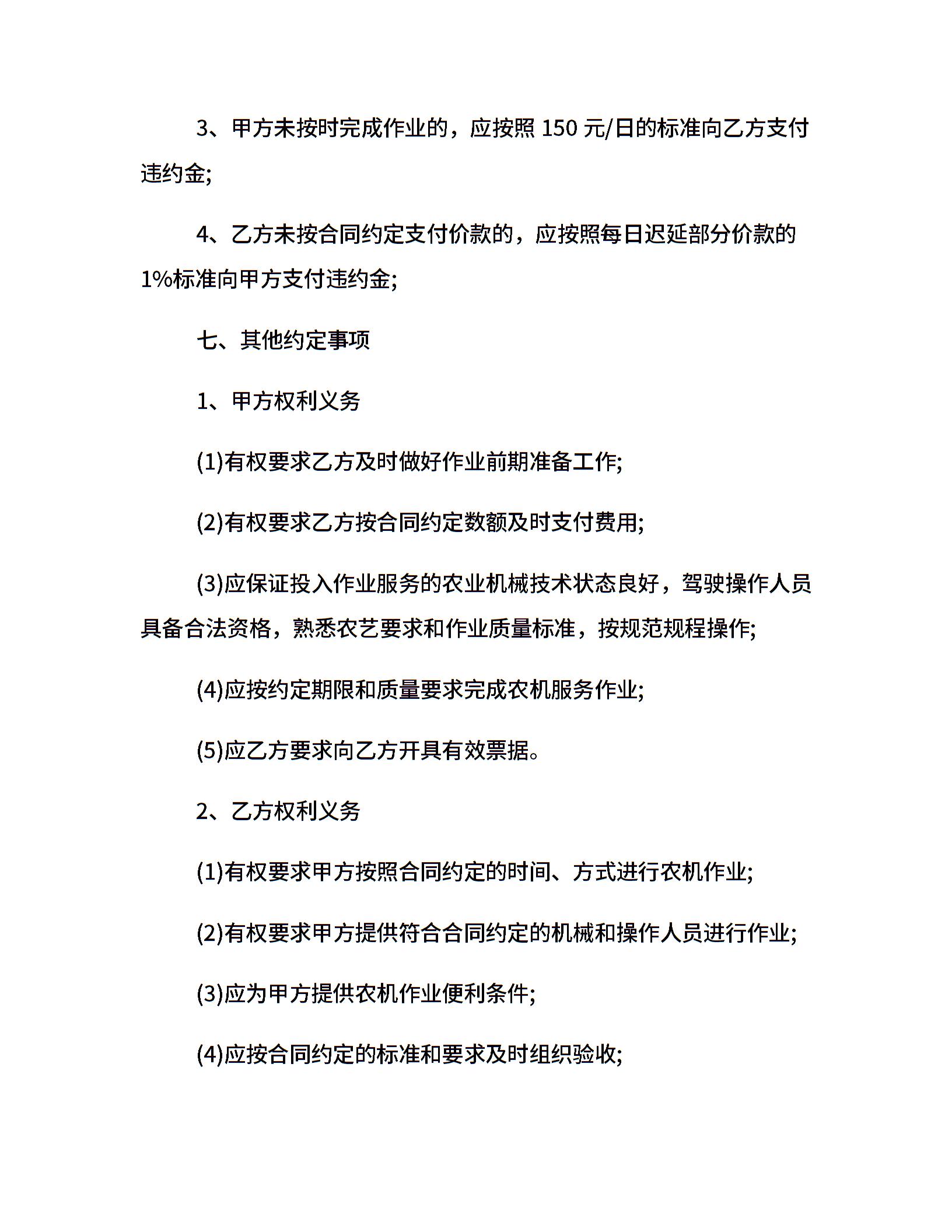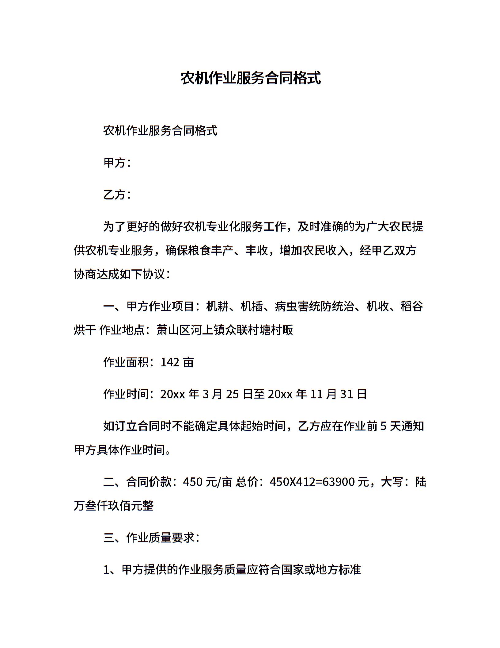 农机作业服务合同格式
