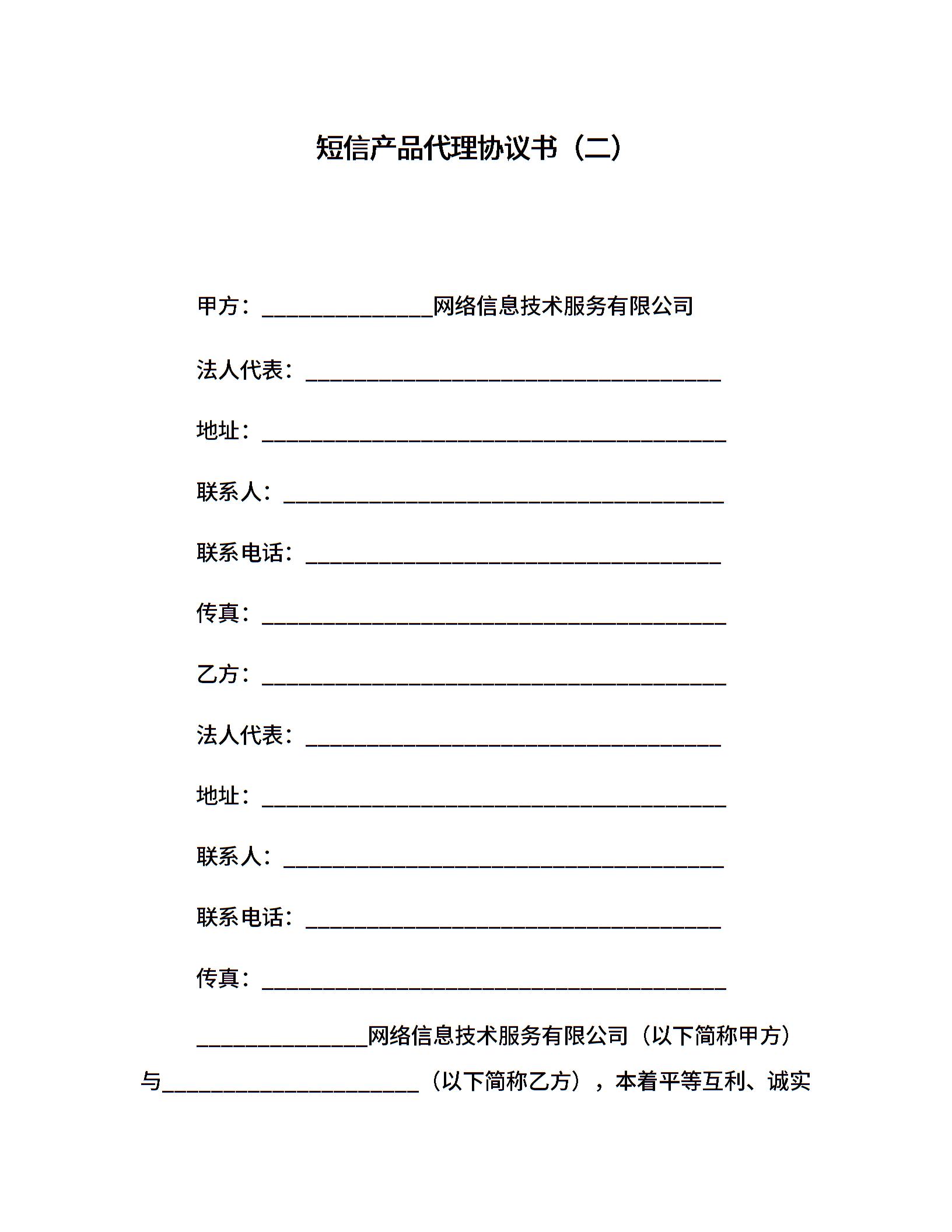 短信产品代理协议书(二)