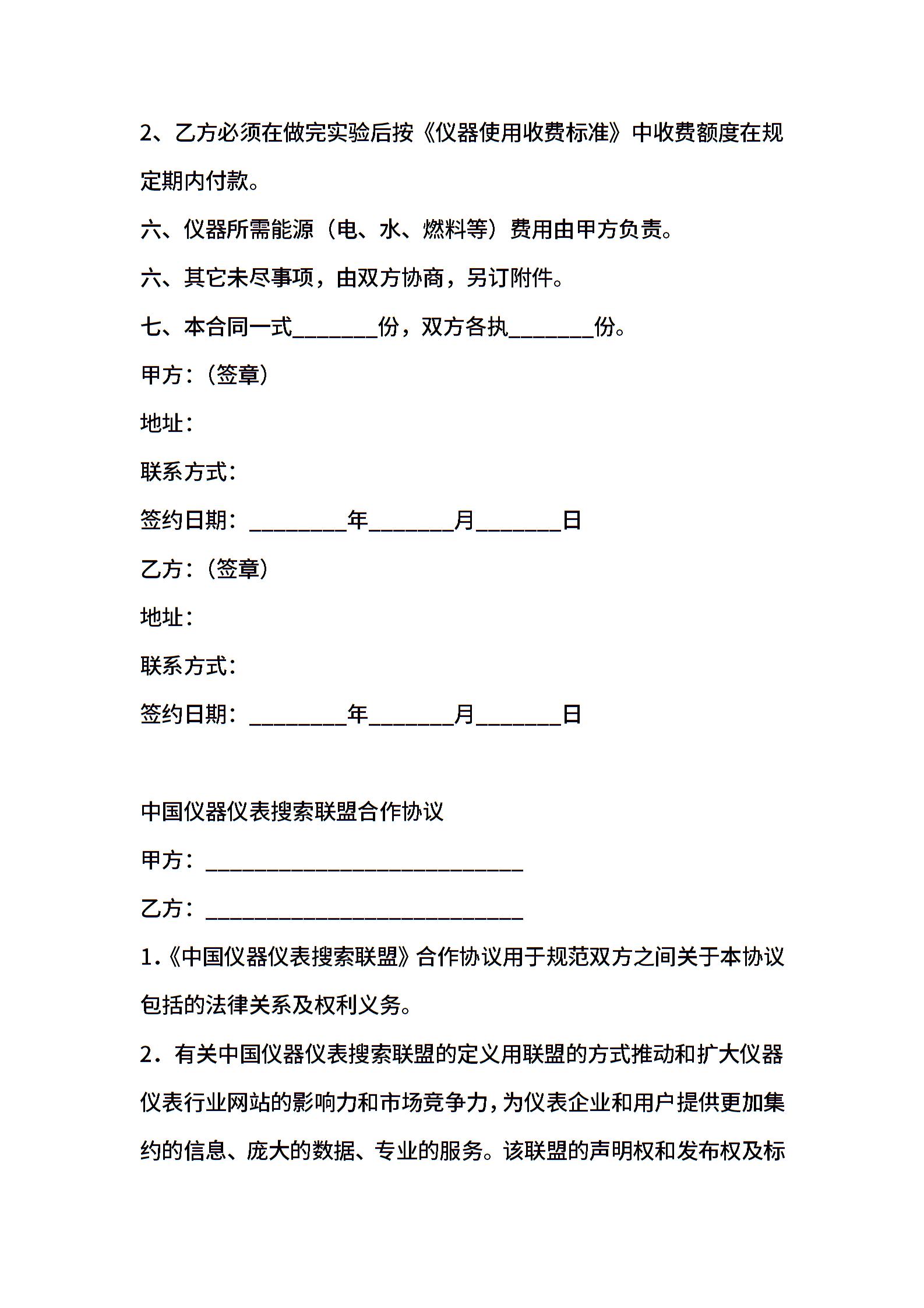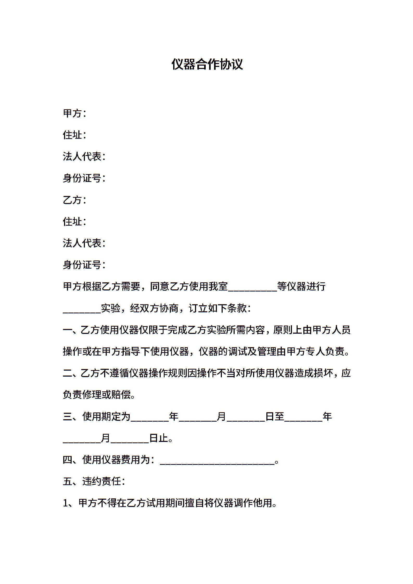 仪器合作协议