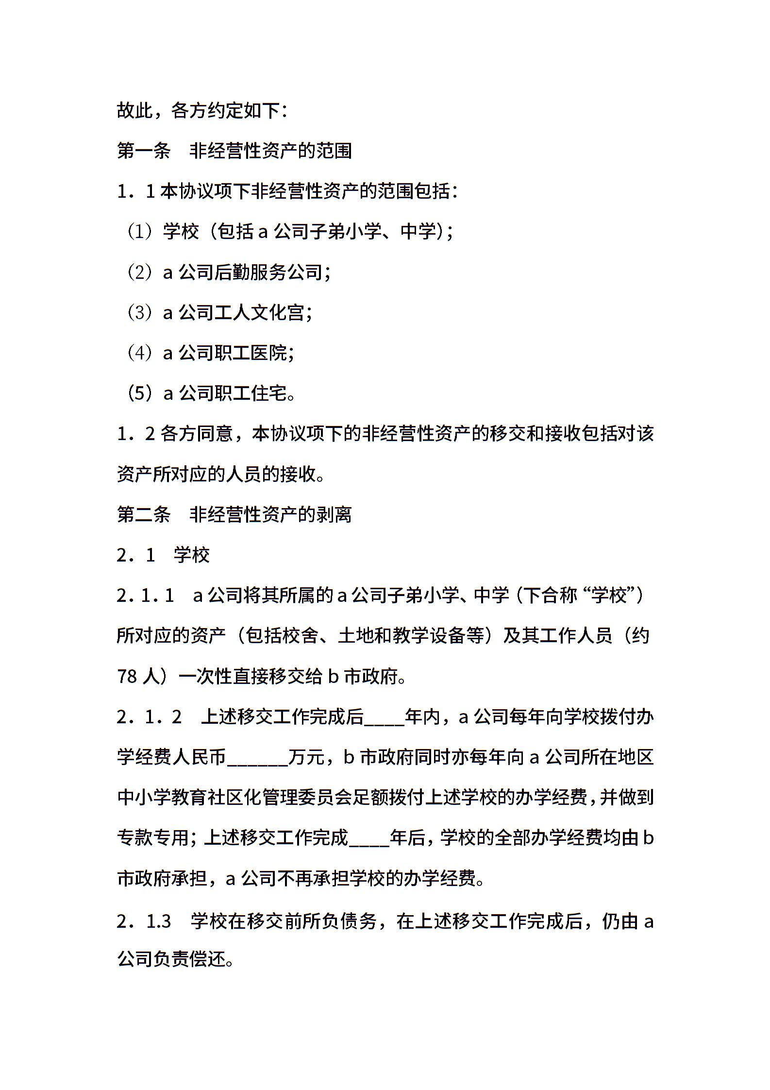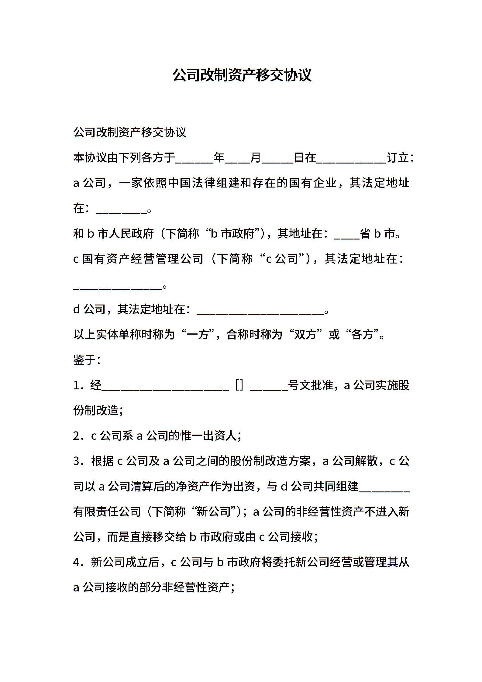 公司改制资产移交协议