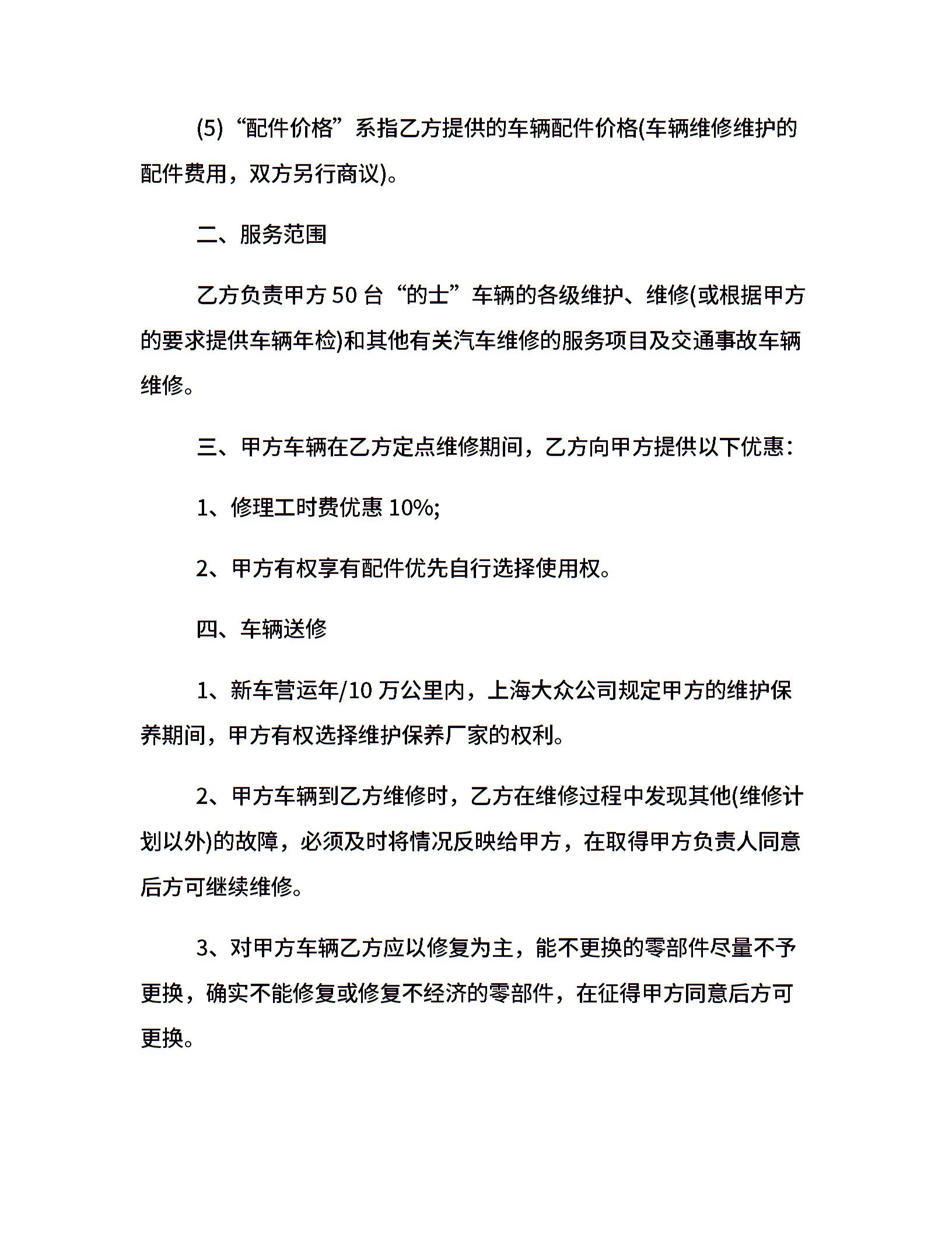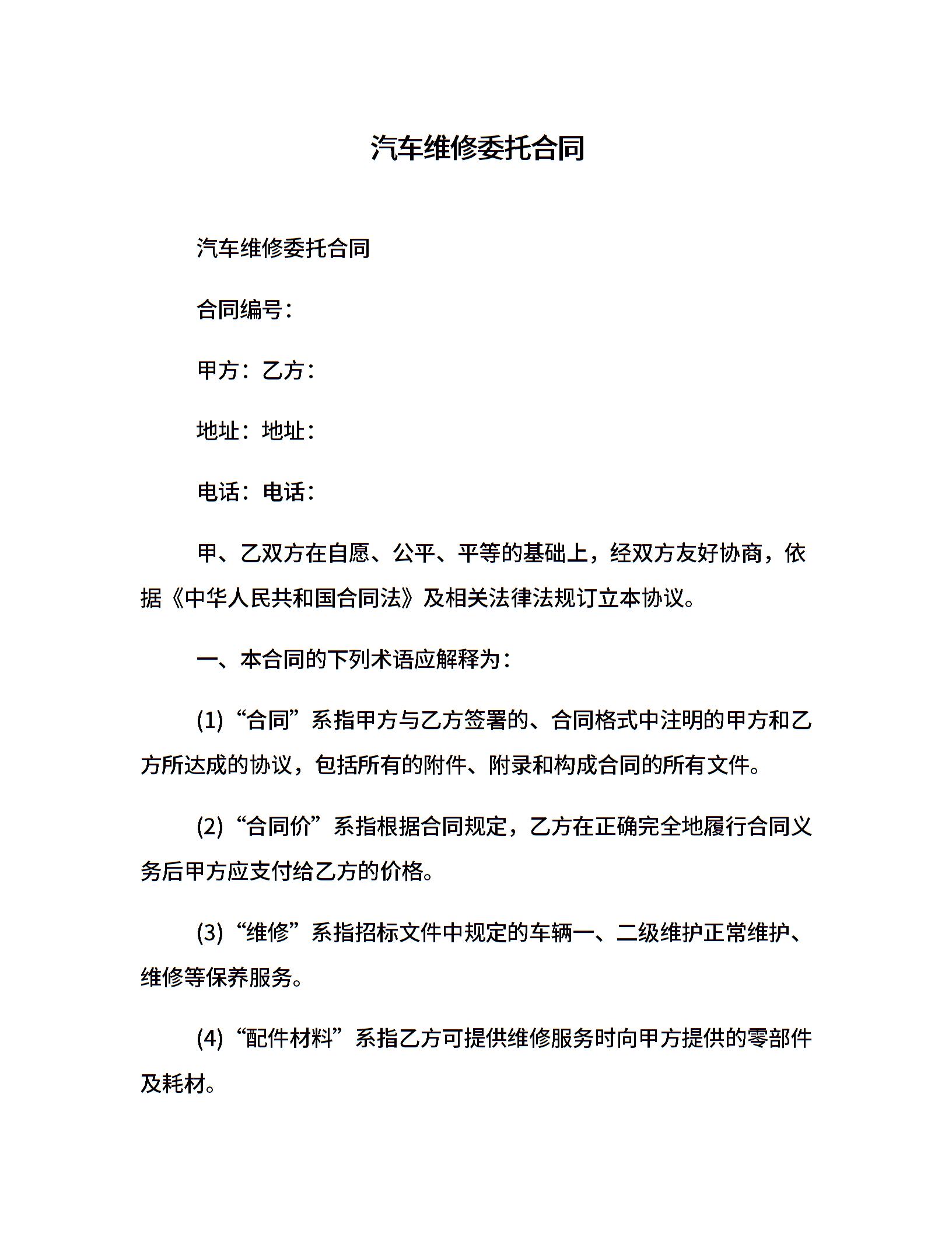 汽车维修委托合同