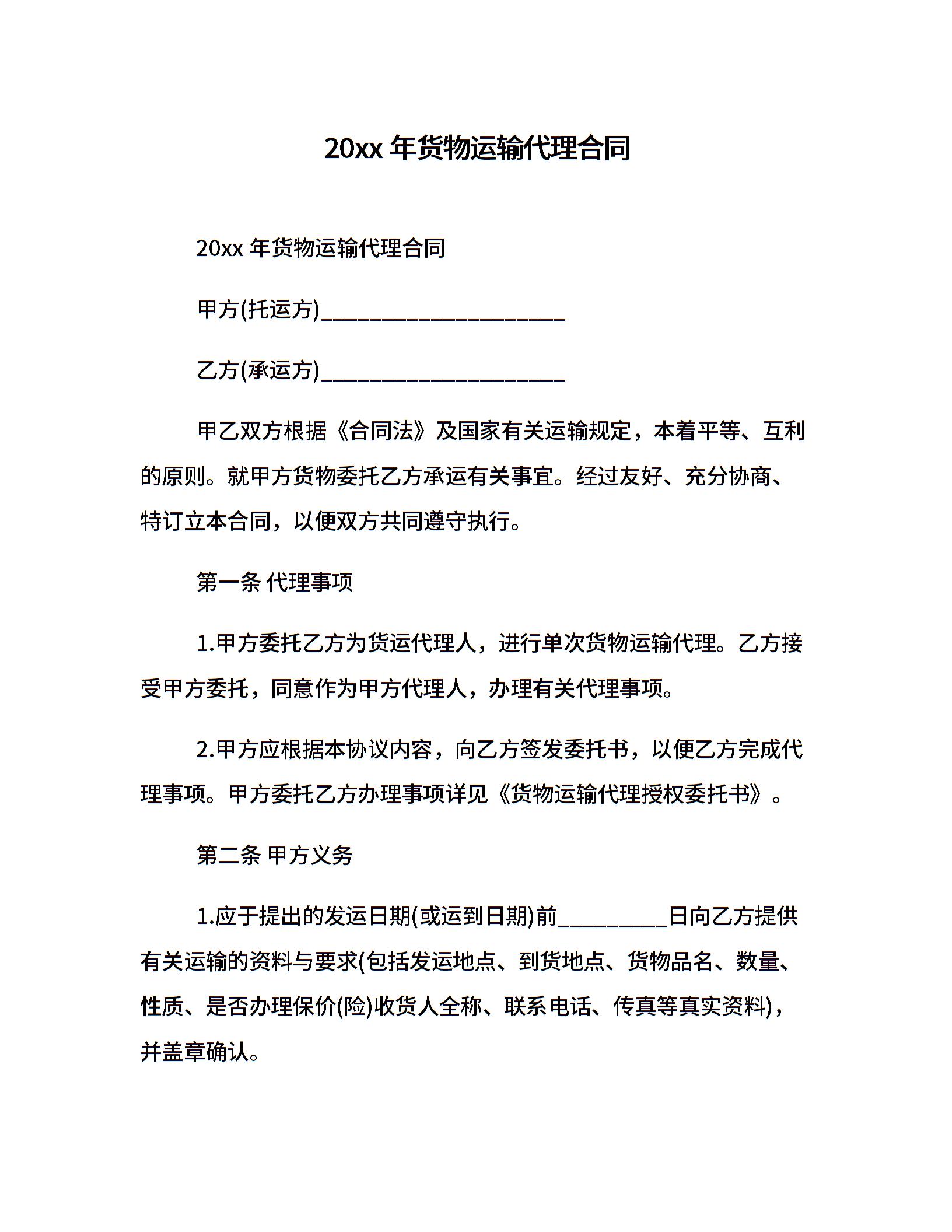 20xx年货物运输代理合同