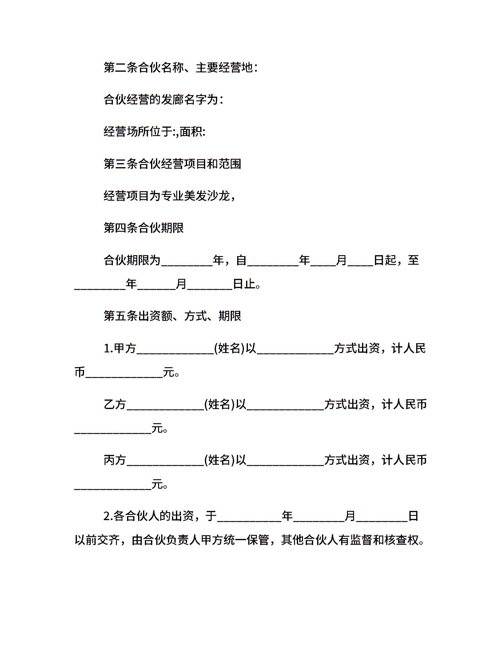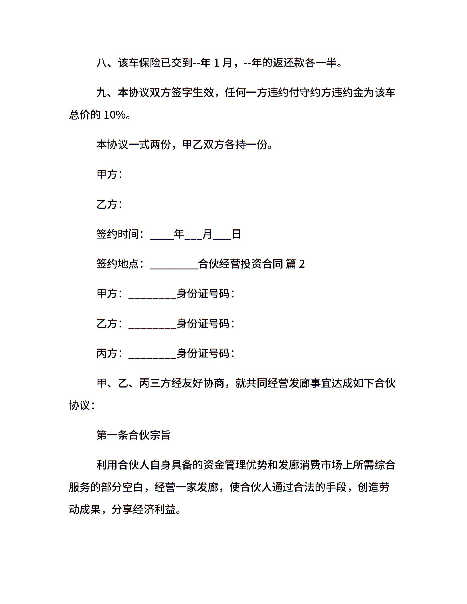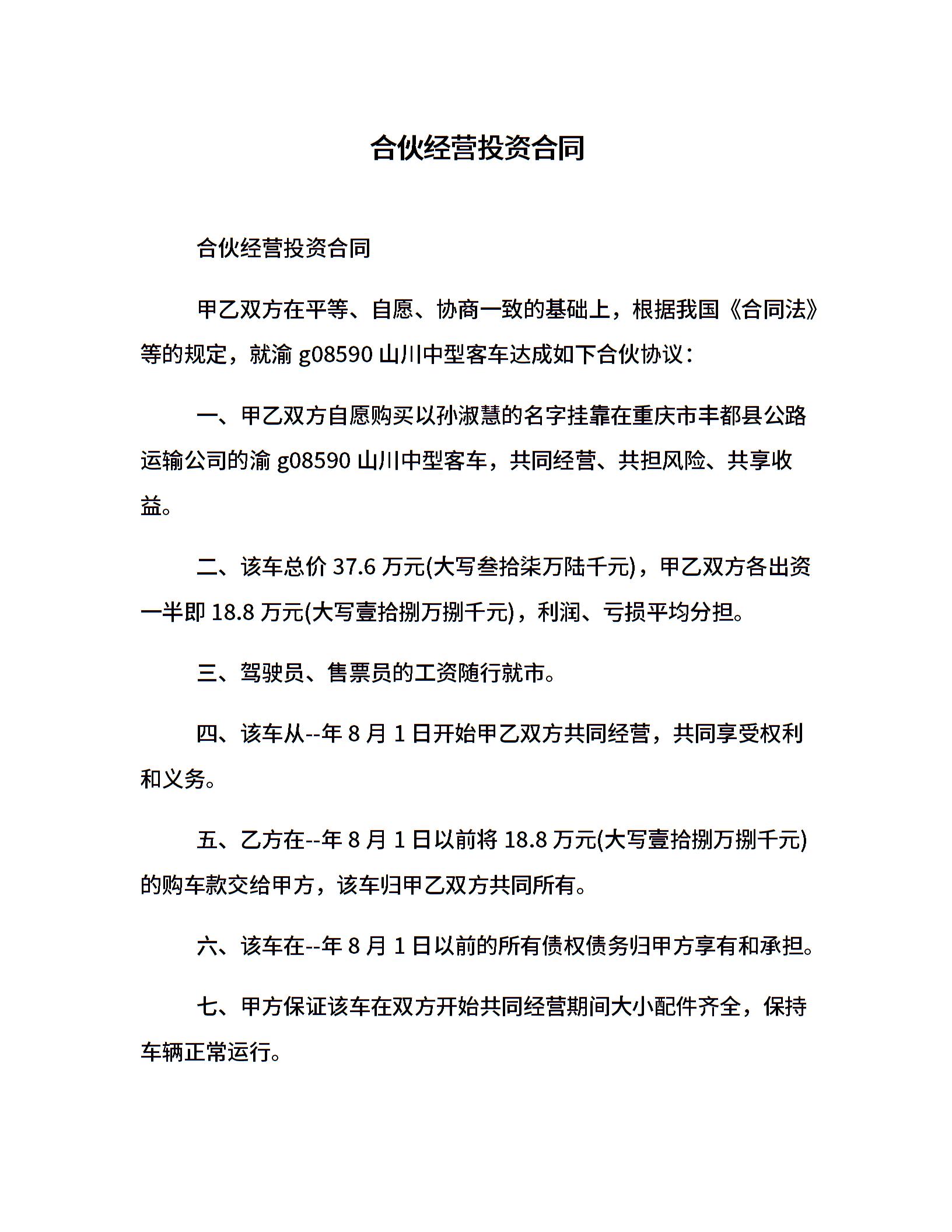 合伙经营投资合同