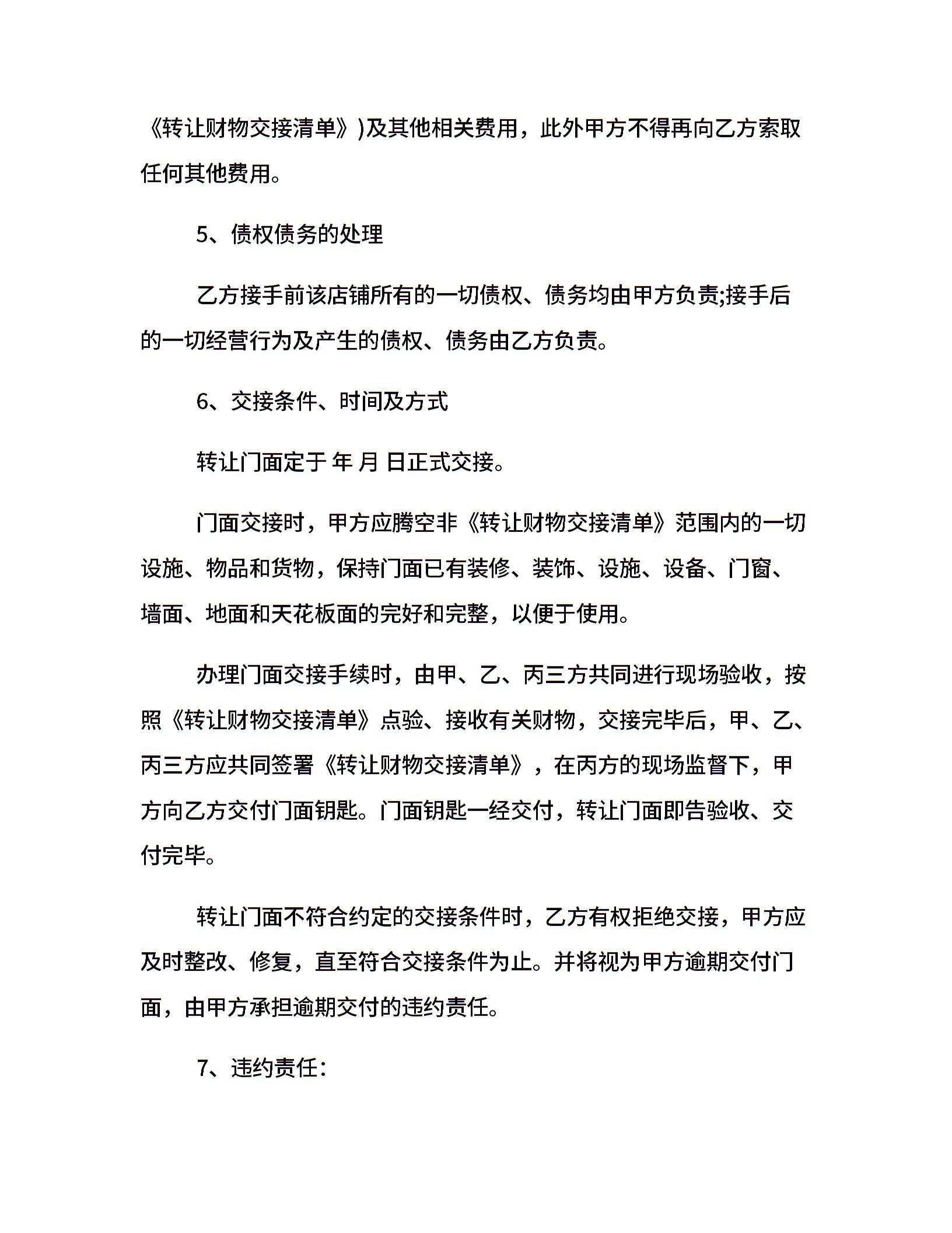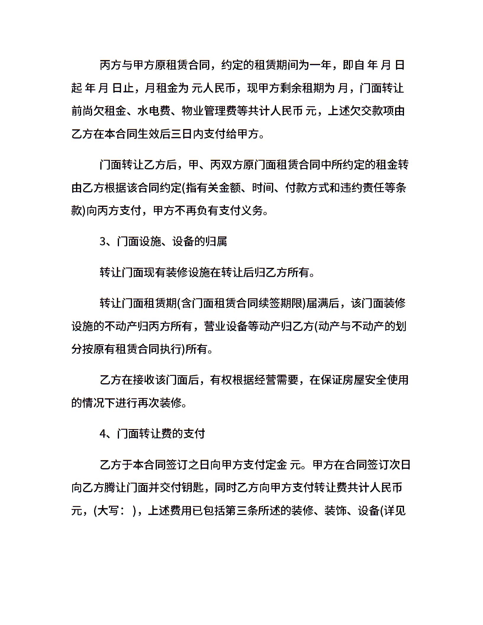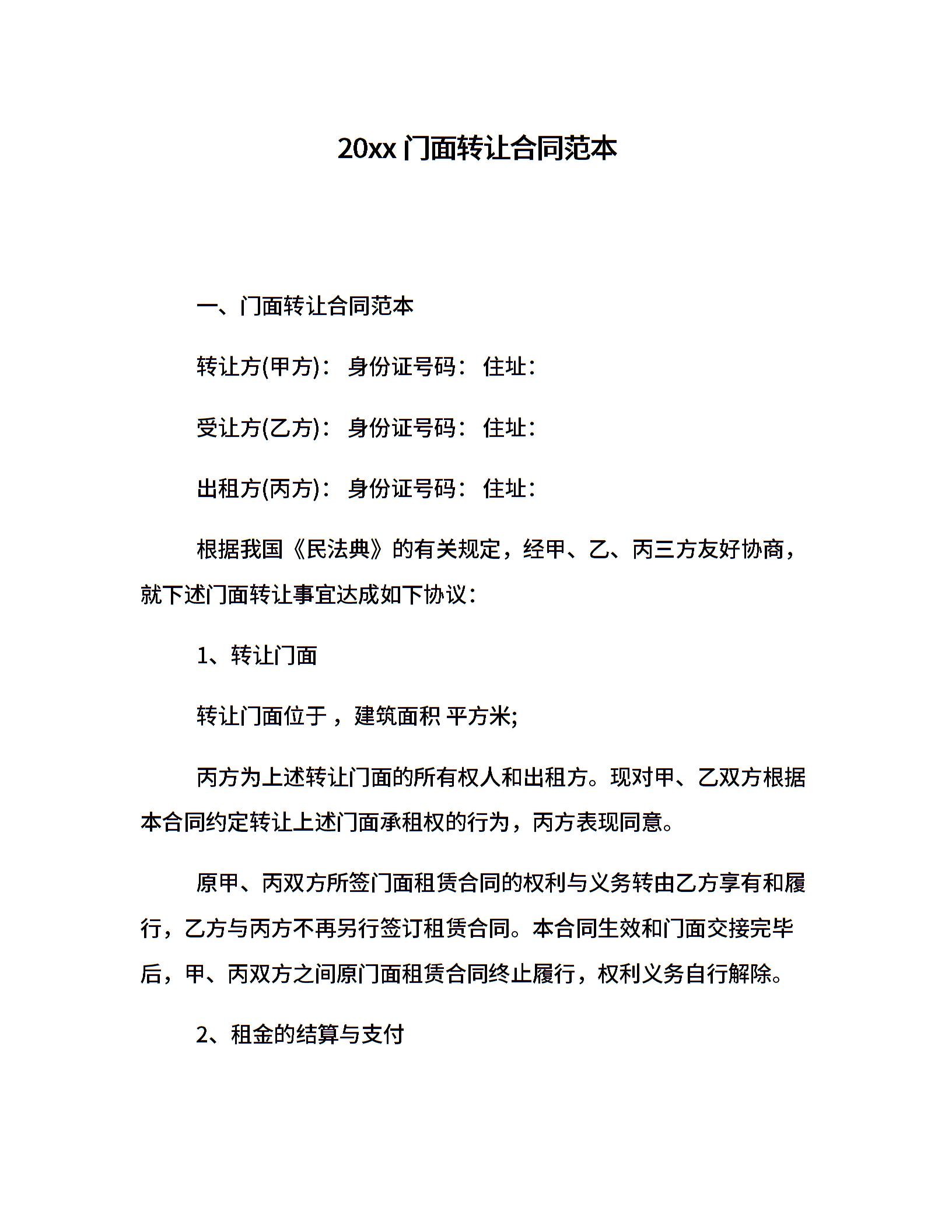 20xx门面转让合同范本