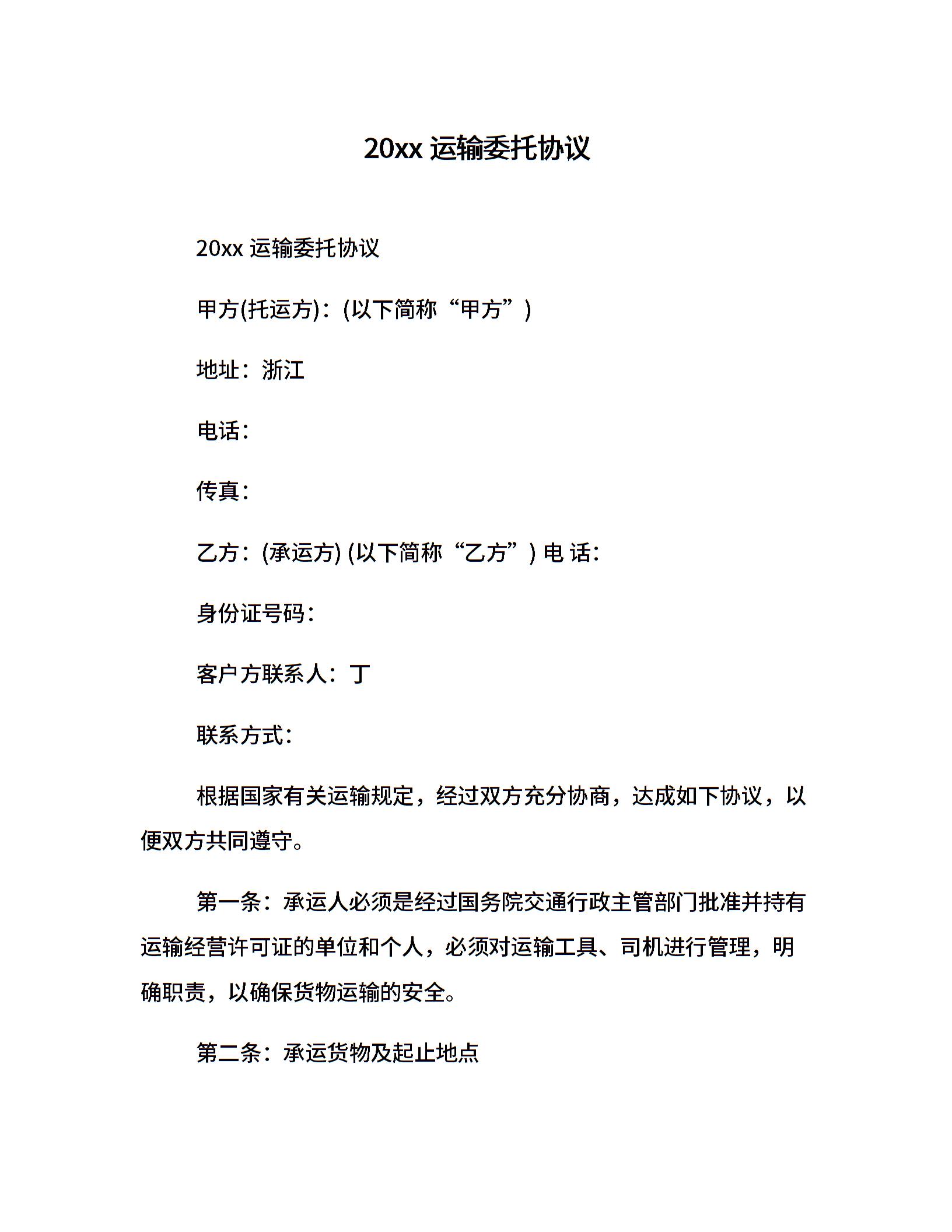 20xx运输委托协议