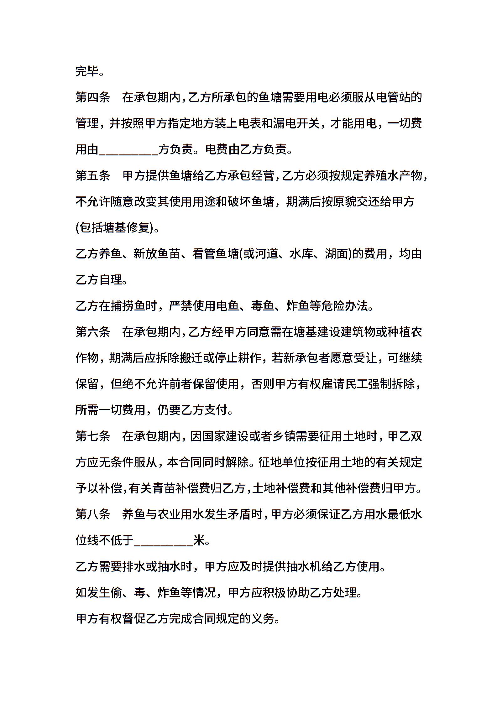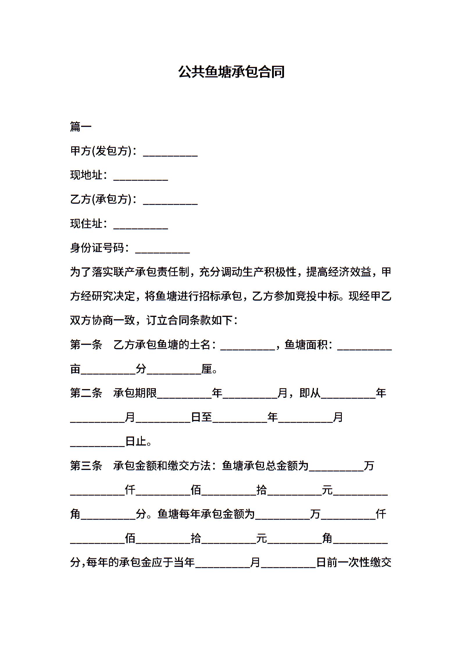 公共鱼塘承包合同