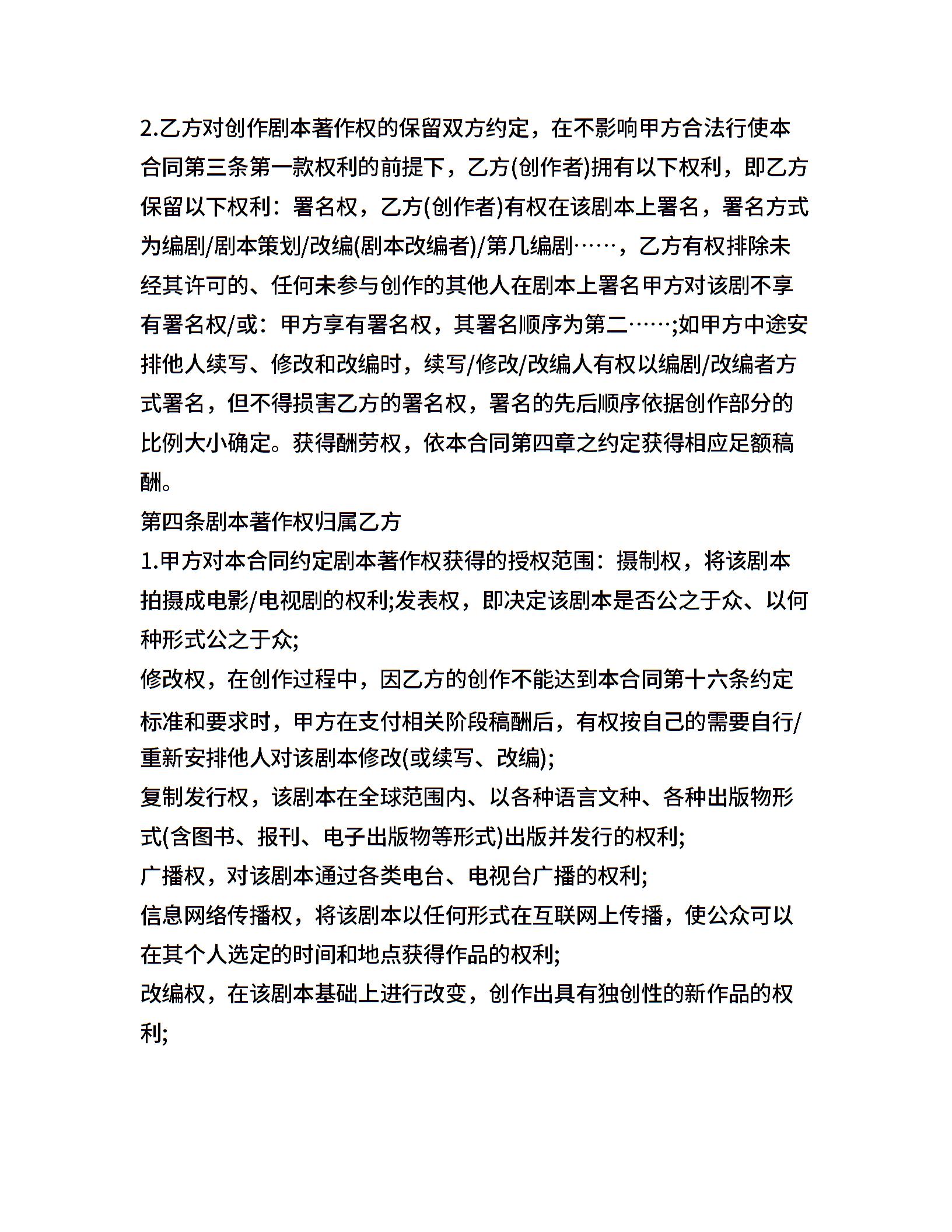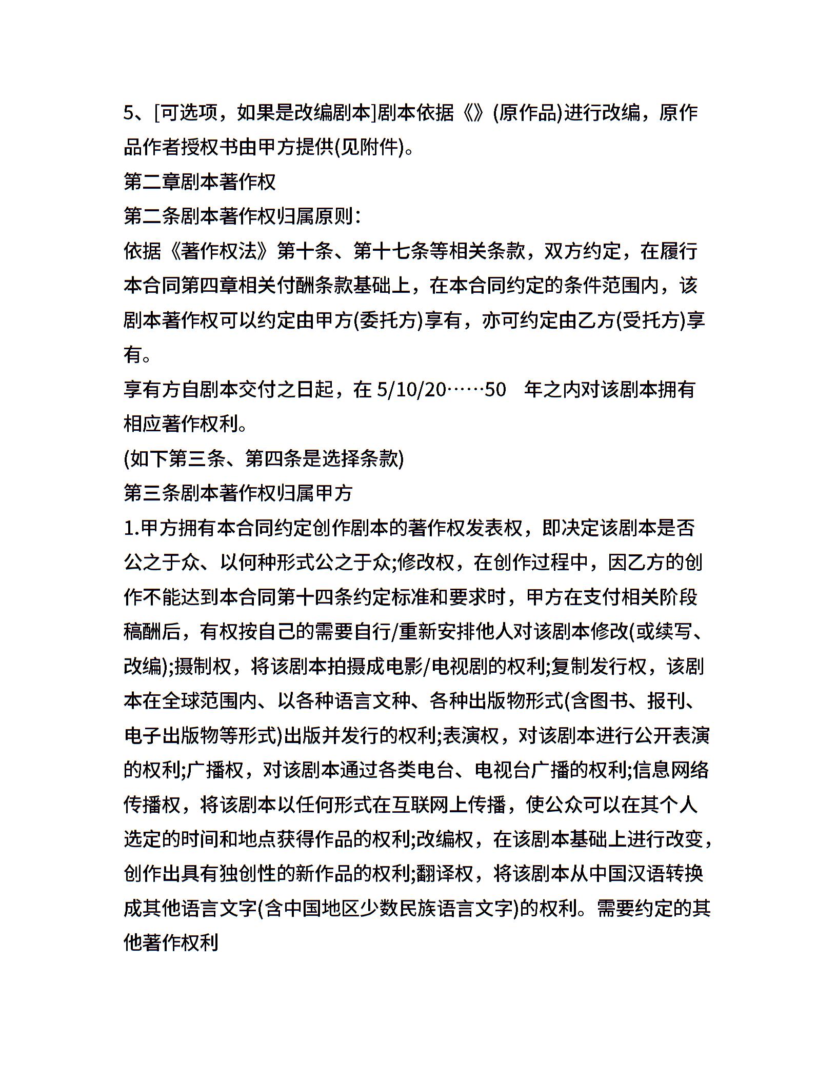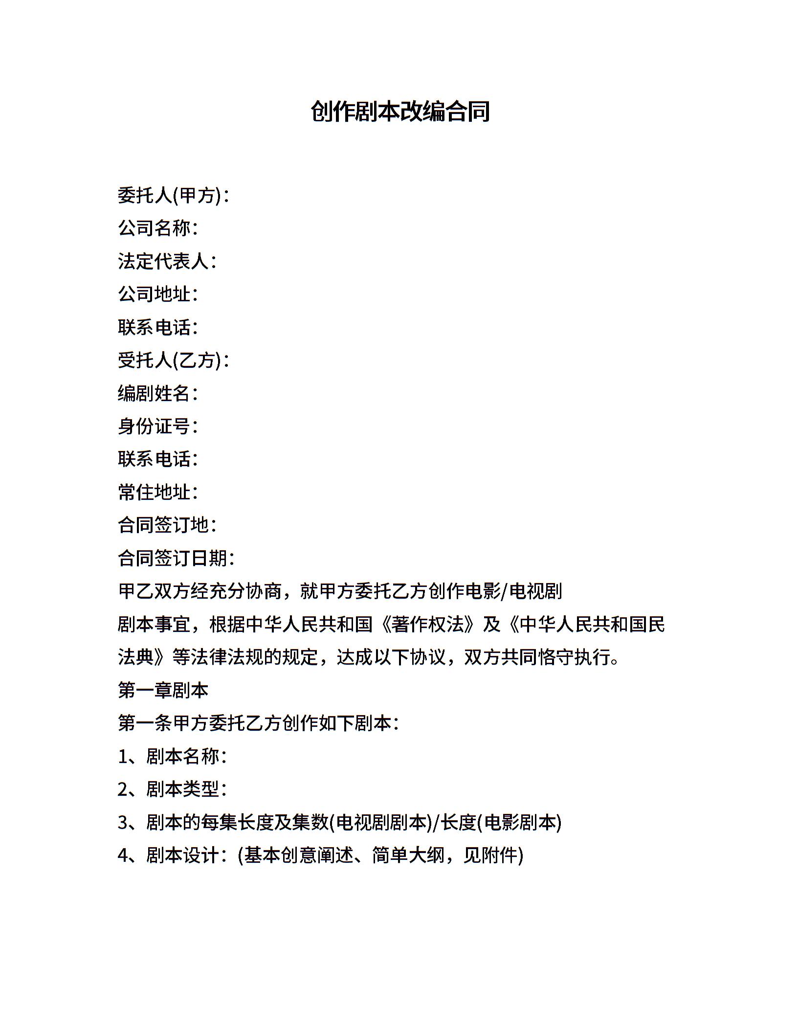 创作剧本改编合同