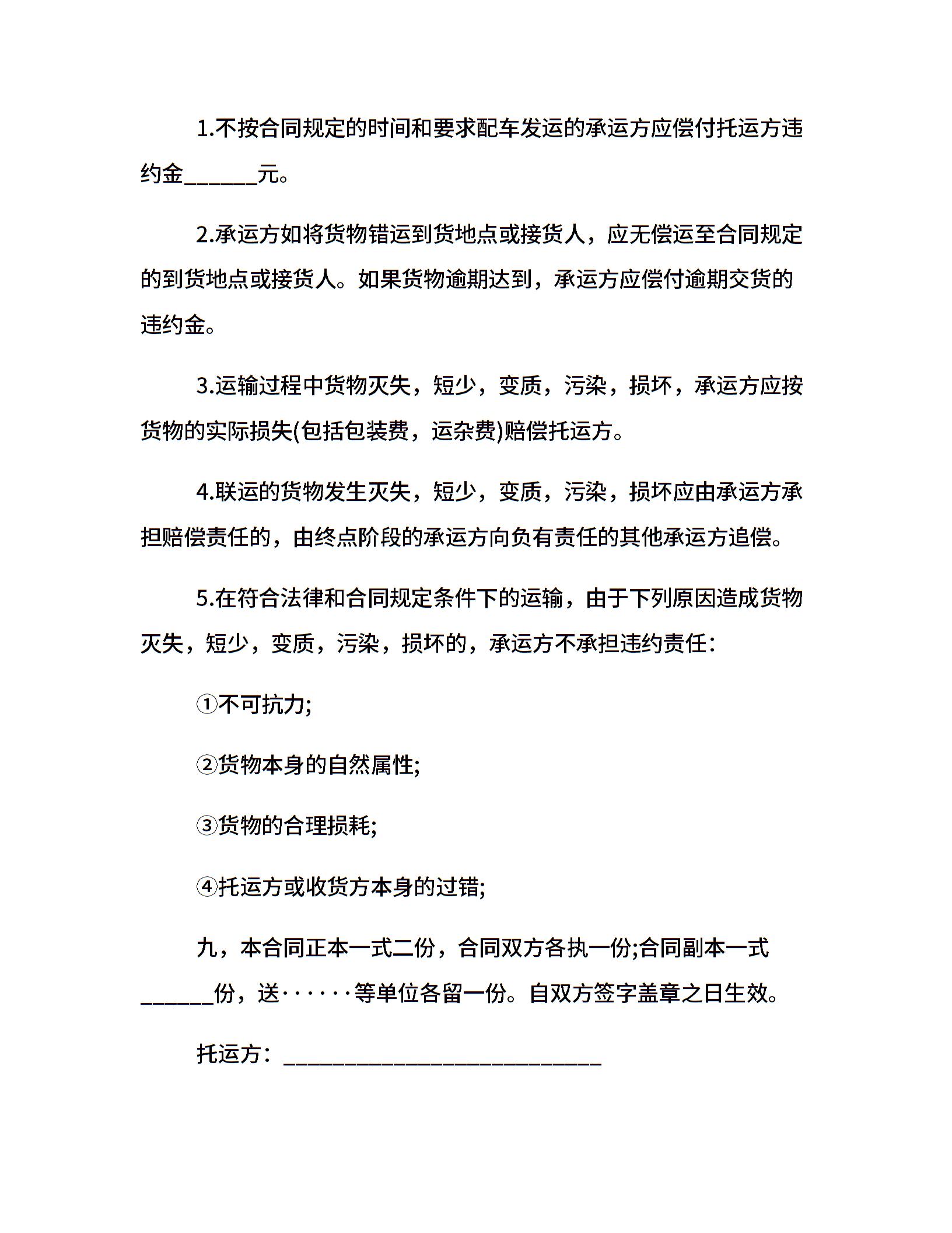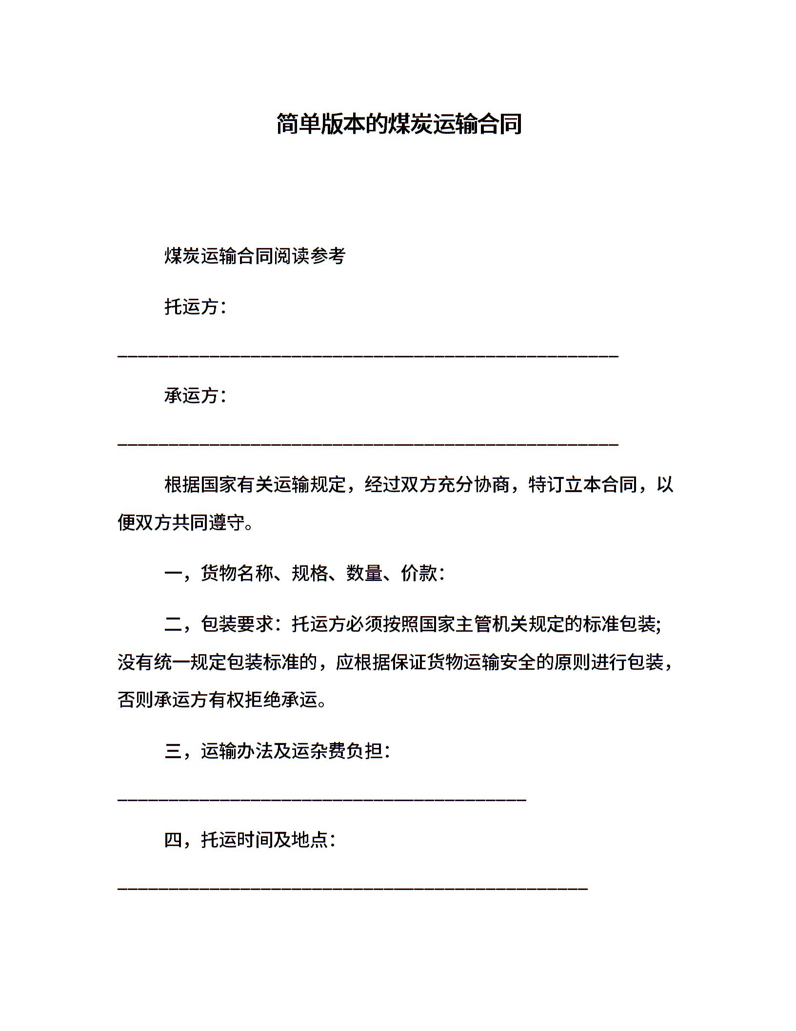 简单版本的煤炭运输合同