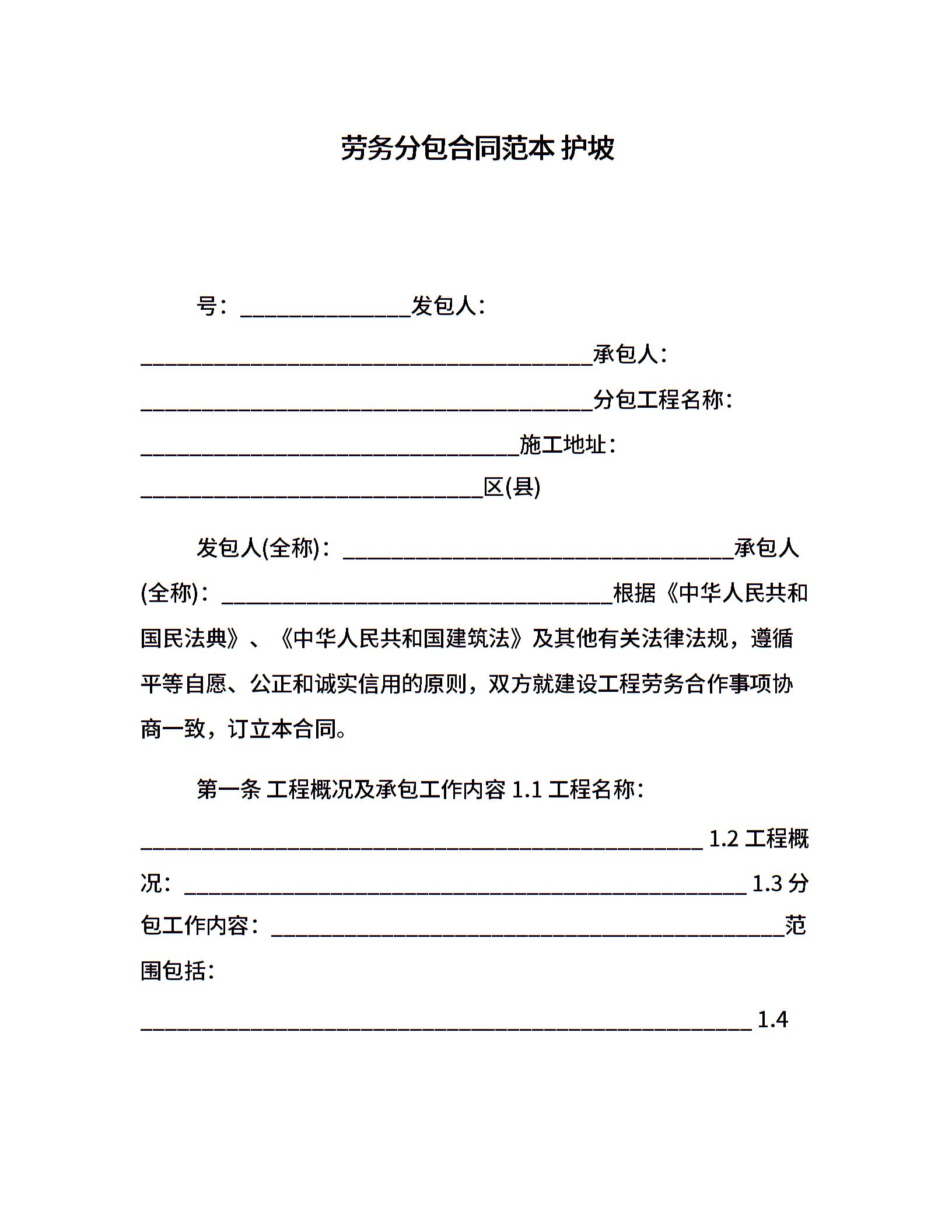 劳务分包合同范本 护坡