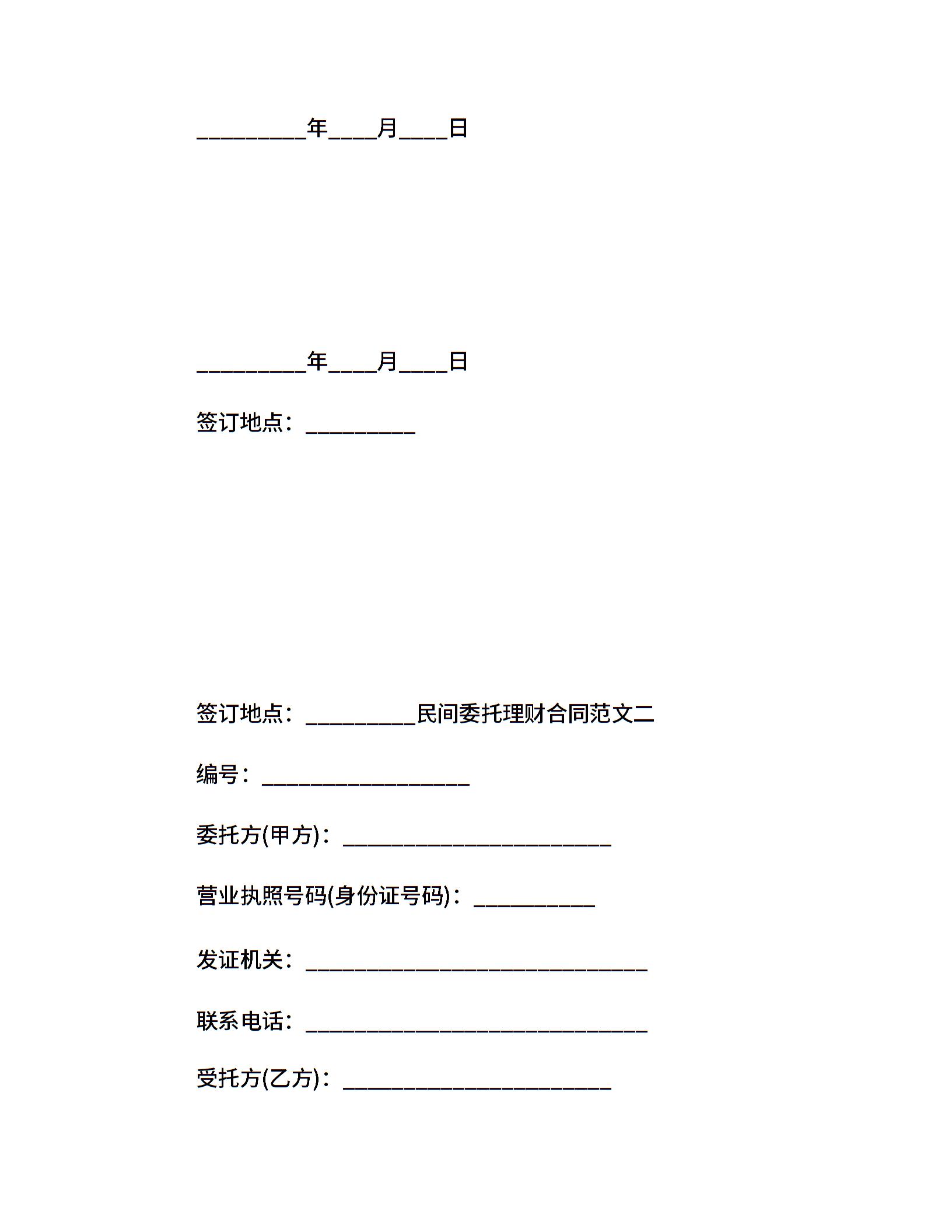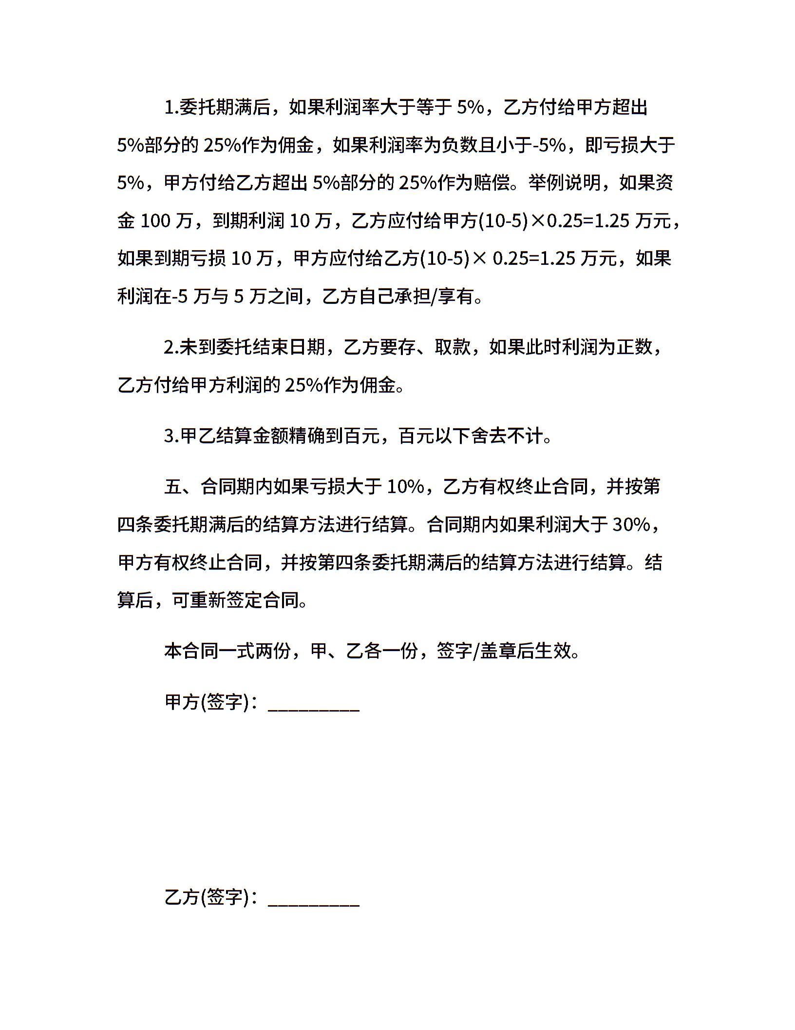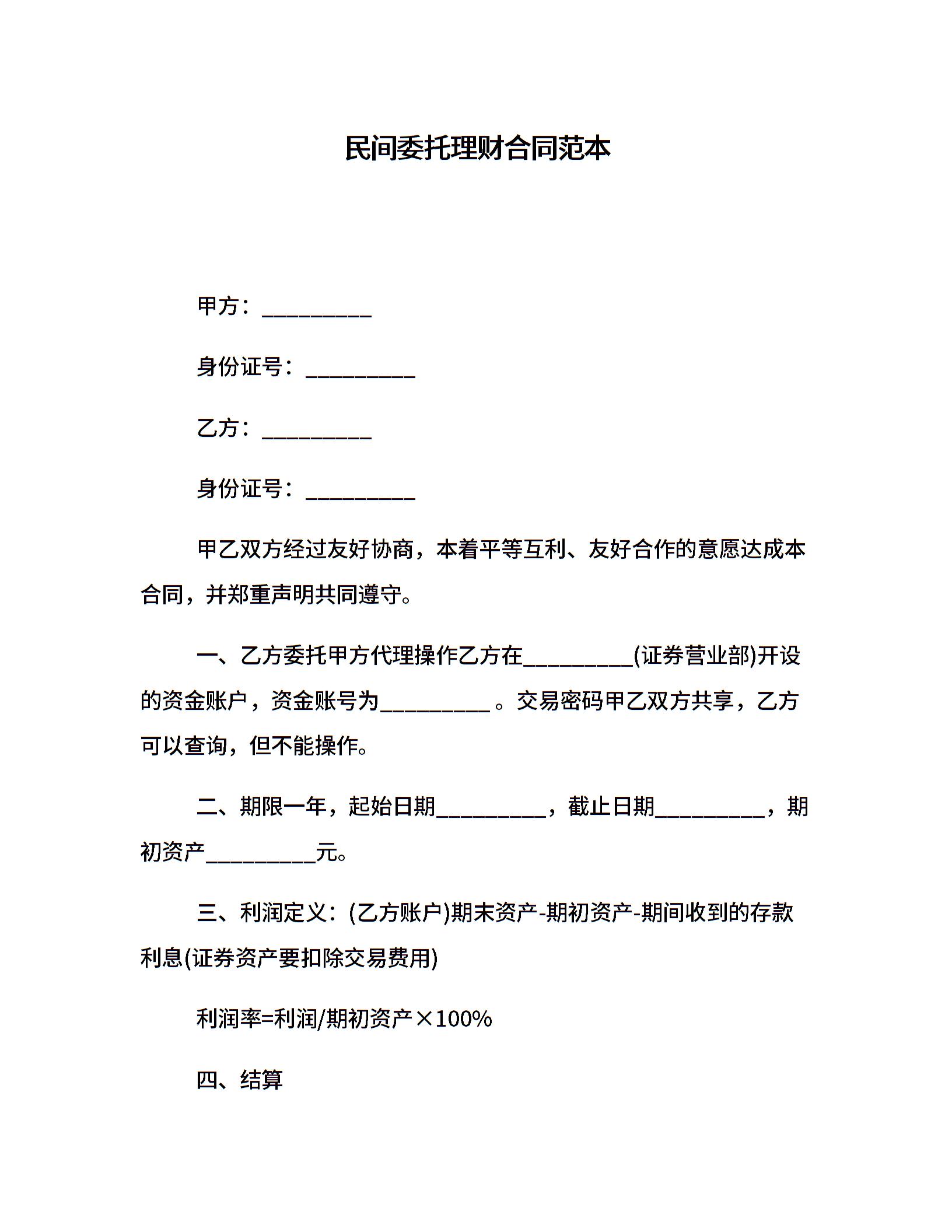 民间委托理财合同范本