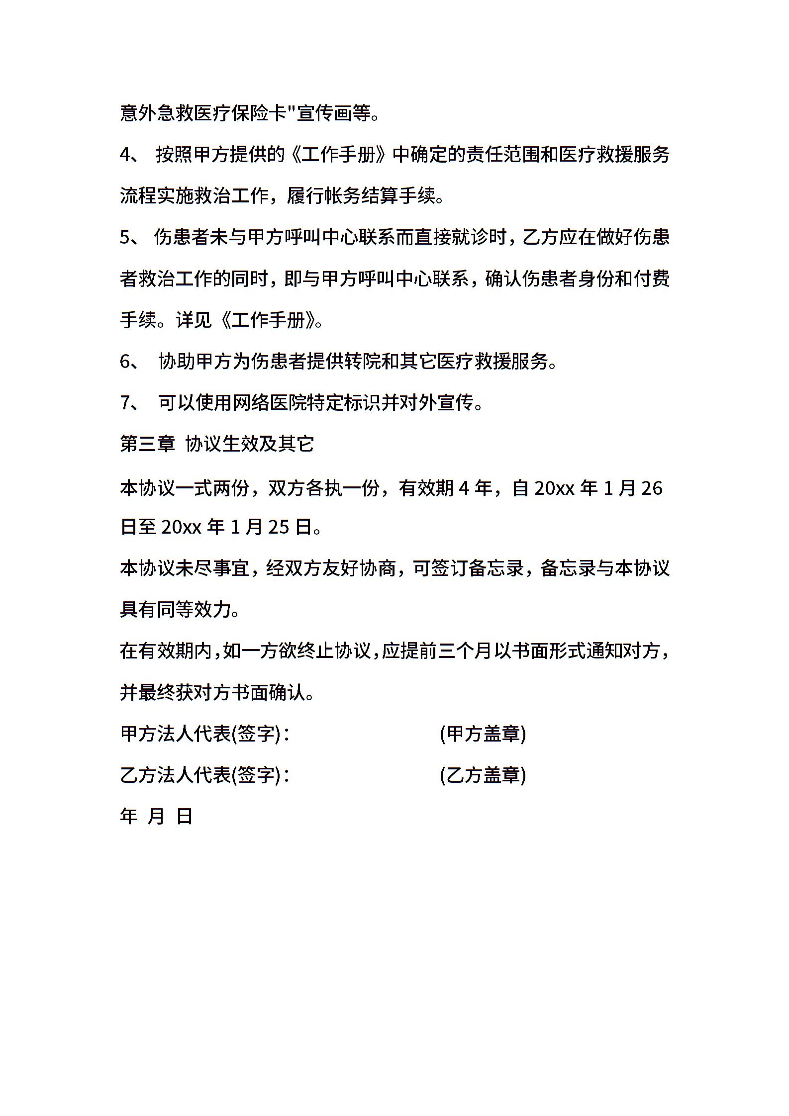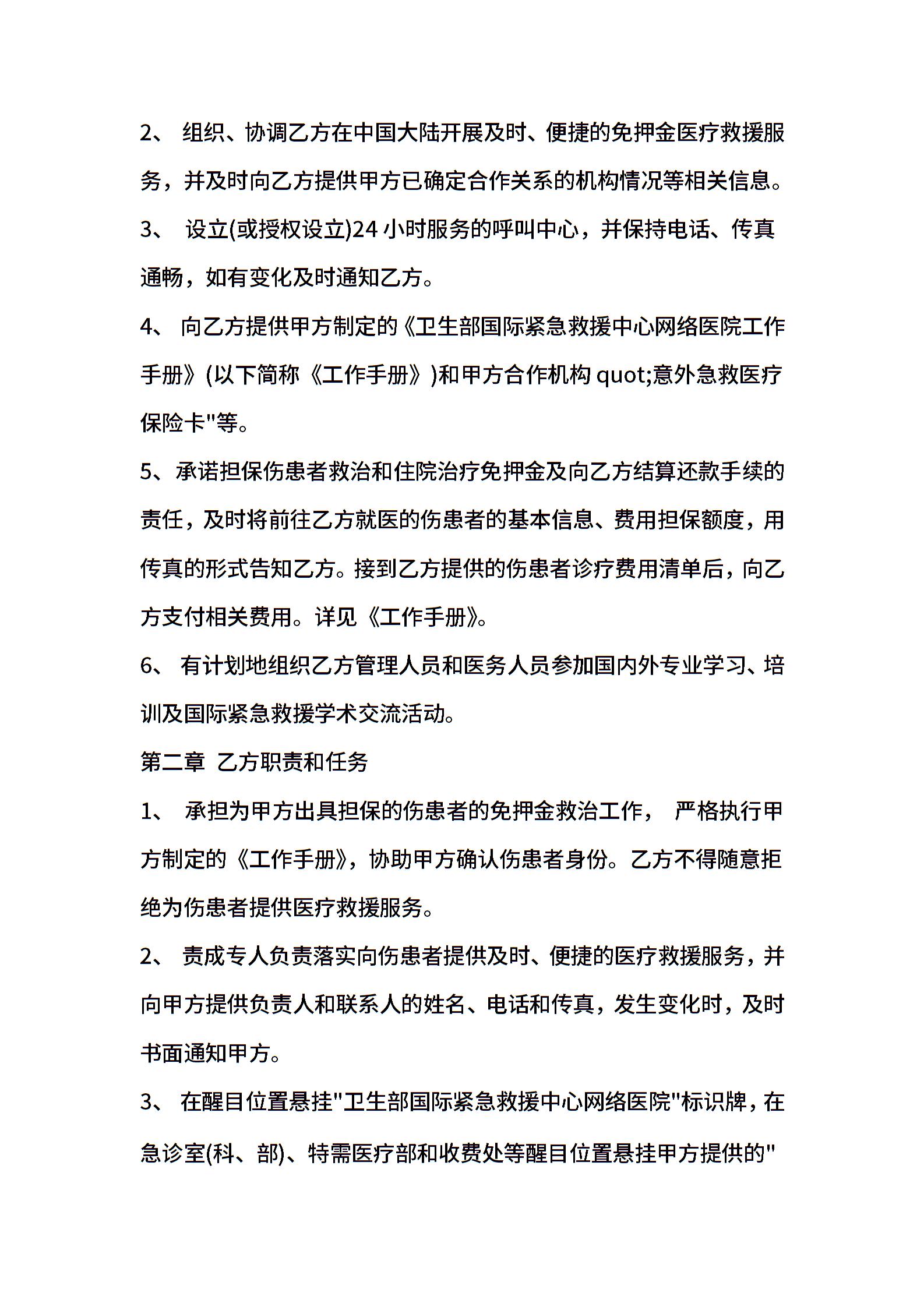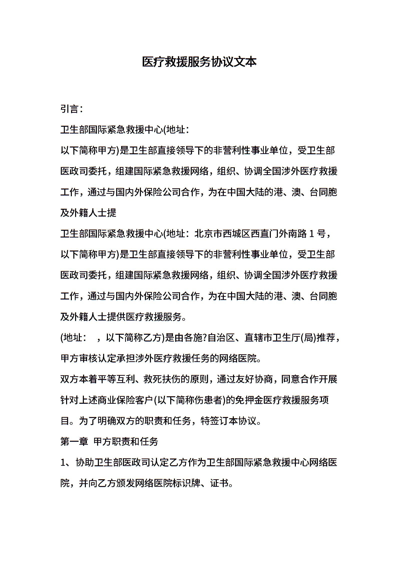 医疗救援服务协议文本