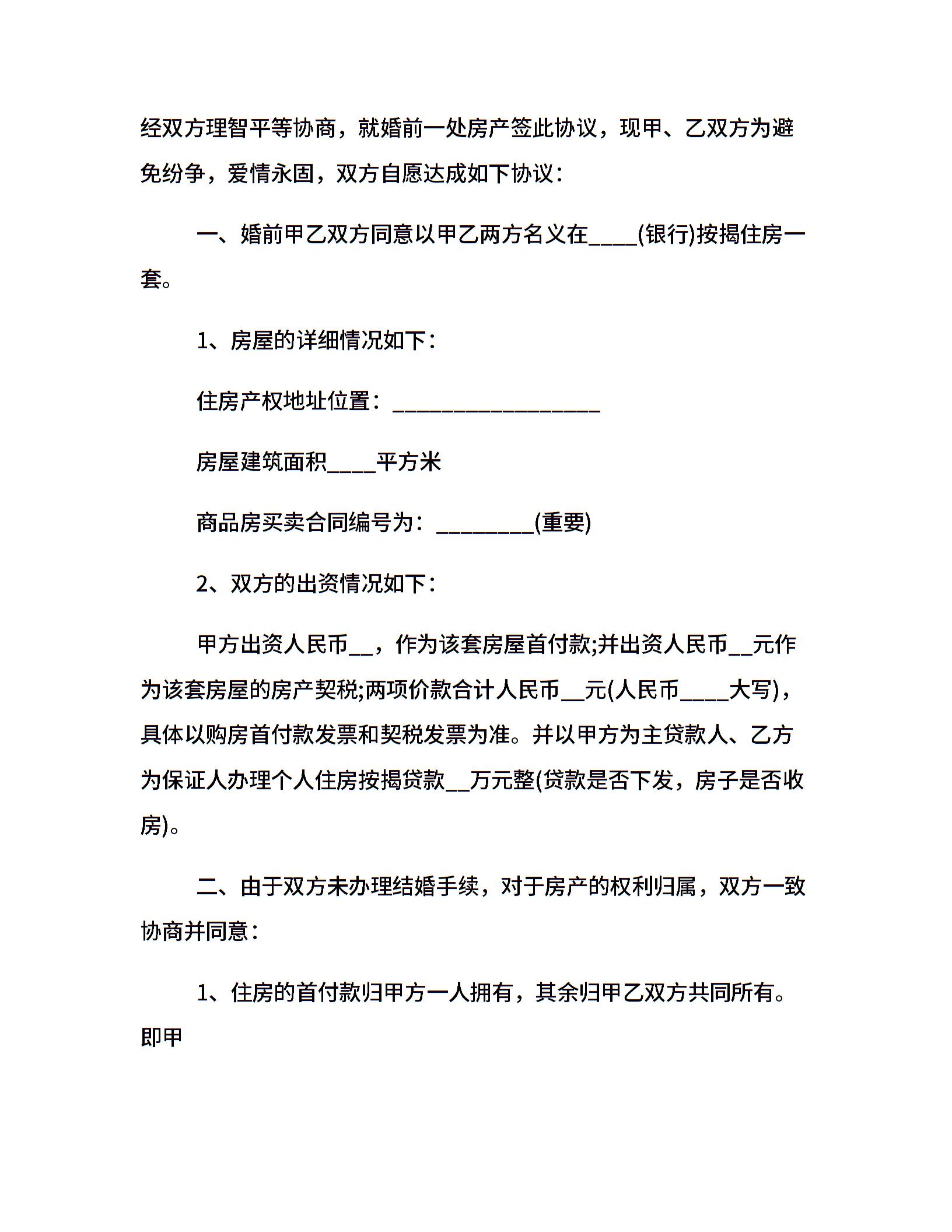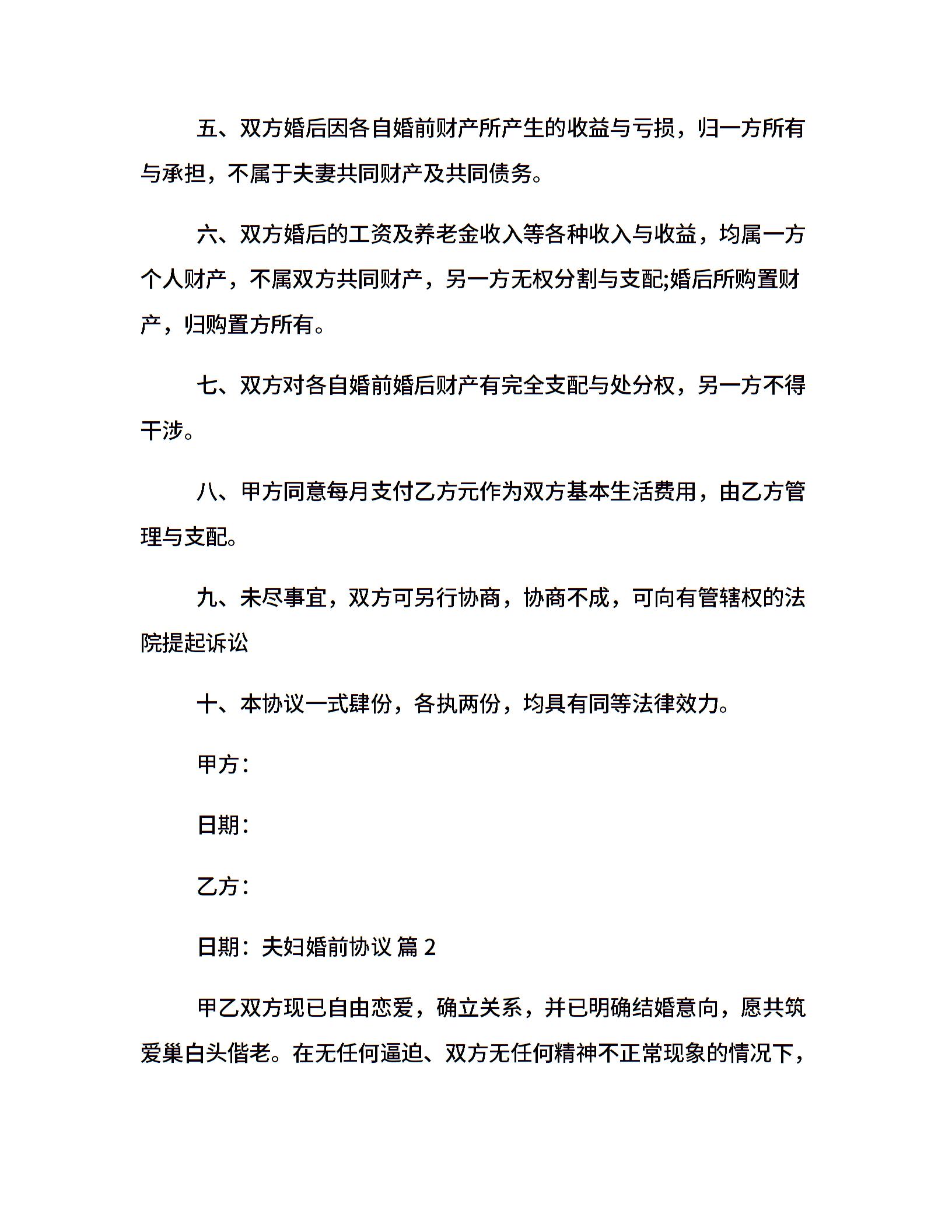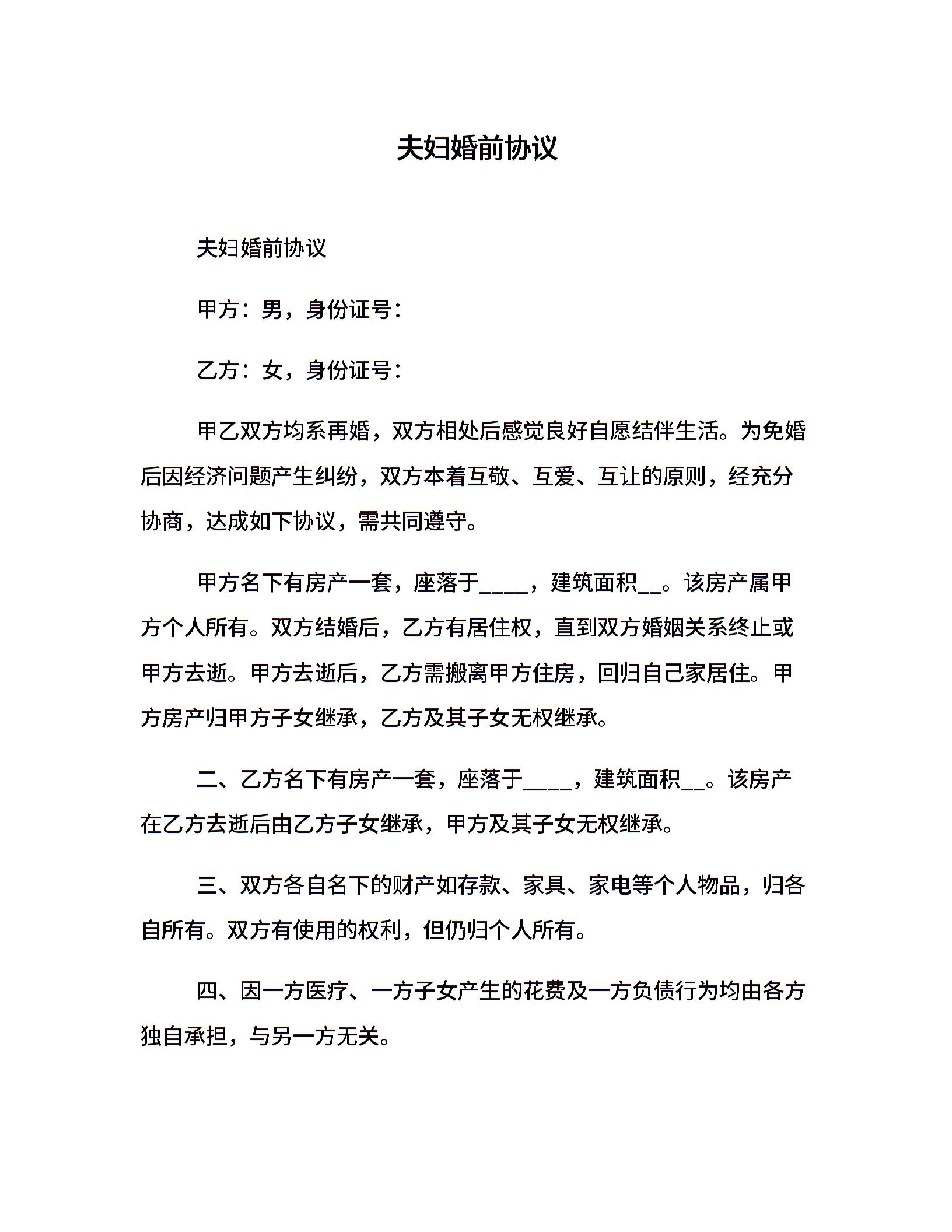 夫妇婚前协议