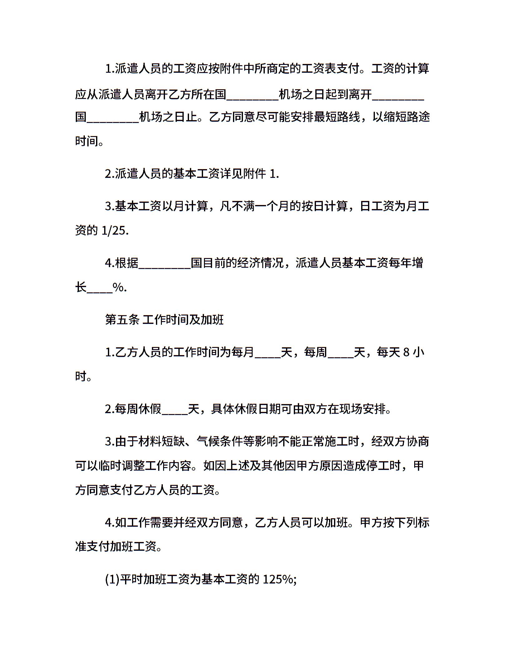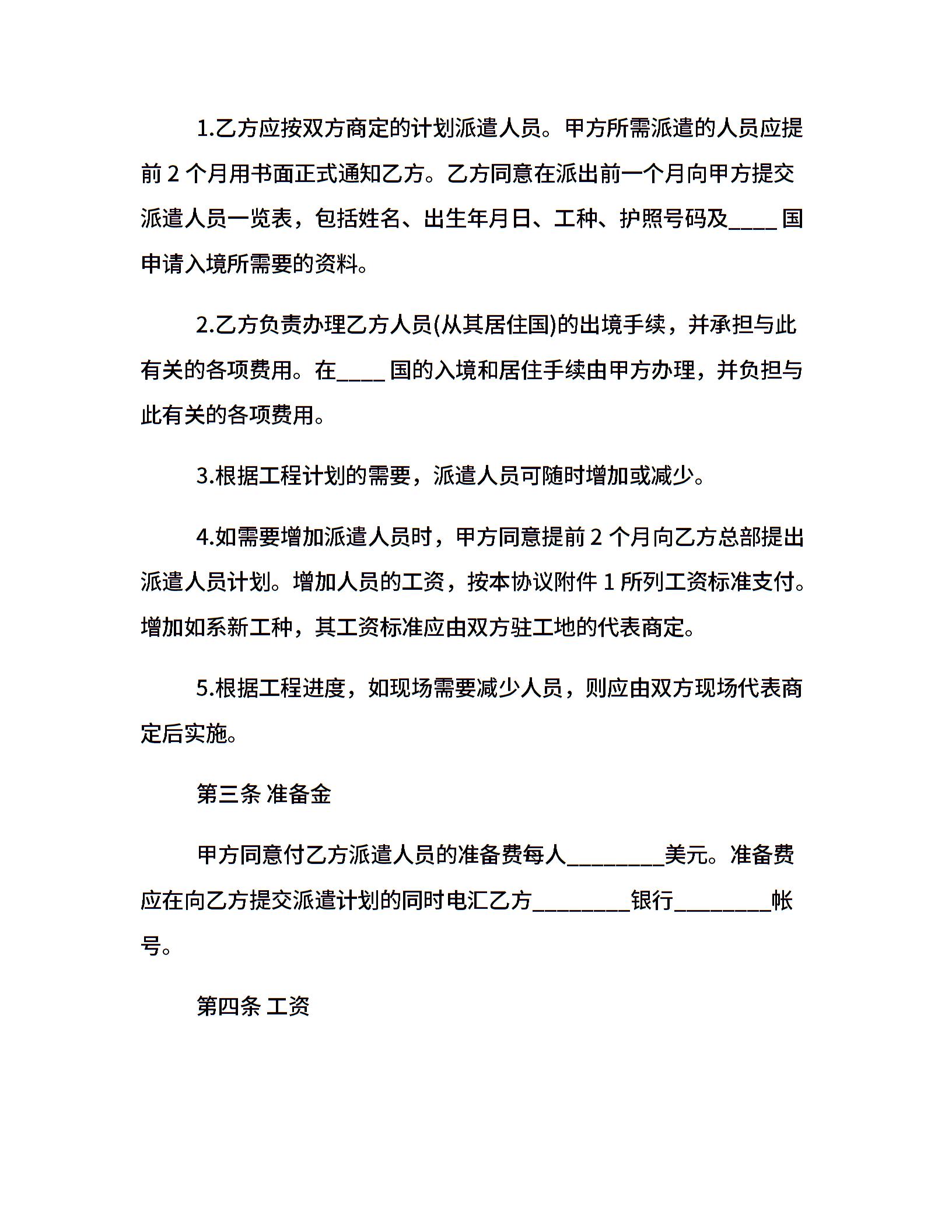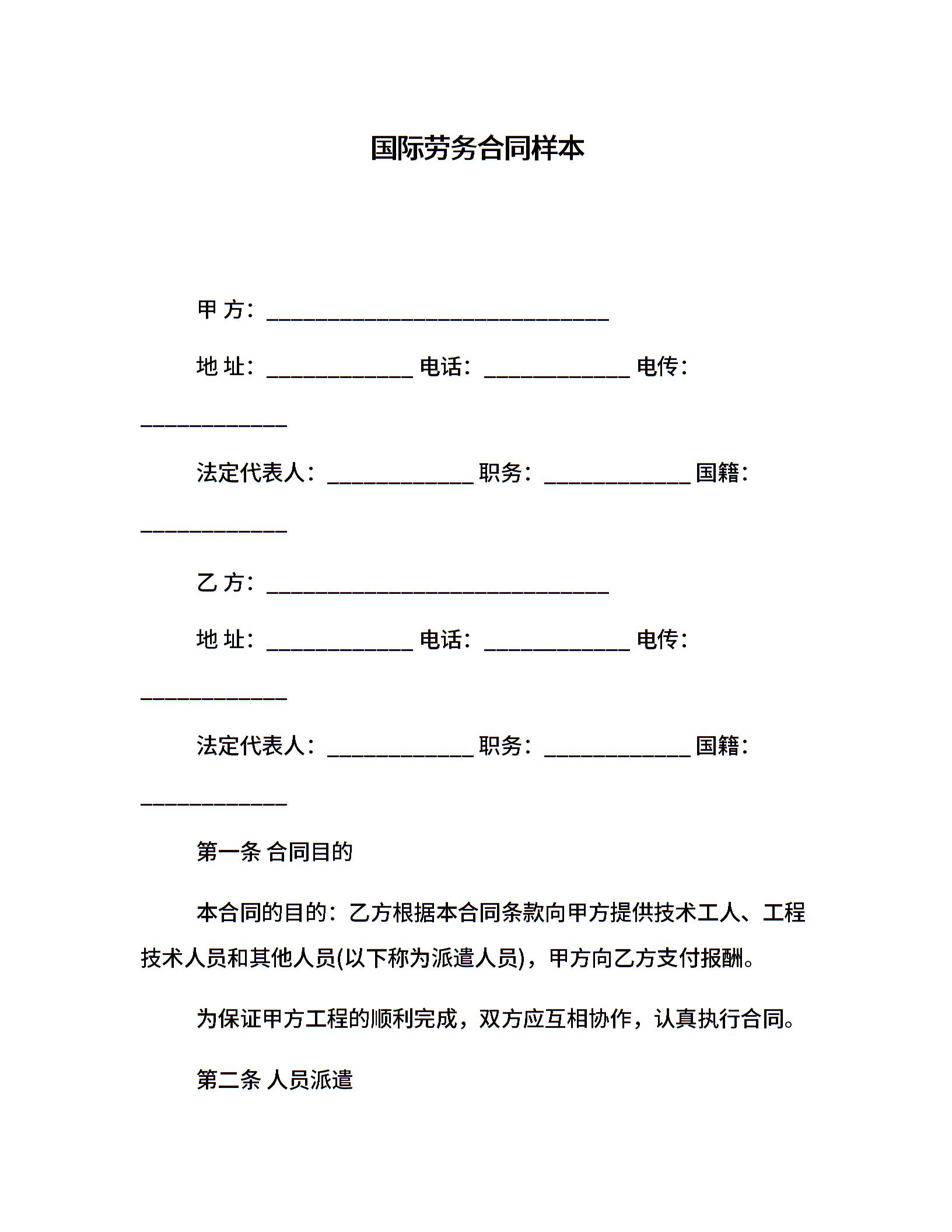 国际劳务合同样本