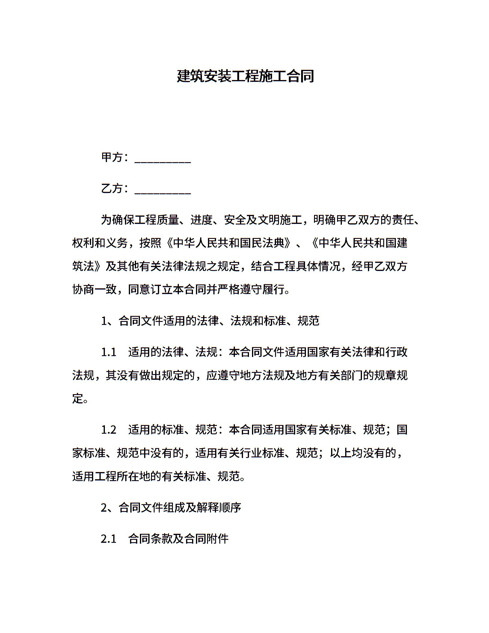 建筑安装工程施工合同