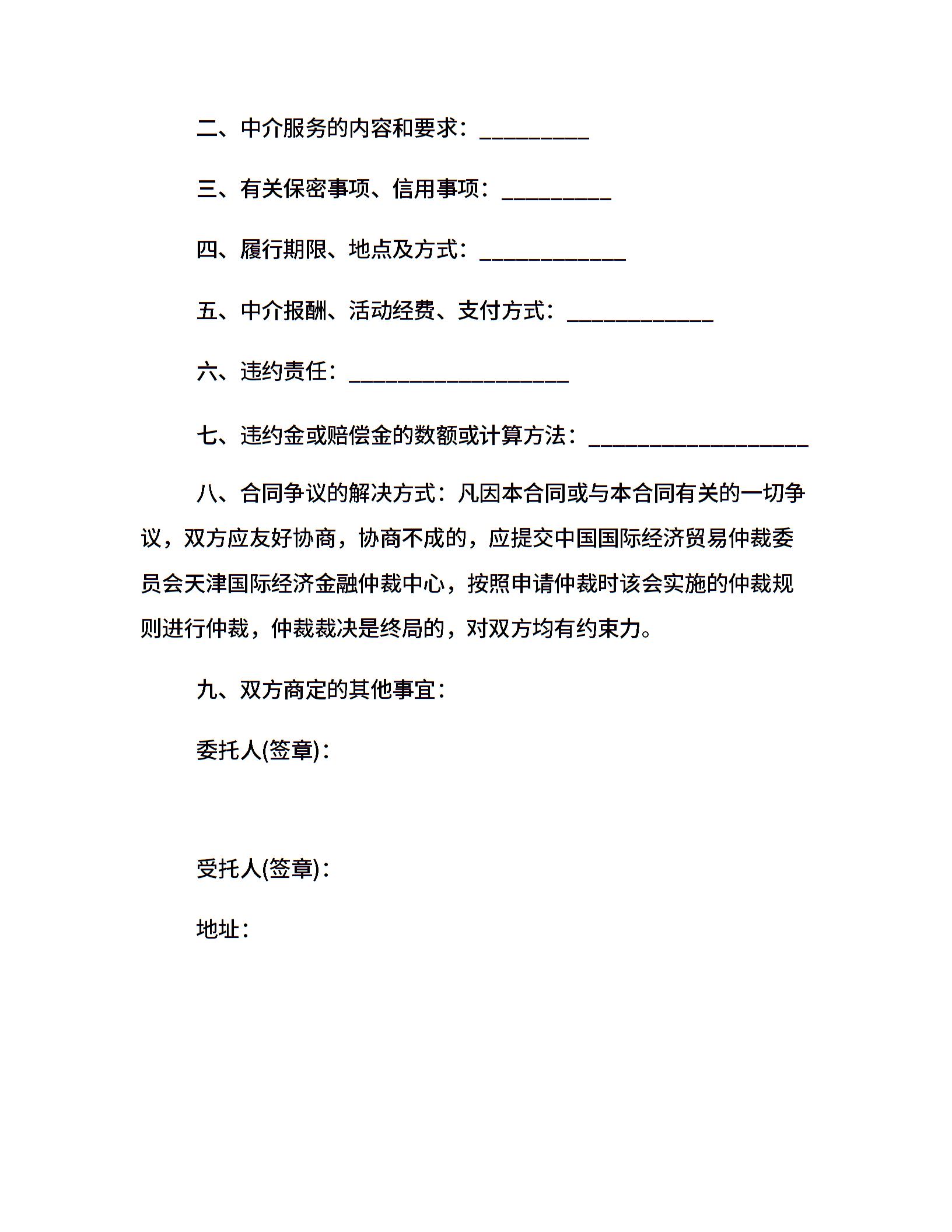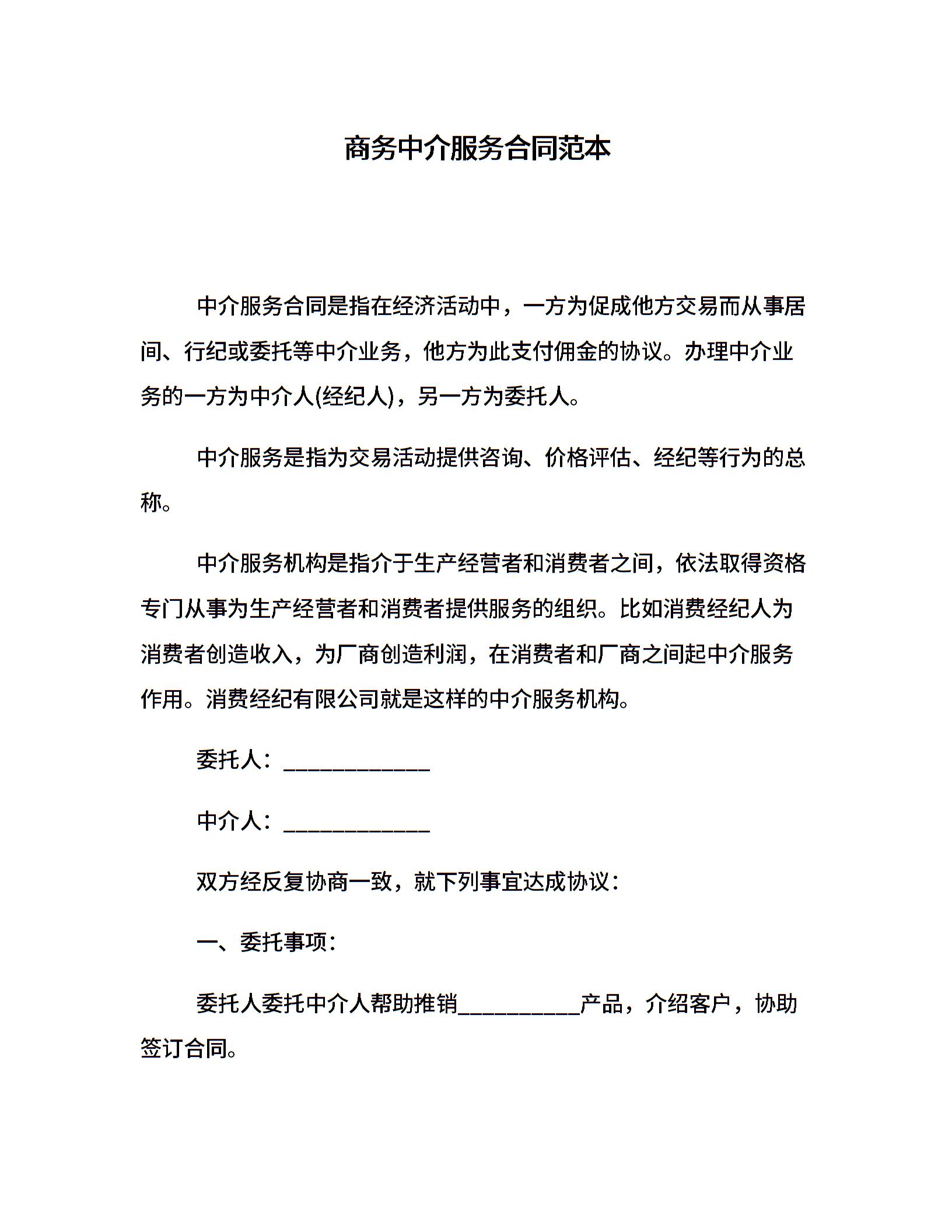 商务中介服务合同范本