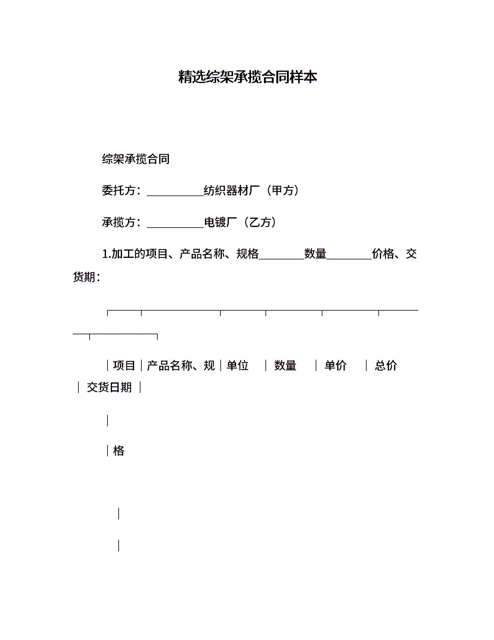 精选综架承揽合同样本