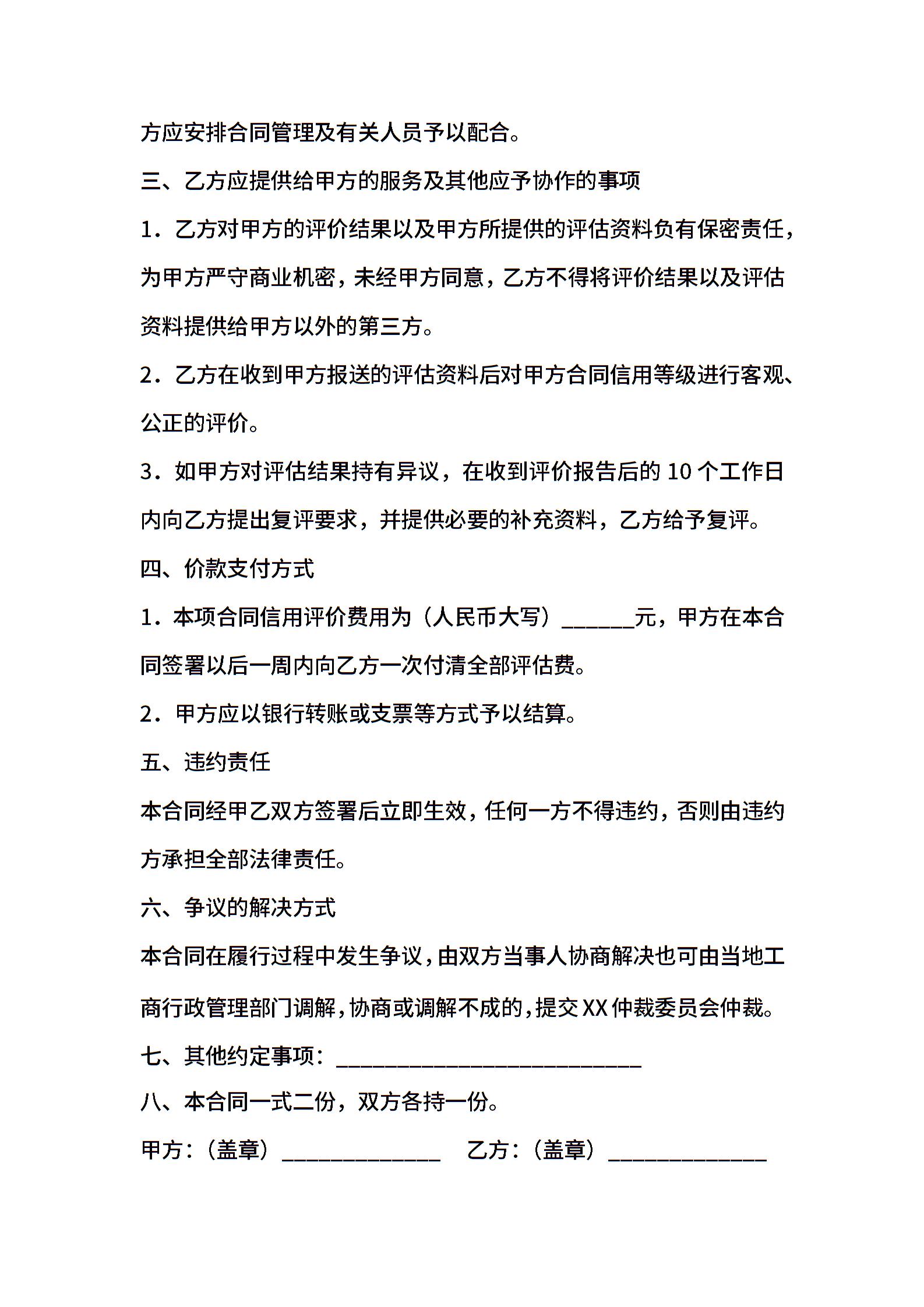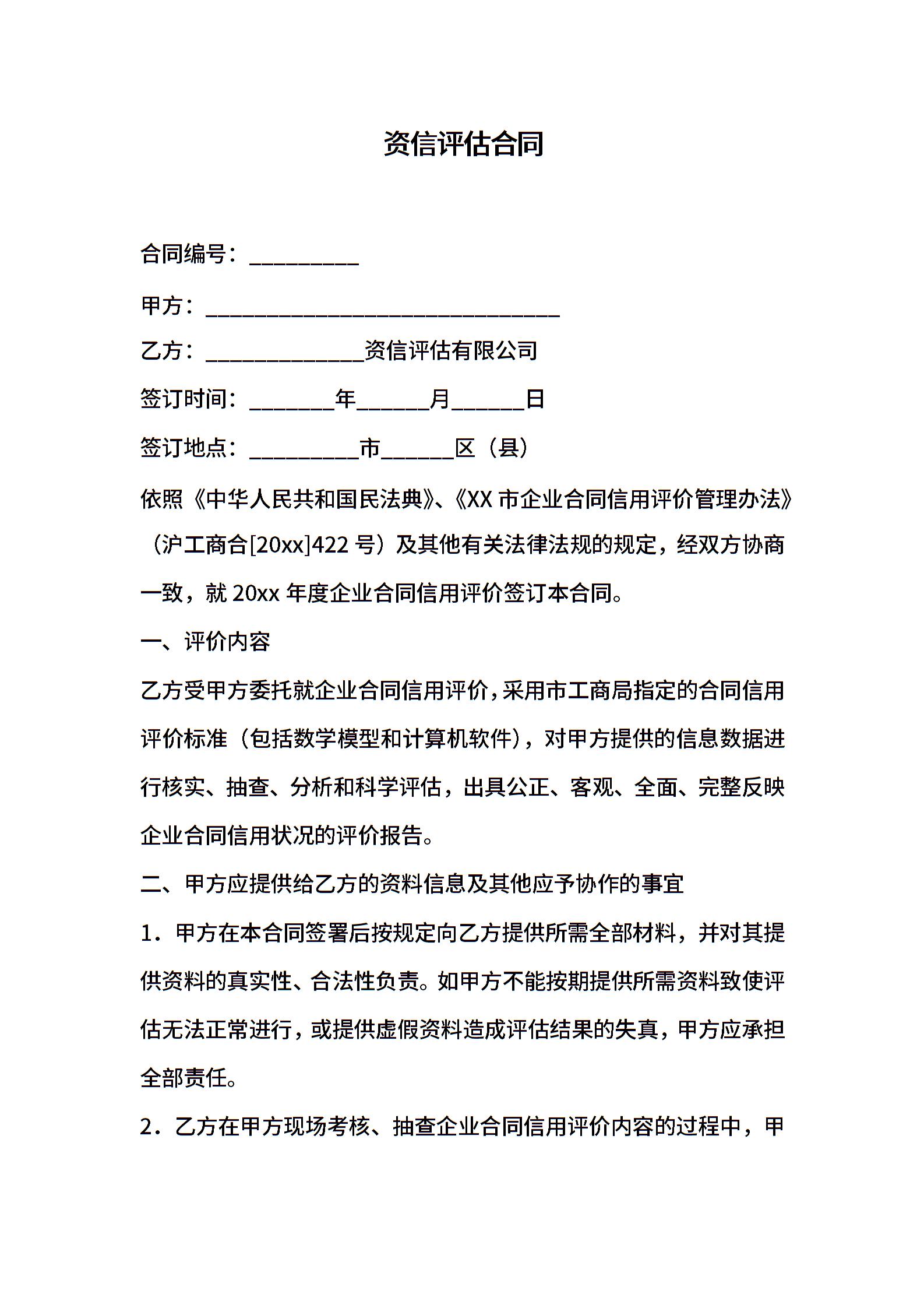 资信评估合同