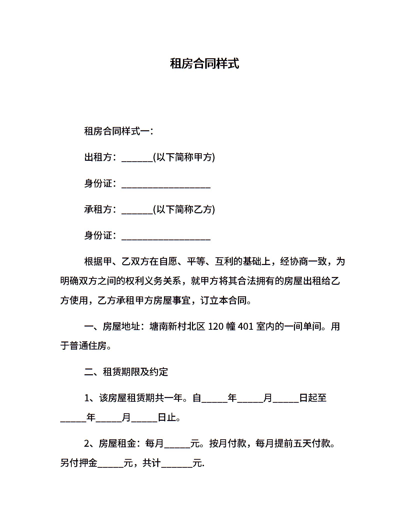 租房合同样式