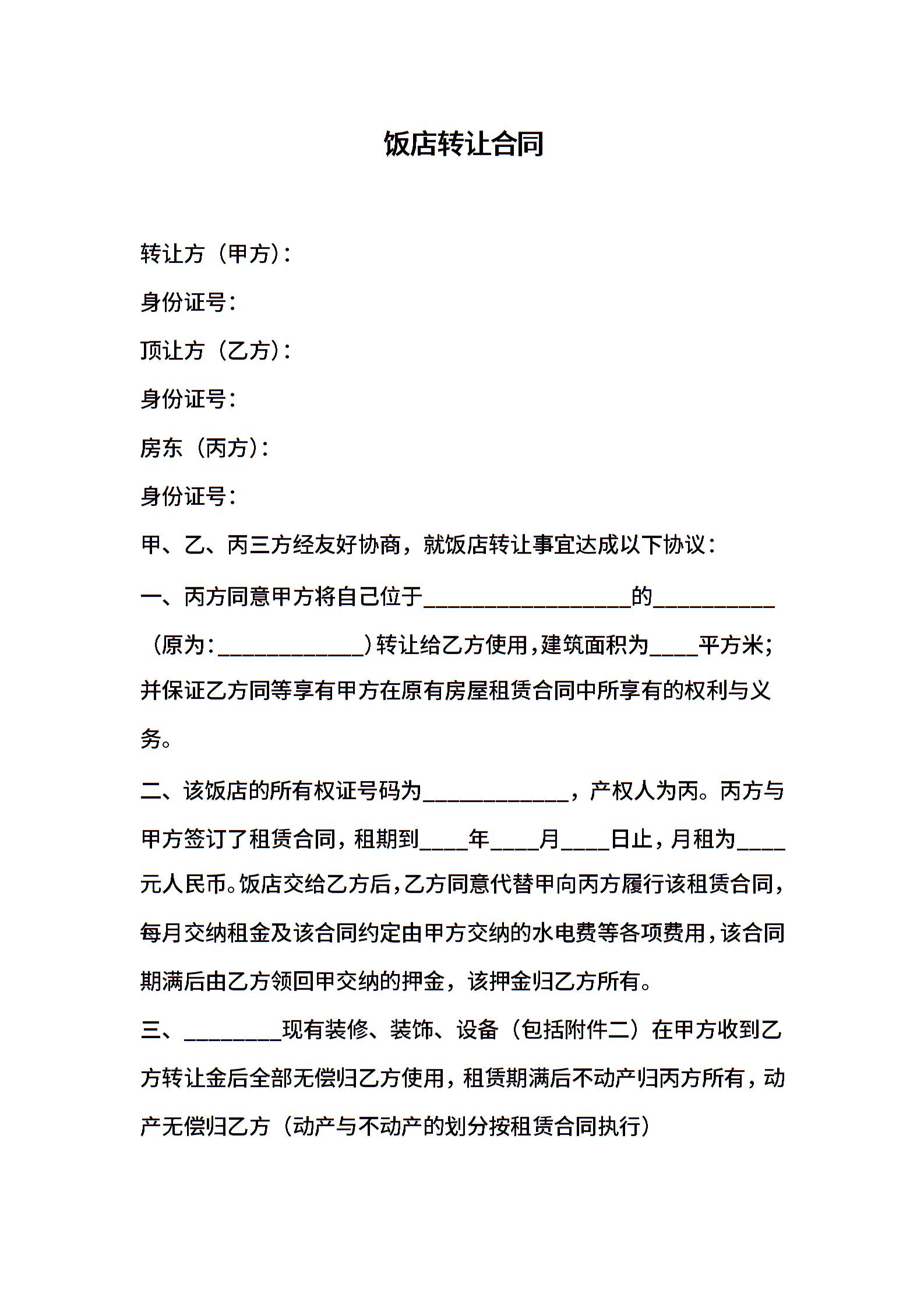 当前位置:量子办公 > 合同模板 > 转让合同 >