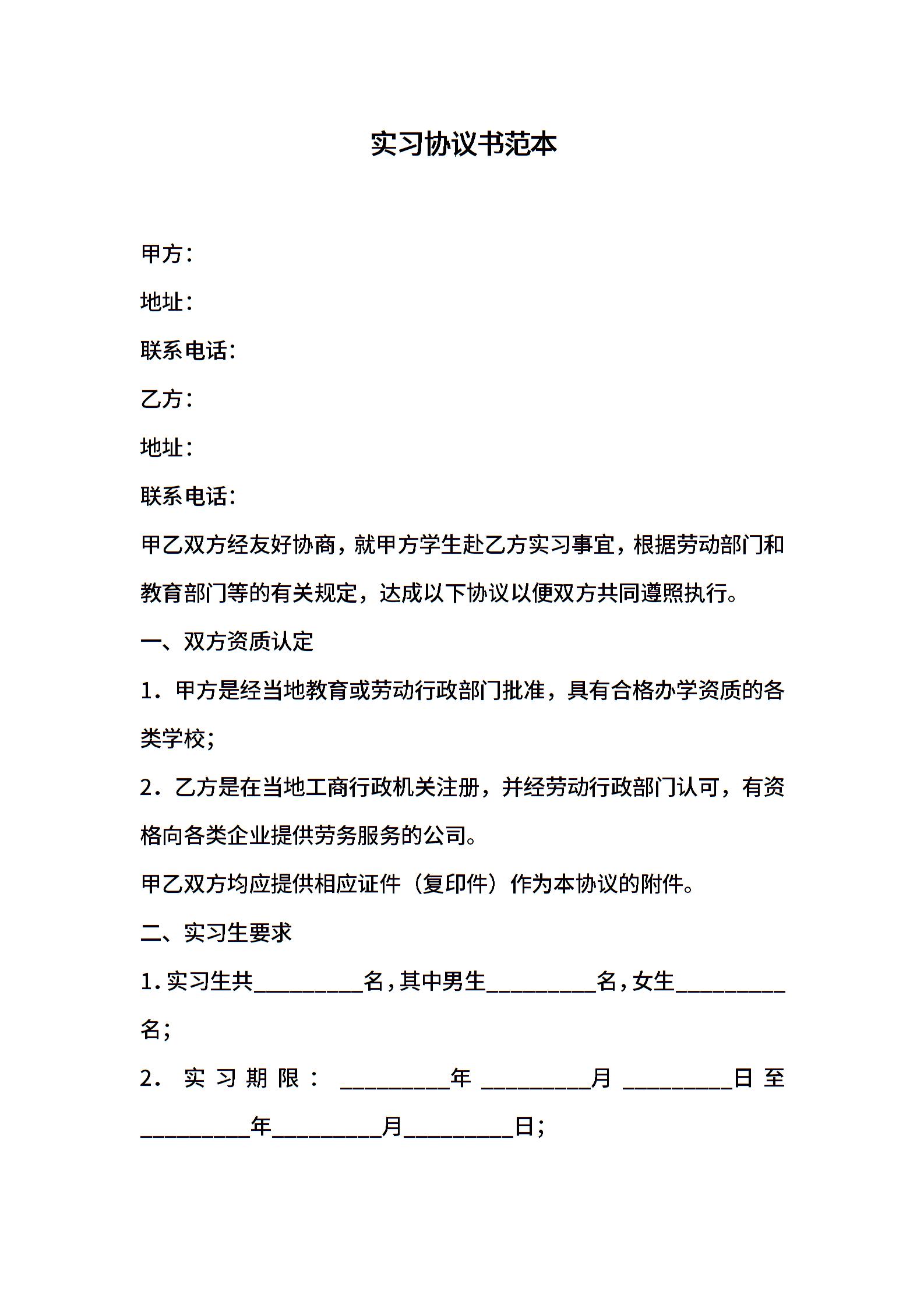 实习协议书范本