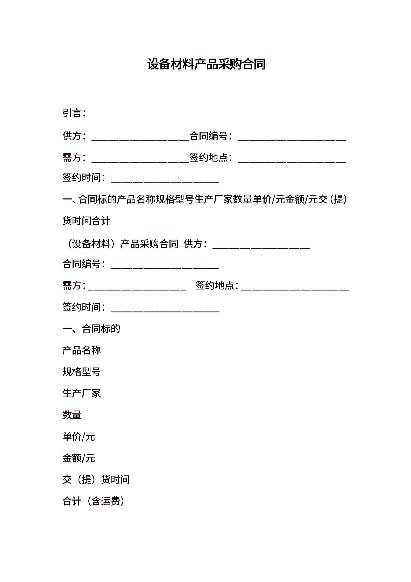 (设备材料)产品采购合同