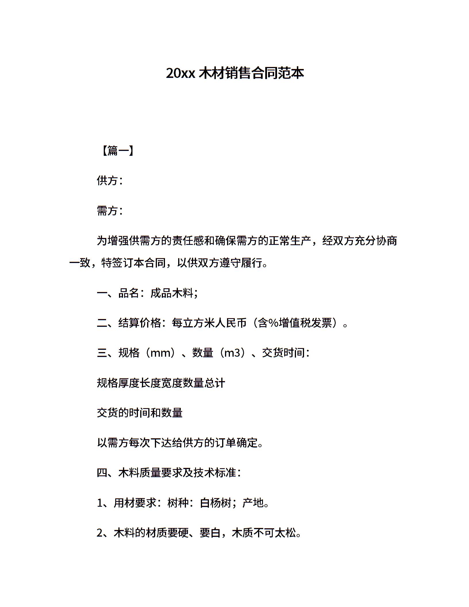 20xx木材销售合同范本