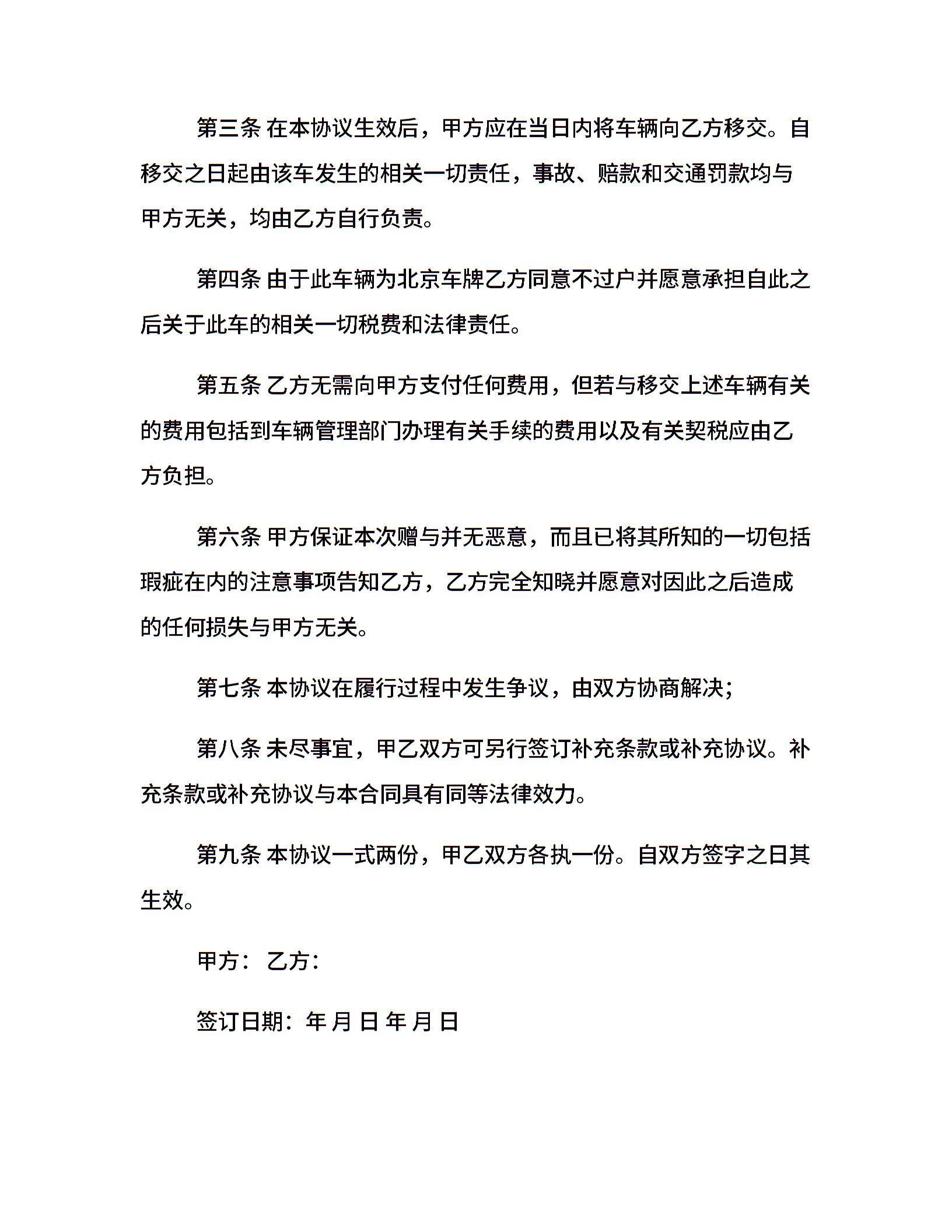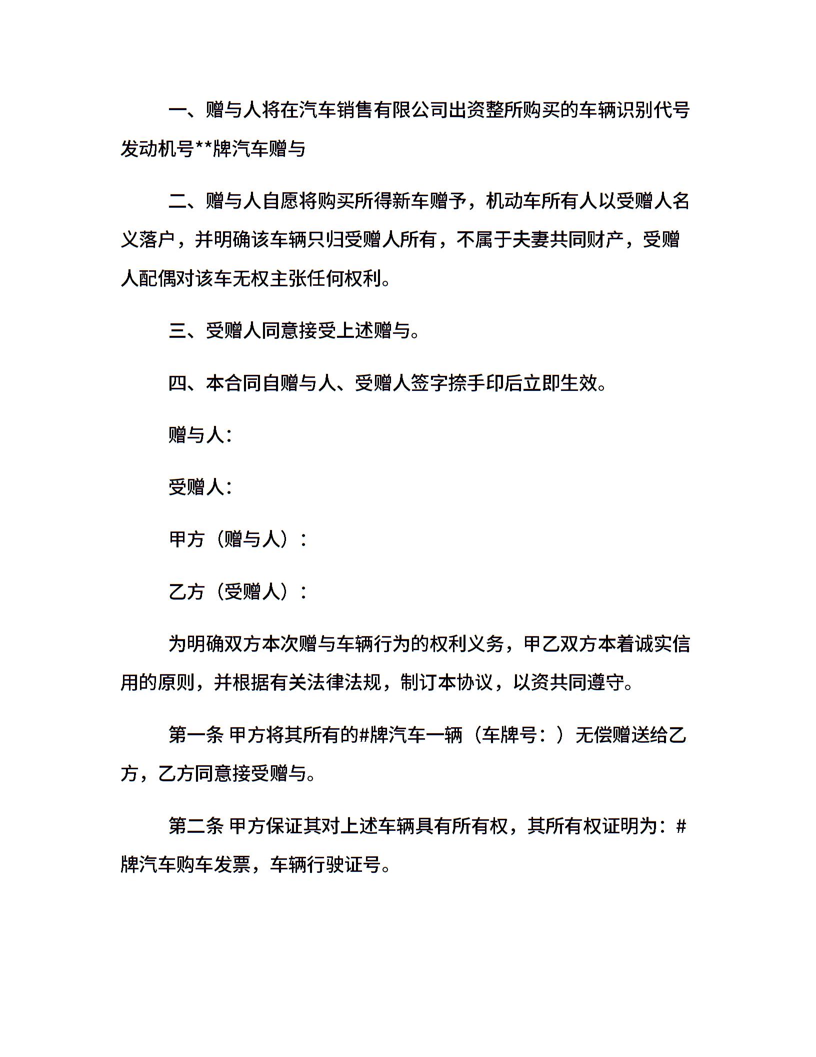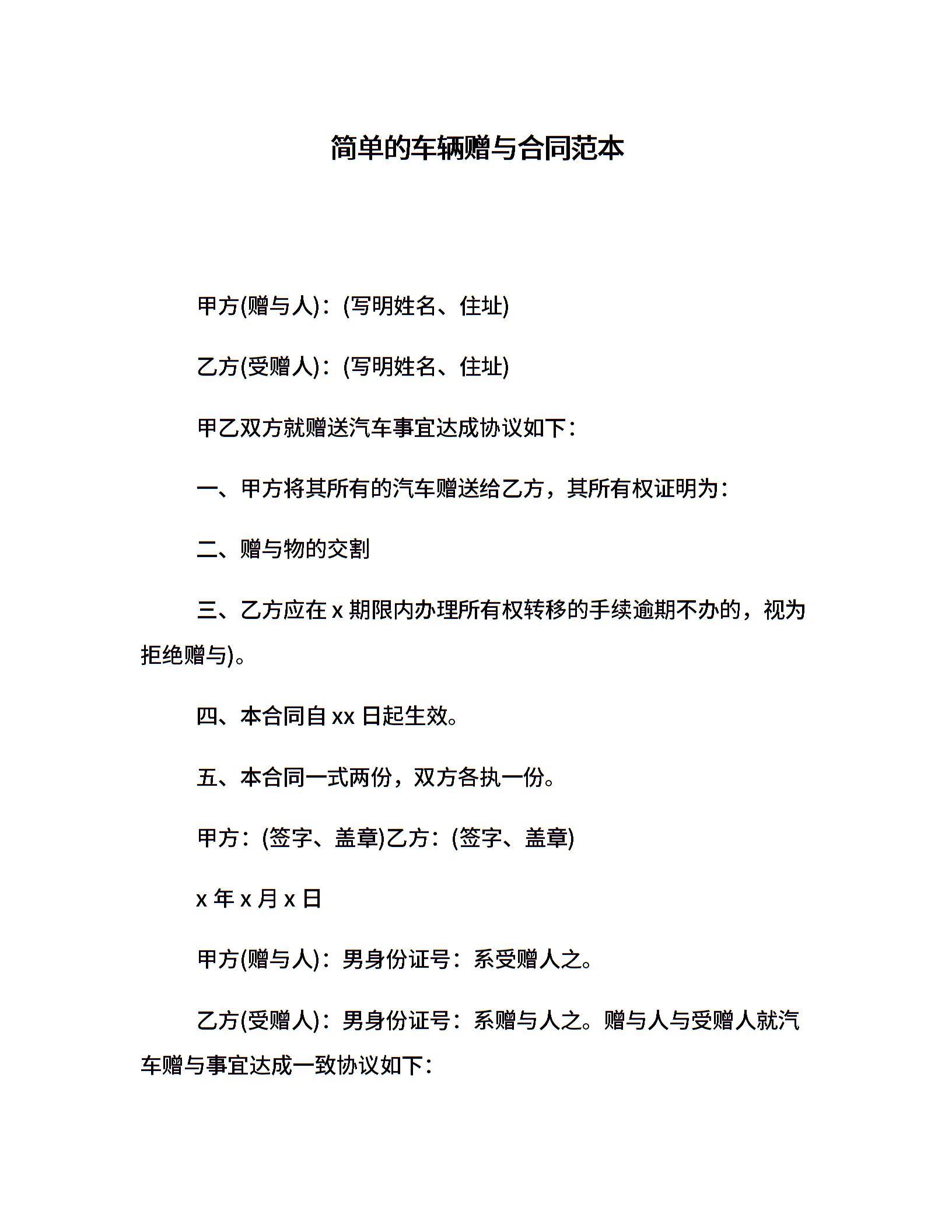 简单的车辆赠与合同范本