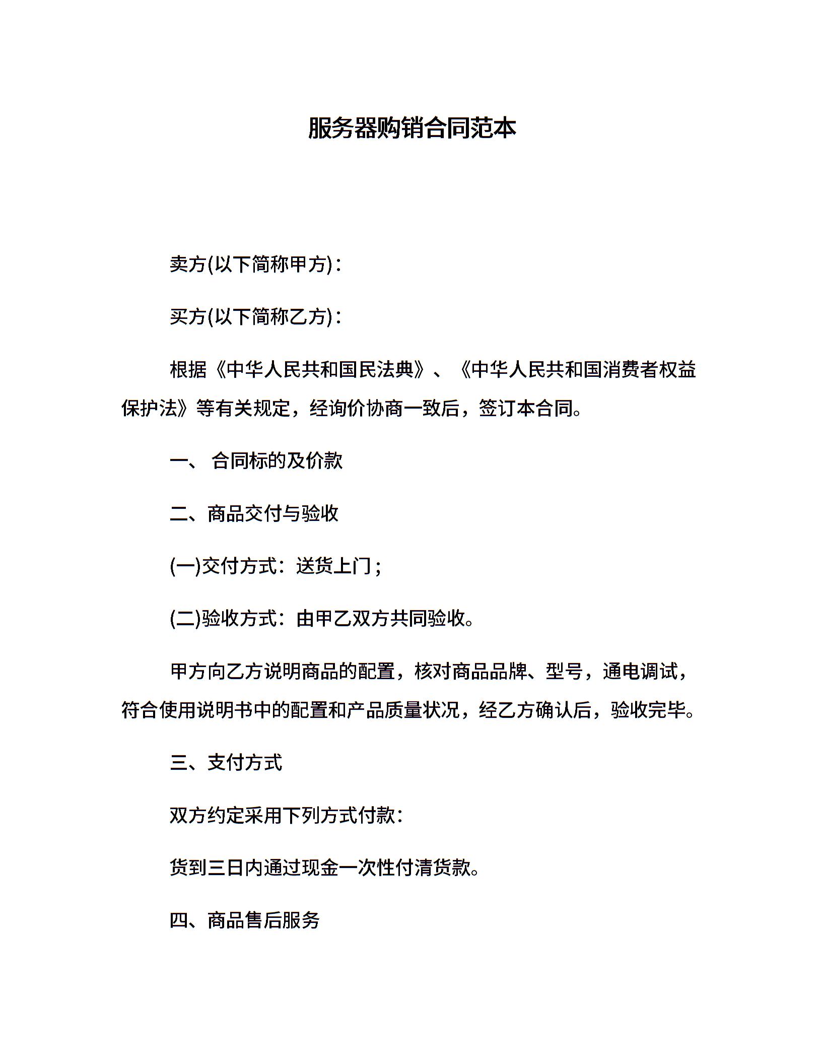 服务器购销合同范本