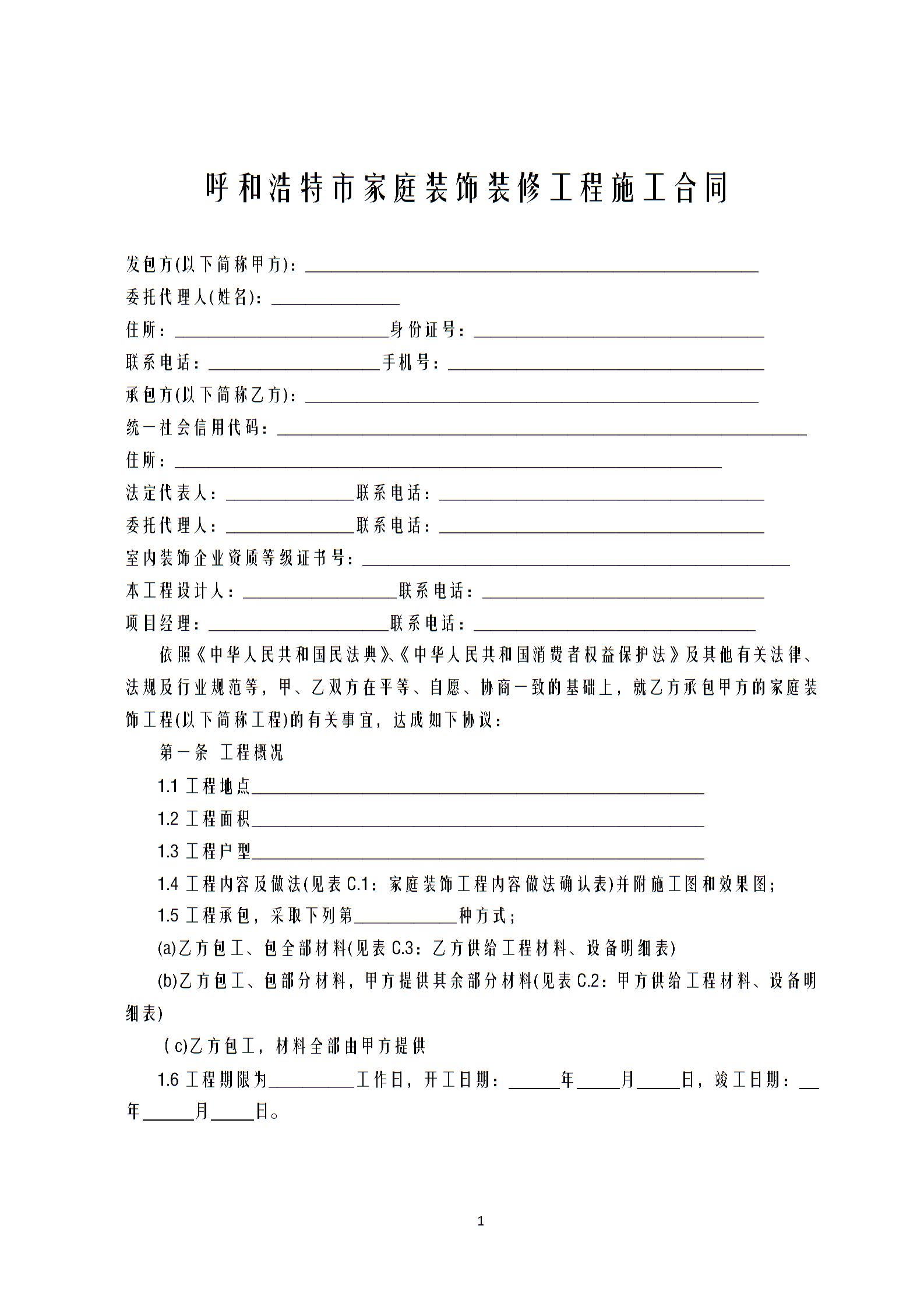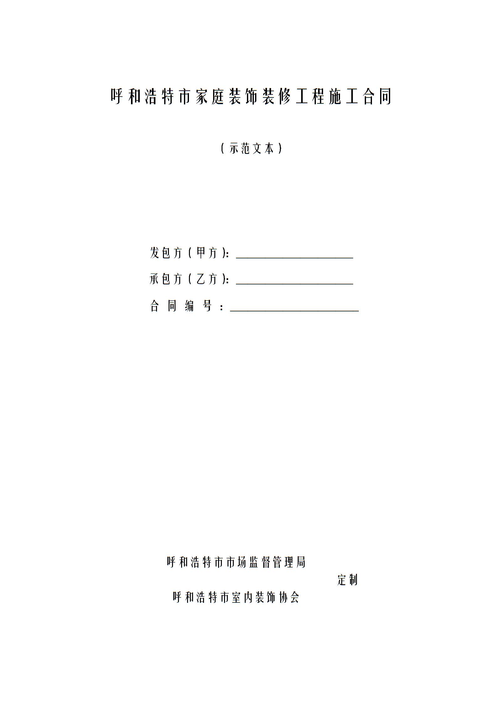 呼和浩特市家庭装饰装修工程施工合同(示范文本)