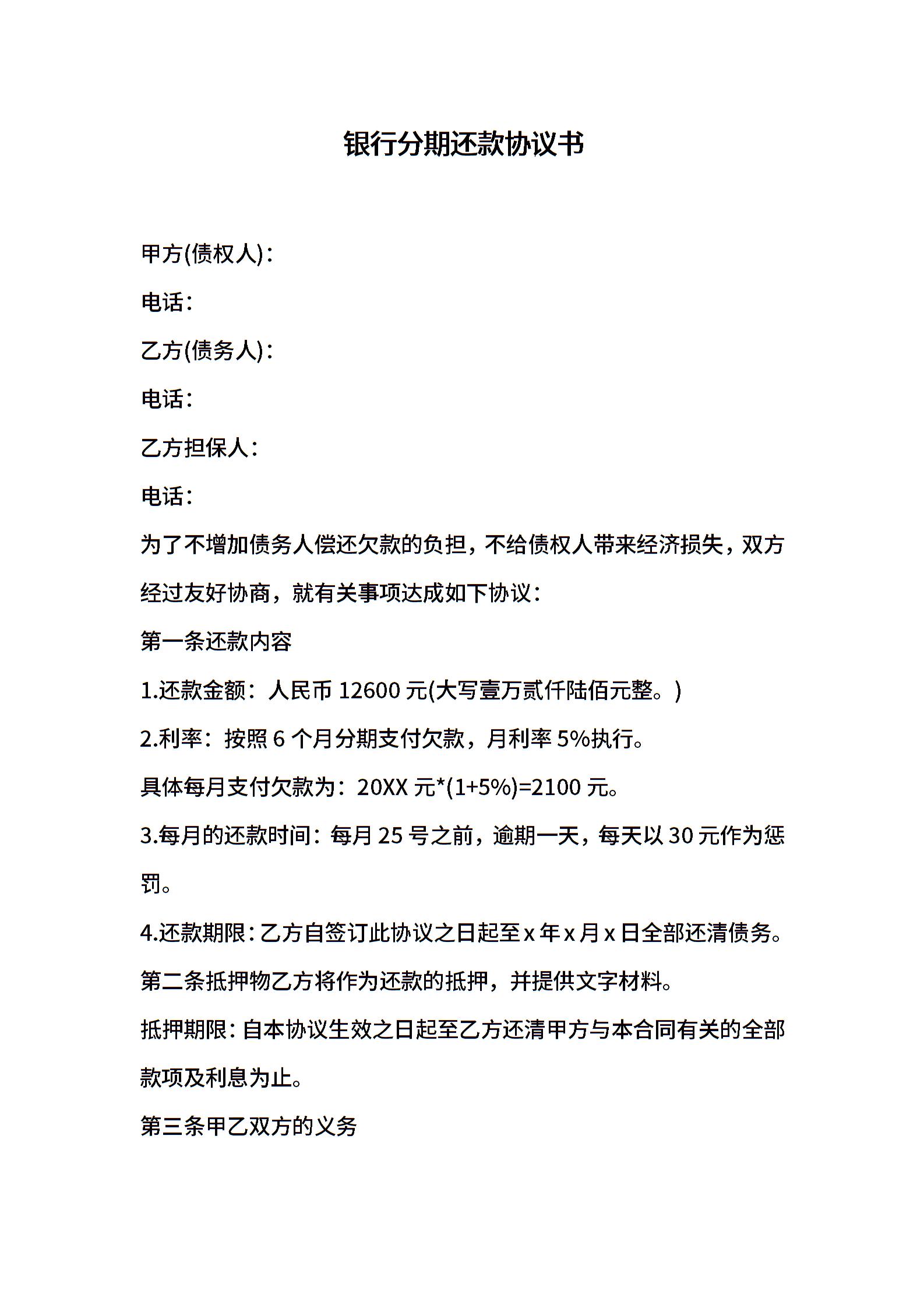 银行分期还款协议书