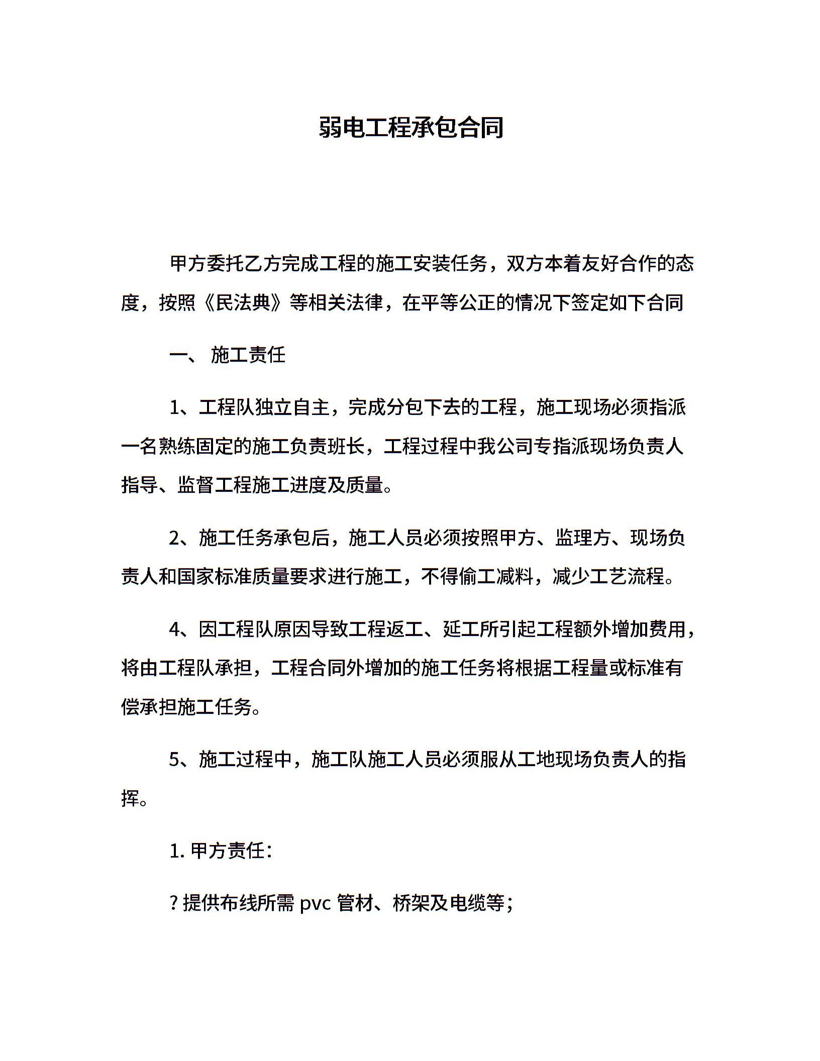 弱电工程承包合同