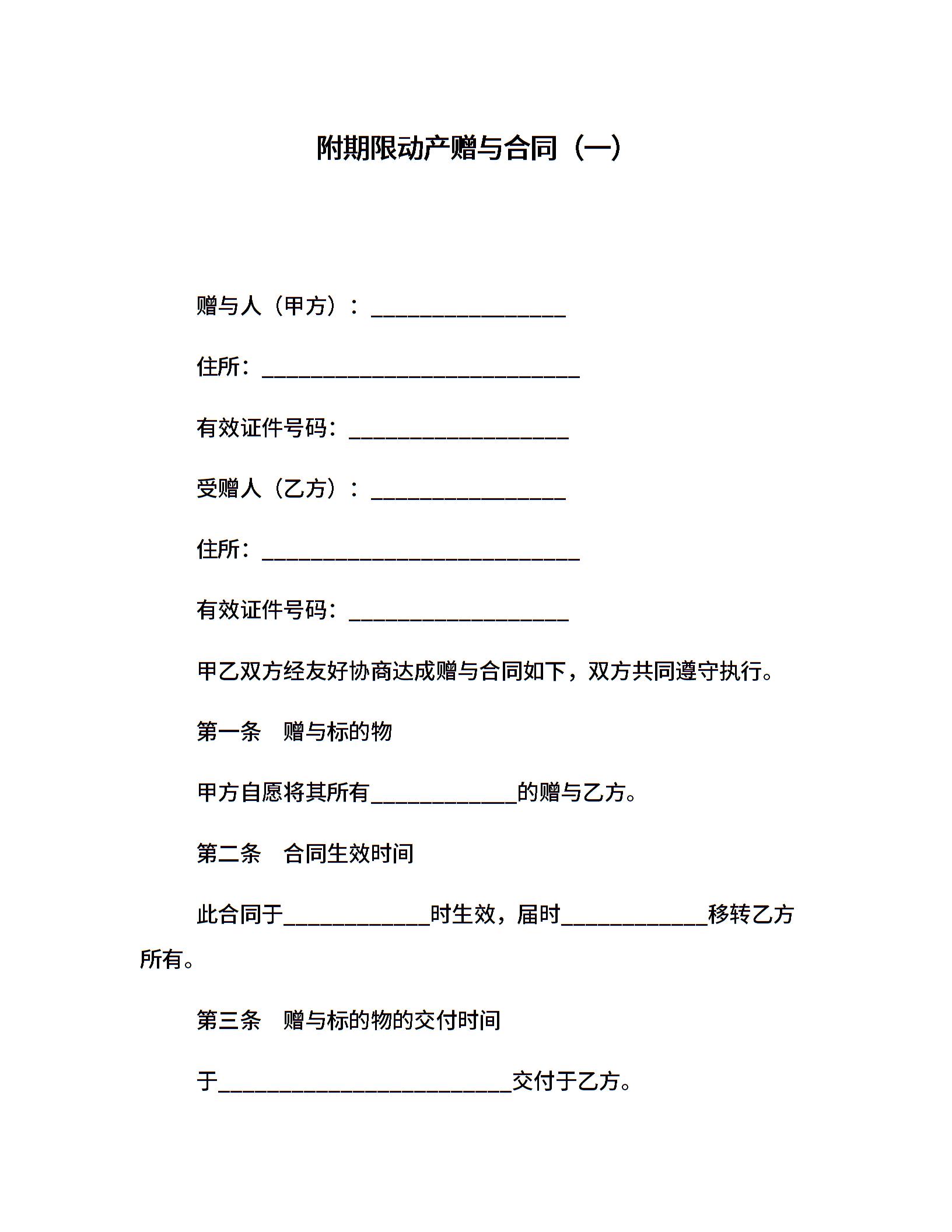 附期限动产赠与合同(一)