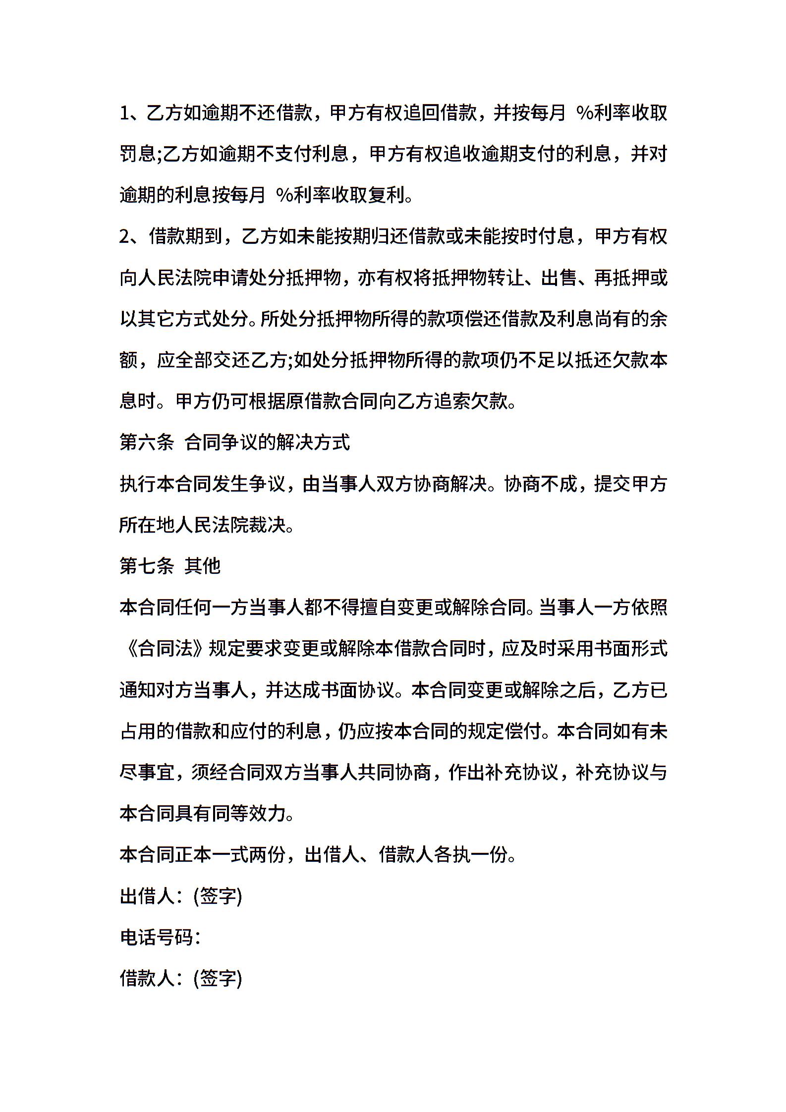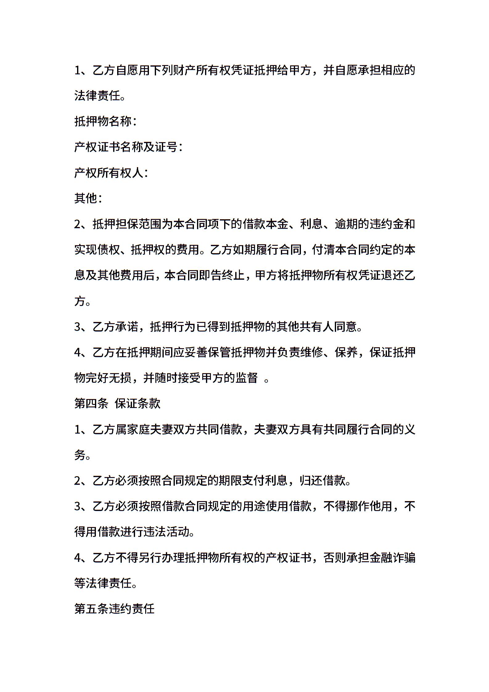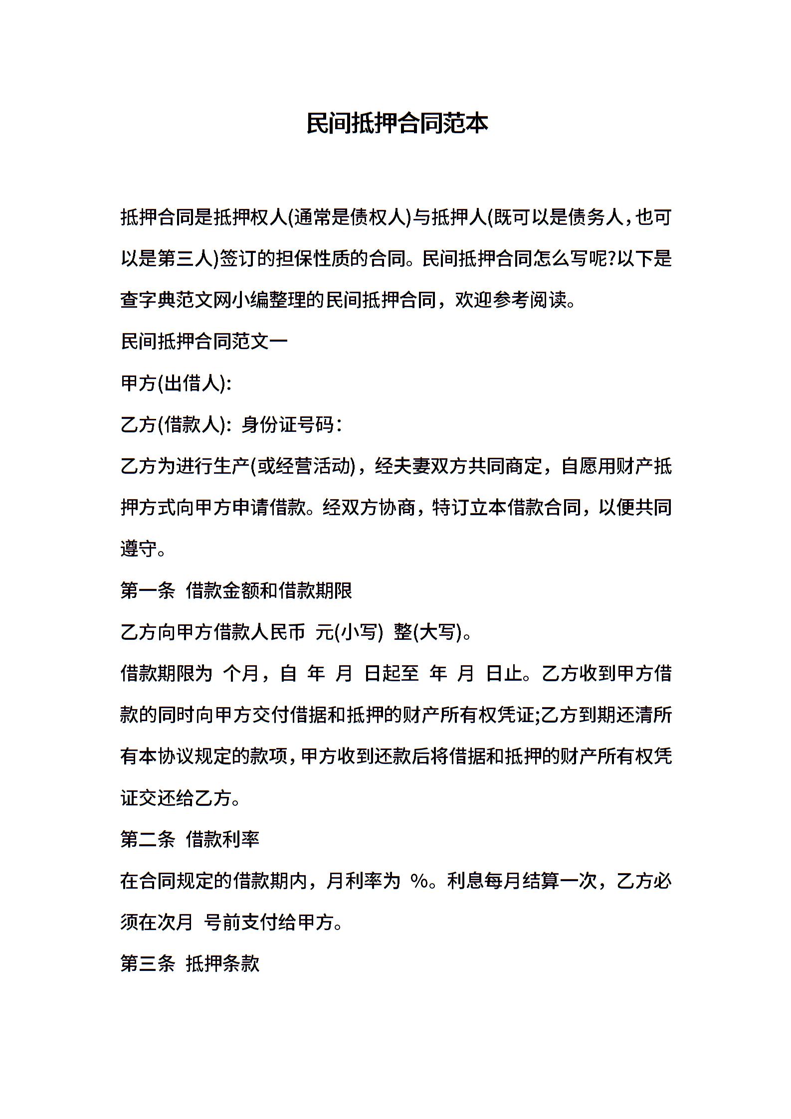民间抵押合同范本