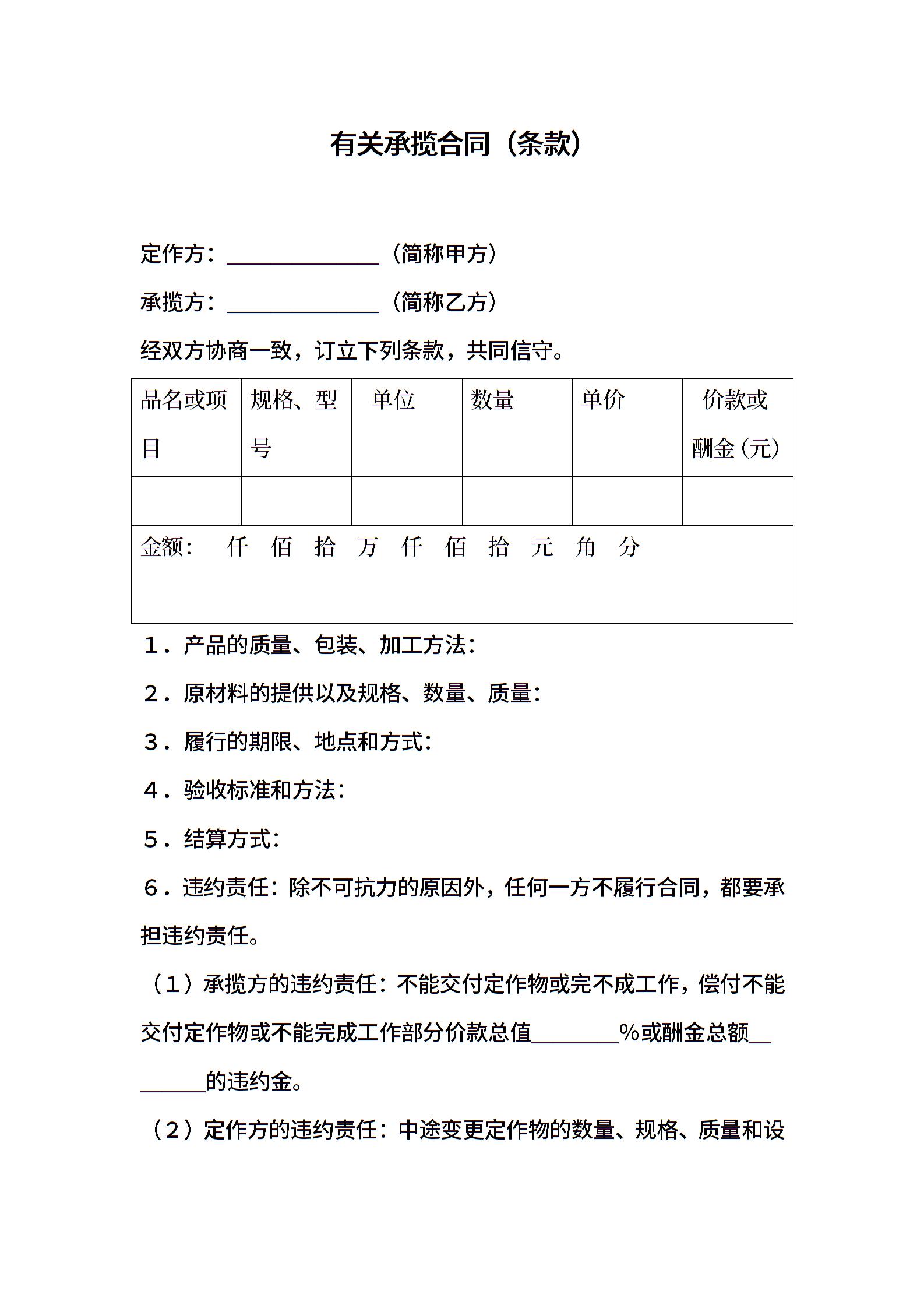 有关承揽合同(条款)