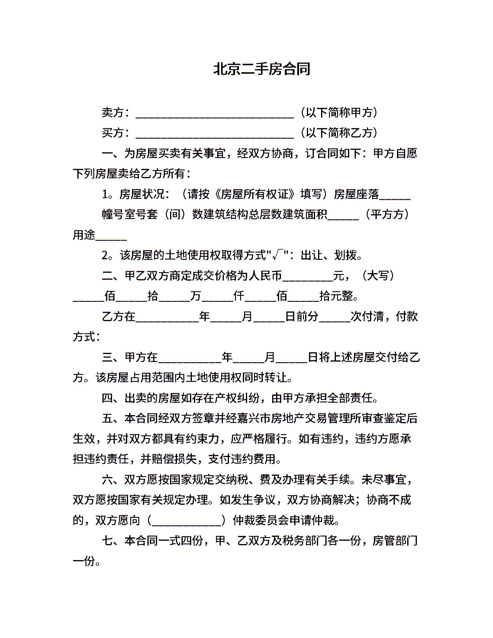 北京二手房合同