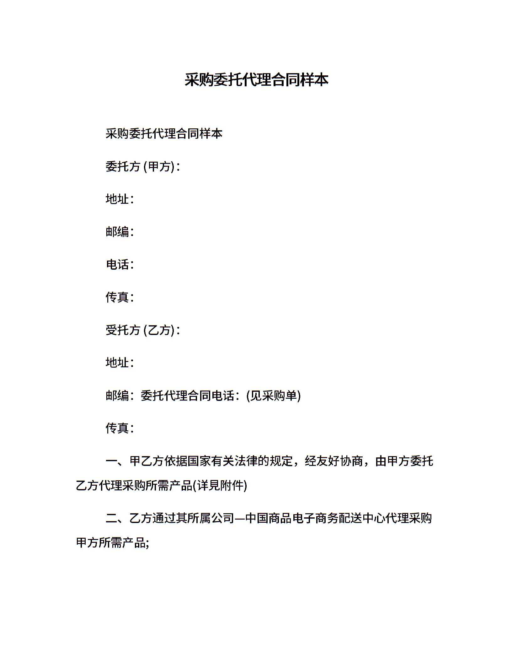 采购委托代理合同样本