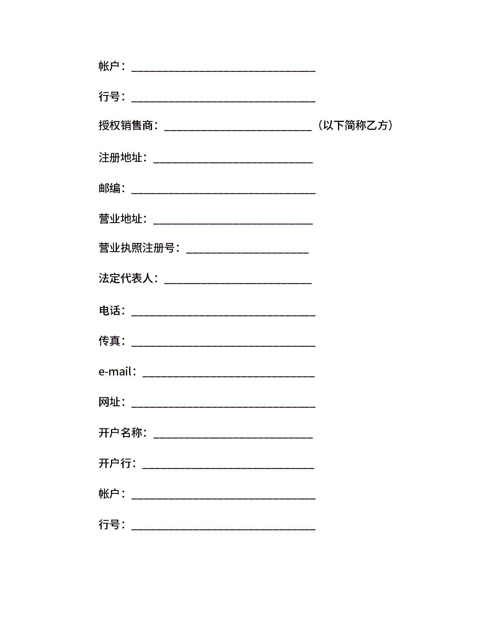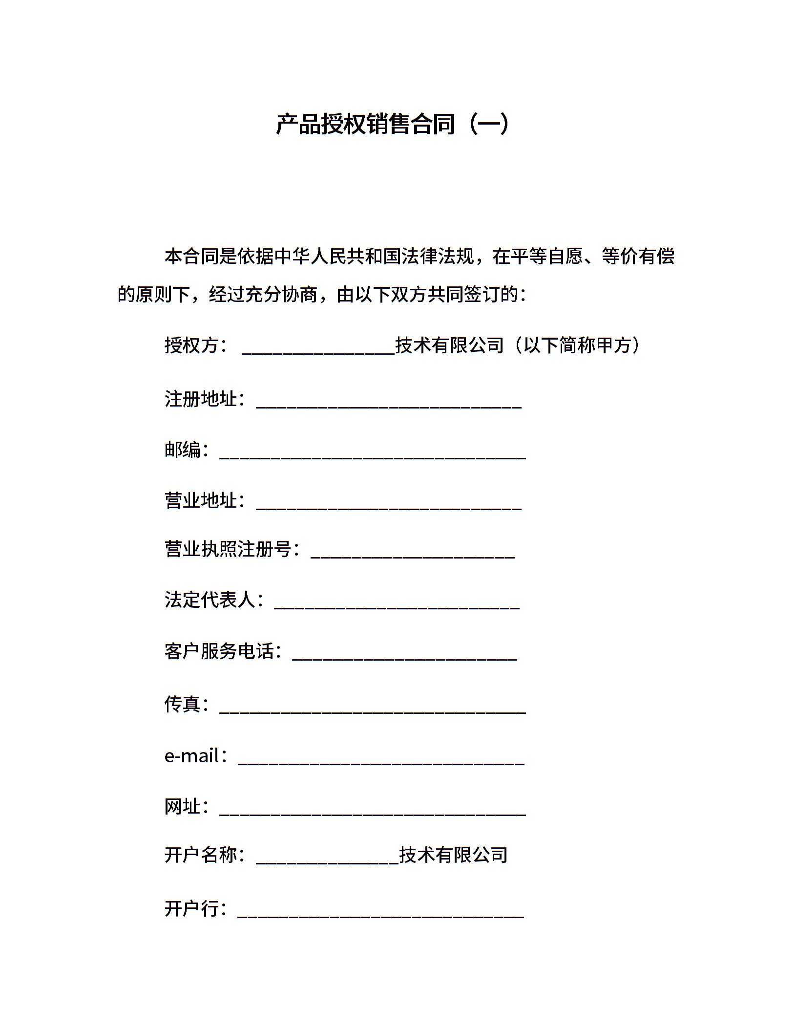 产品授权销售合同(一)