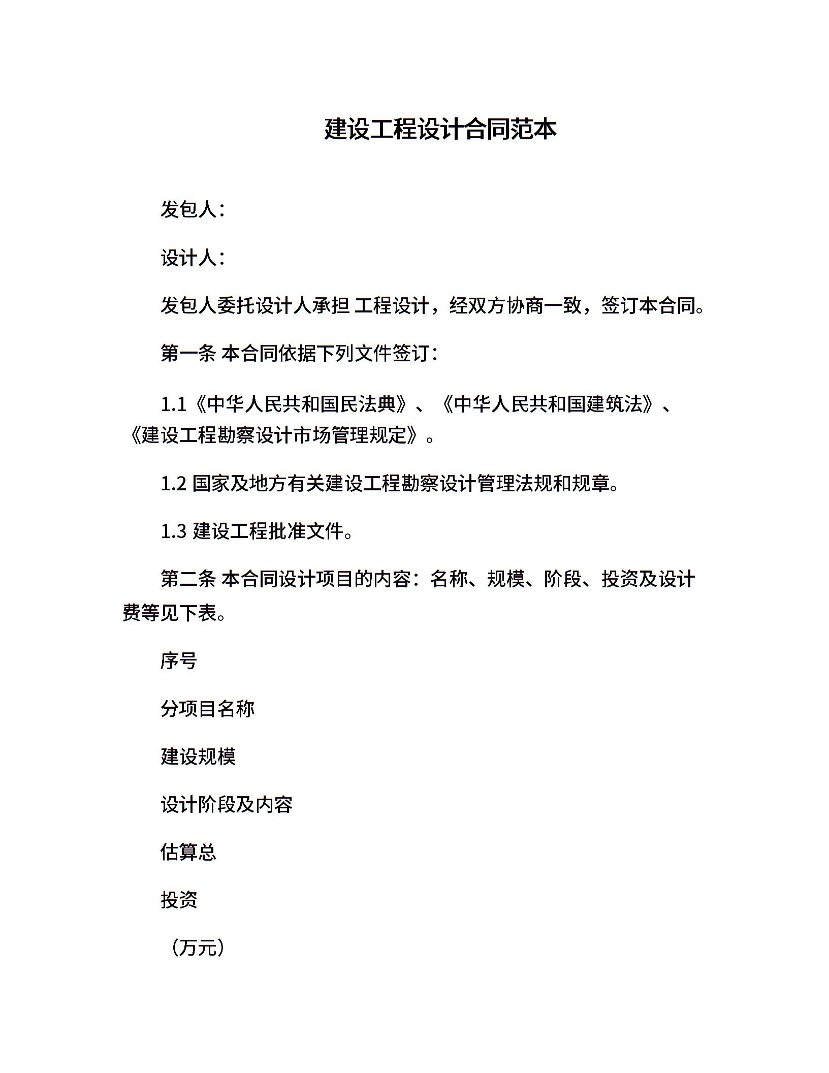 建设工程设计合同范本
