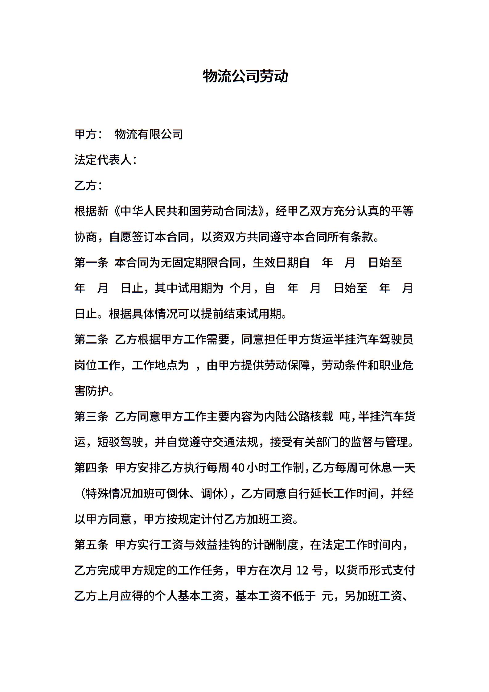 物流公司劳动