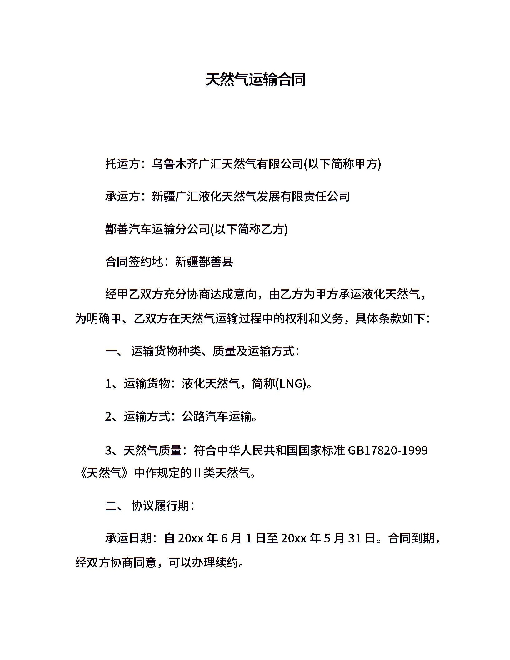 天然气运输合同