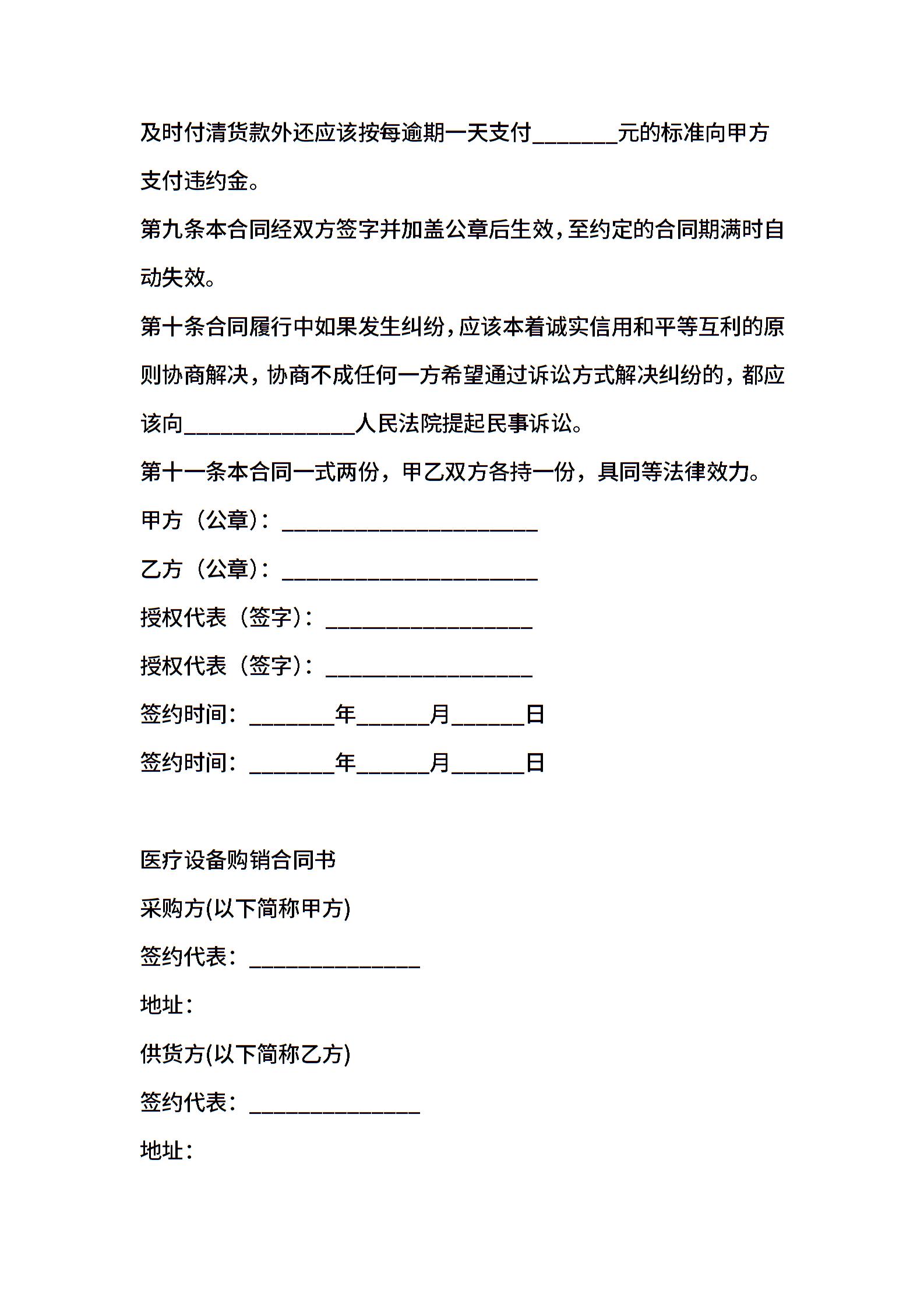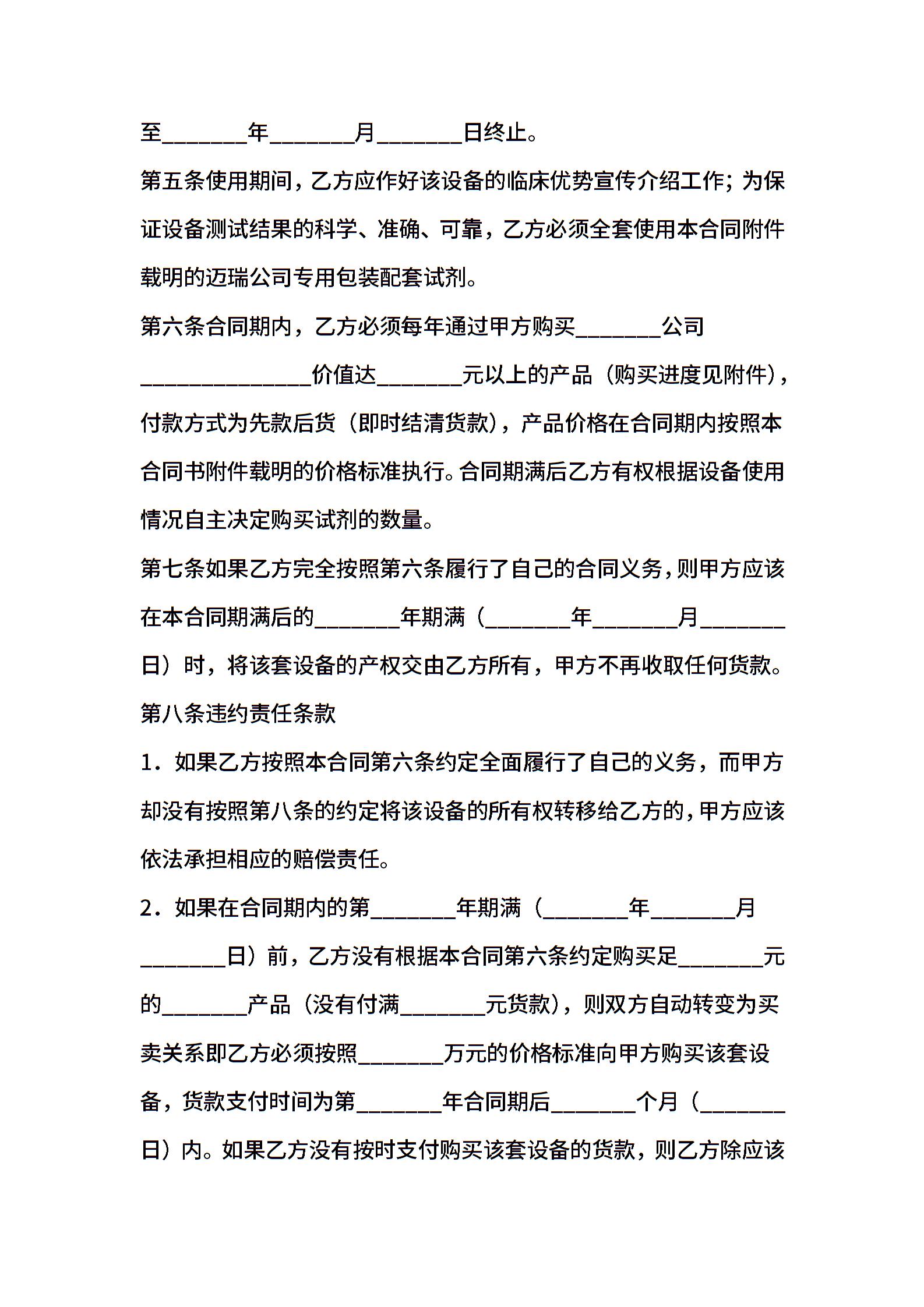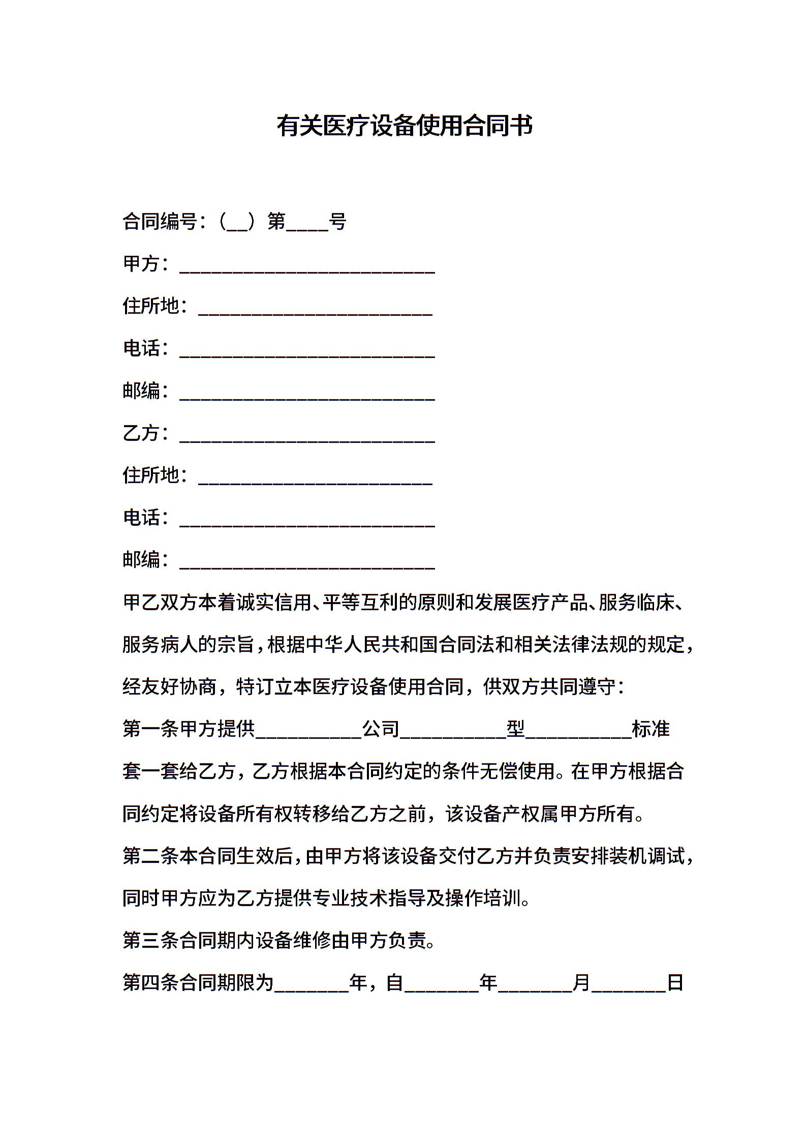 有关医疗设备使用合同书