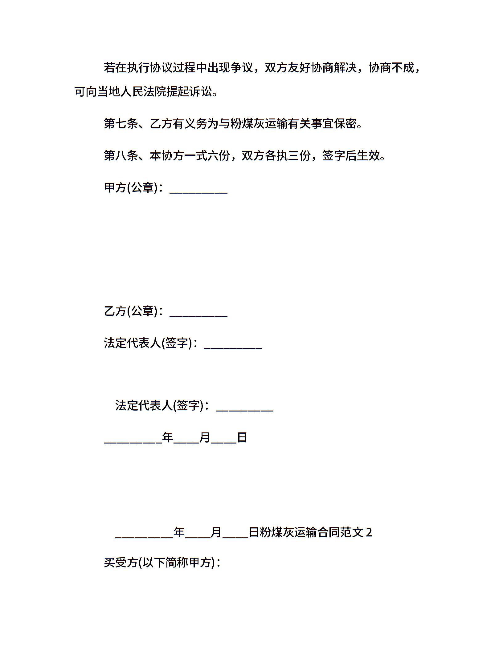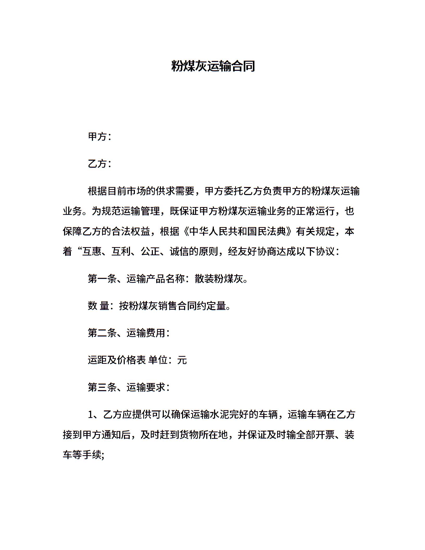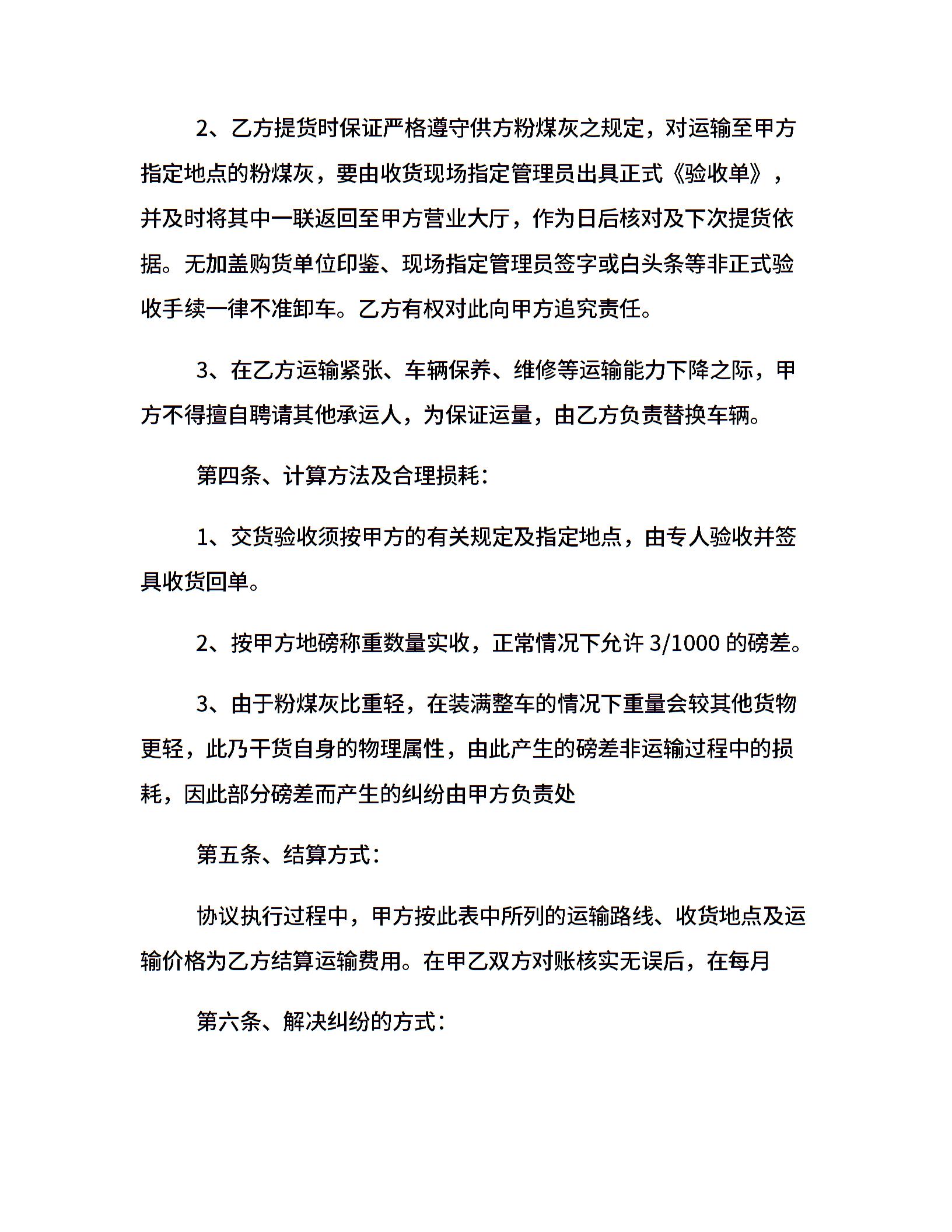 粉煤灰运输合同