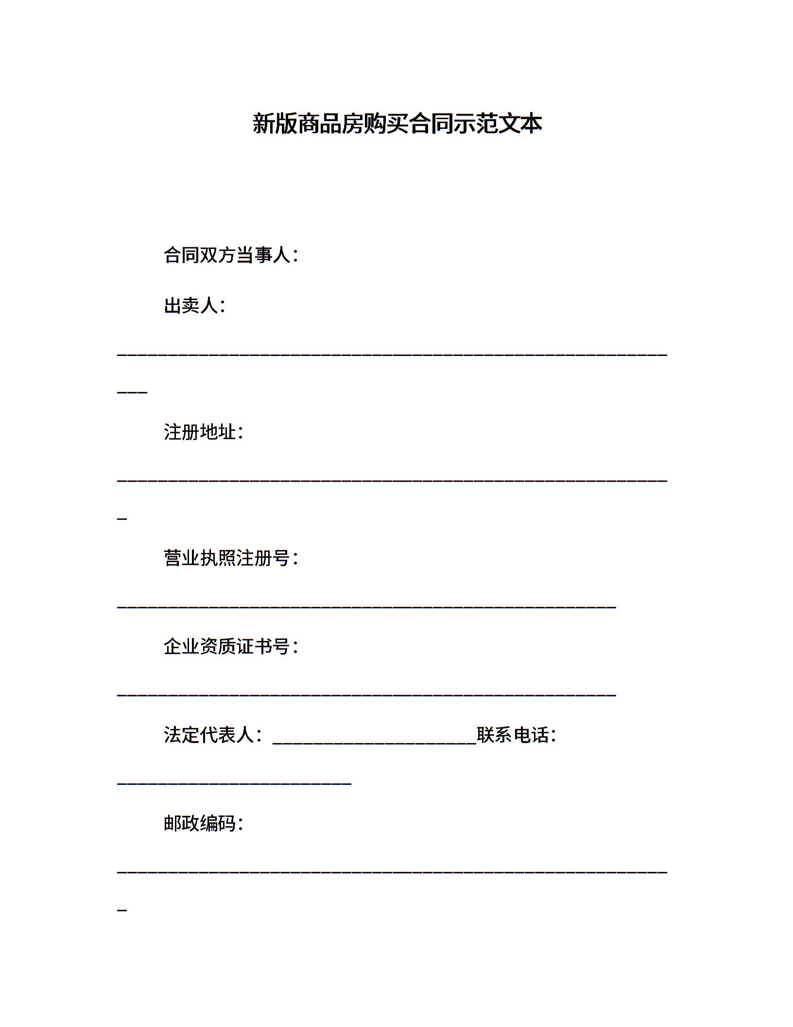 新版商品房购买合同示范文本