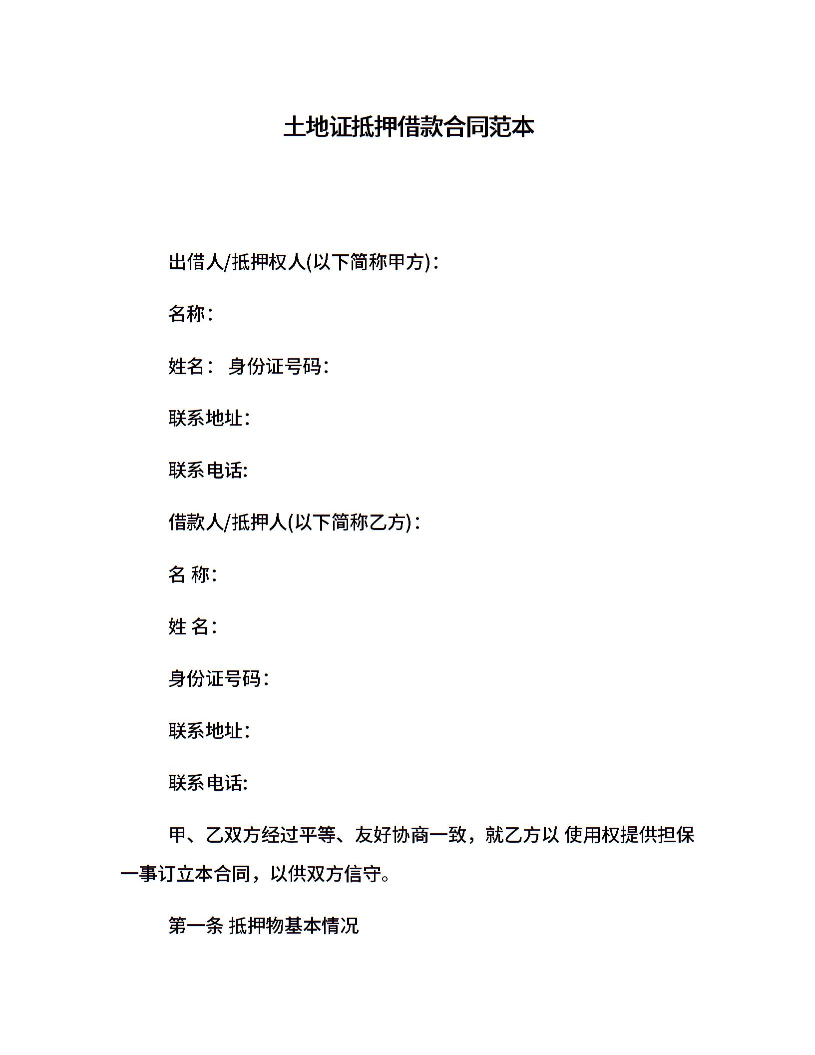 土地证抵押借款合同范本